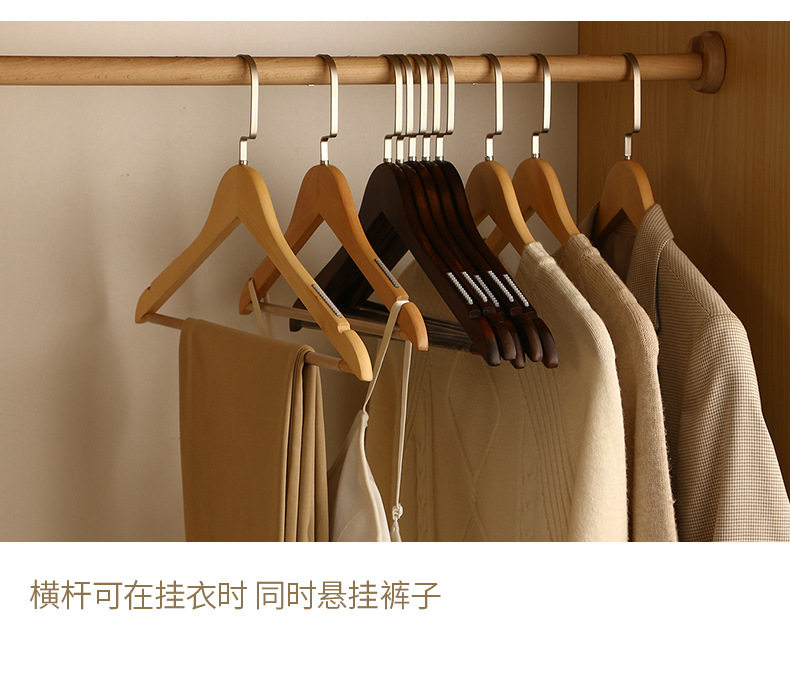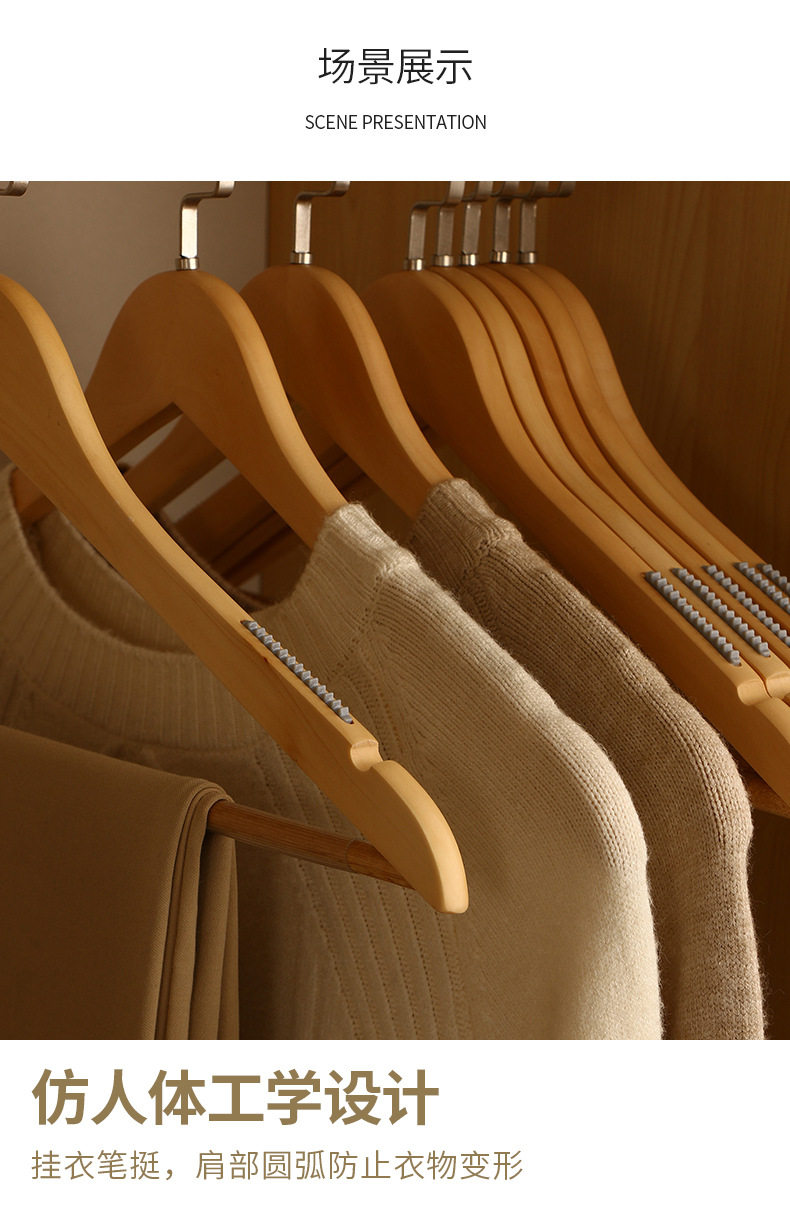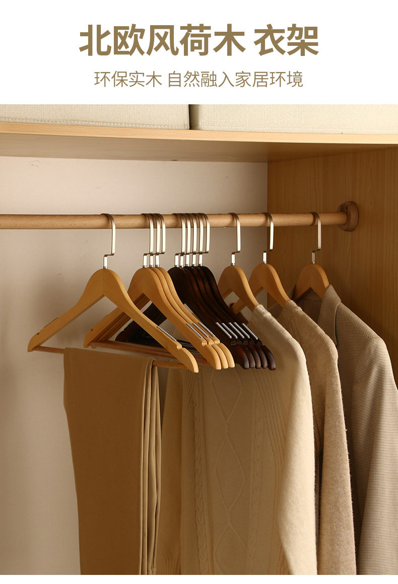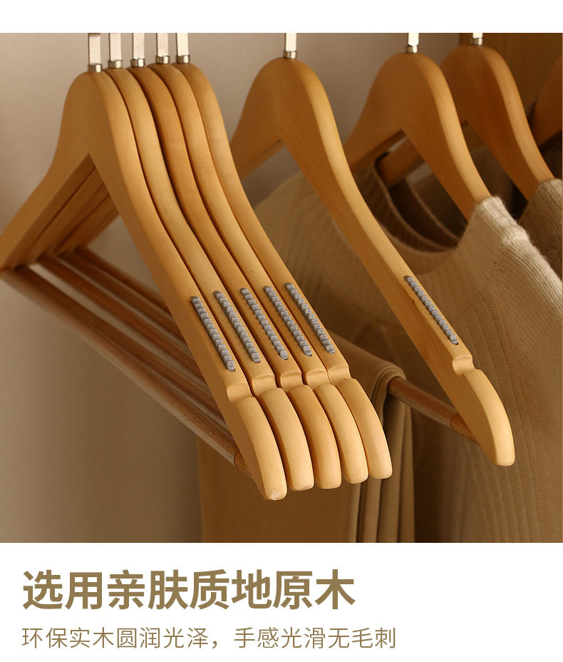 Household Wooden Clothes Hangers for Adults, Solid Wood Non-Slip Clothing Store Men's Clothes Hangers, Customizable Logo Wholesale