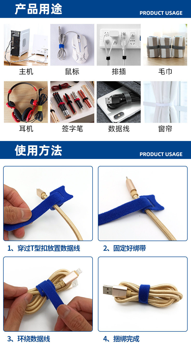 Velcro Cable Ties Cat Head Back-To-Back T-Shaped Wire Harness Self-Adhesive Cable Ties Logo Velcro Cable Ties