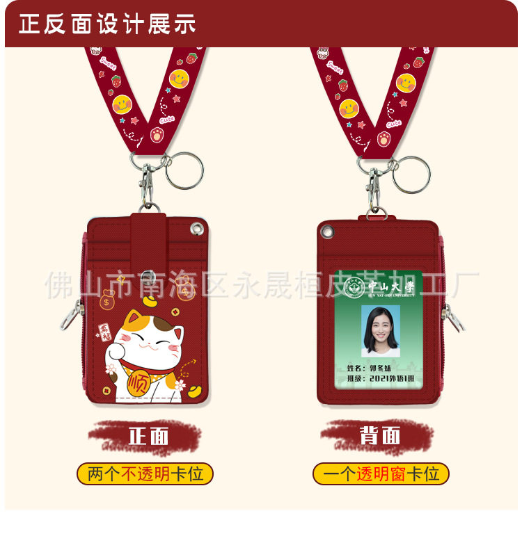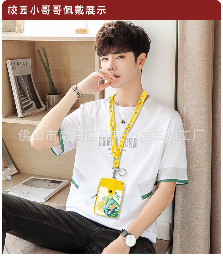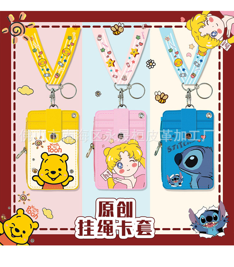 Cartoon multifunctional student neck card holder zipper change card holder cute bus card holder meal card transportation card holder