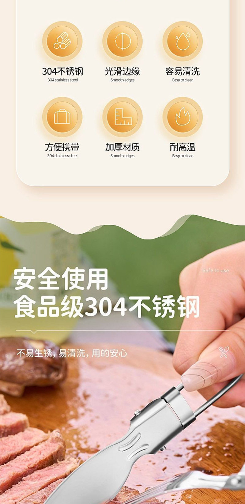 | Color | Stainless steel knife,Stainless steel fork,Stainless steel round spoon,Stainless steel salad spoon,Stainless steel chopsticks,Ring buckle three-in-one tableware set,(410 material) salad spoon with 304 logo |