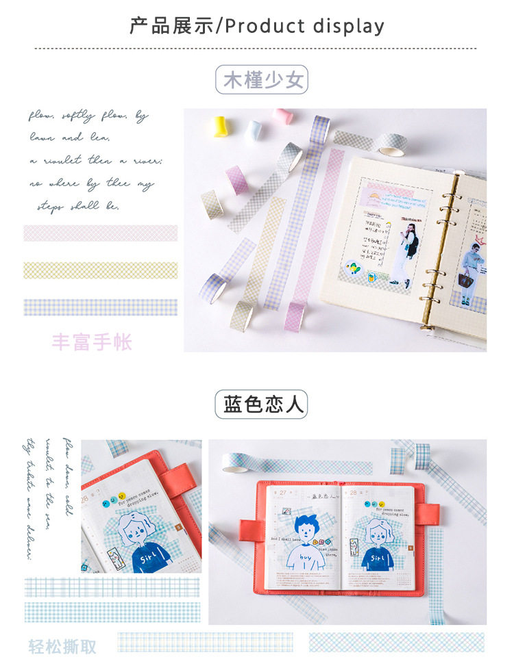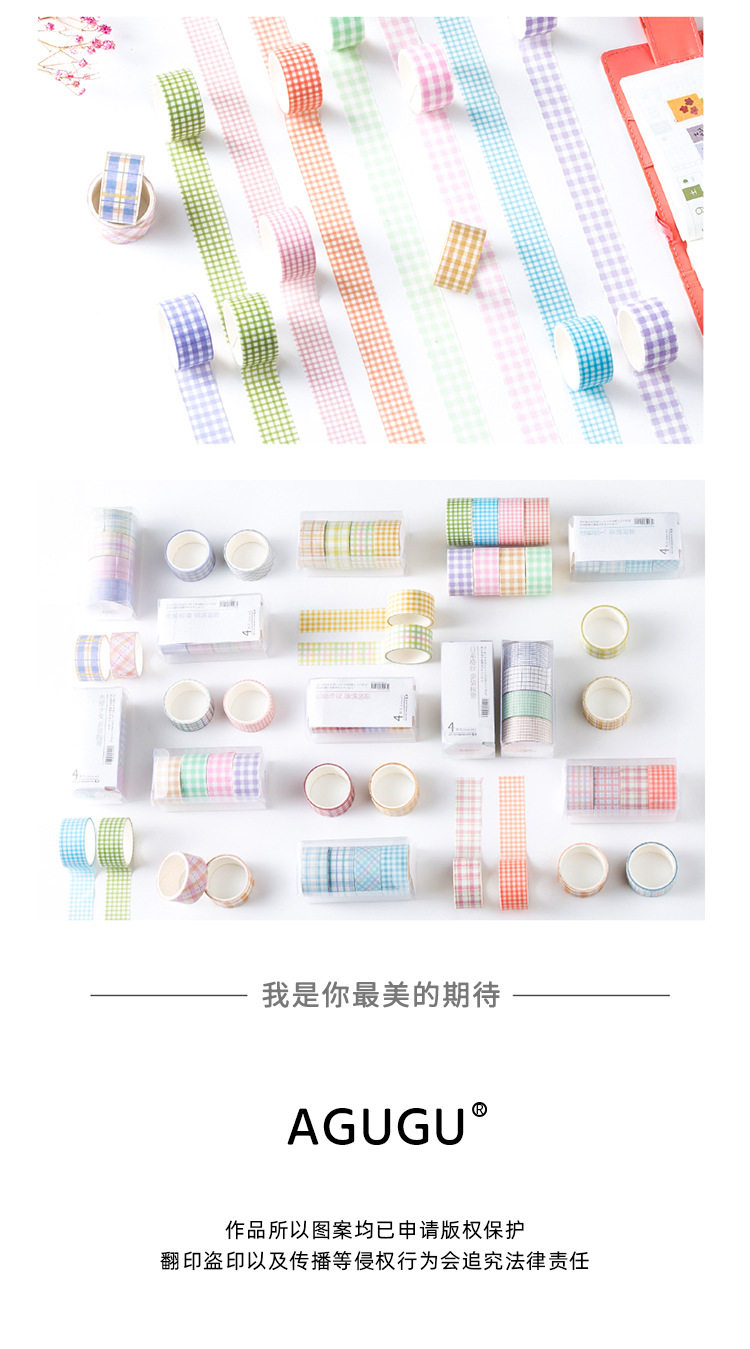 AGUGU Japanese Plaid ins hand account tape Plaid diy hand account material sticker set and paper tape wholesale