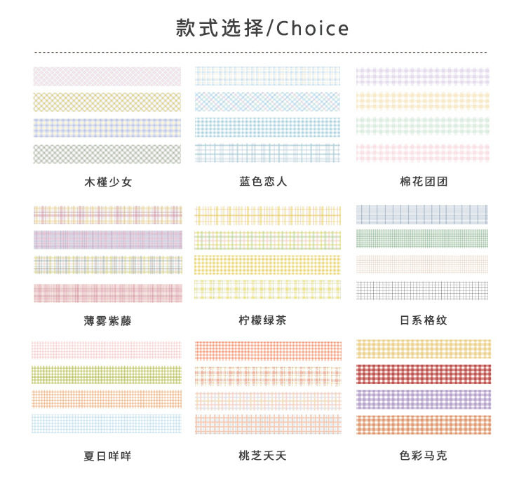 | Color | Hibiscus Girl,Blue Lovers,Cotton Tuan Tuan,Mist Wisteria,Lemon Green Tea,Japanese Plaid,Color Mark,Taozhi Yao Yao,Summer BAA,Fresh salt flower |