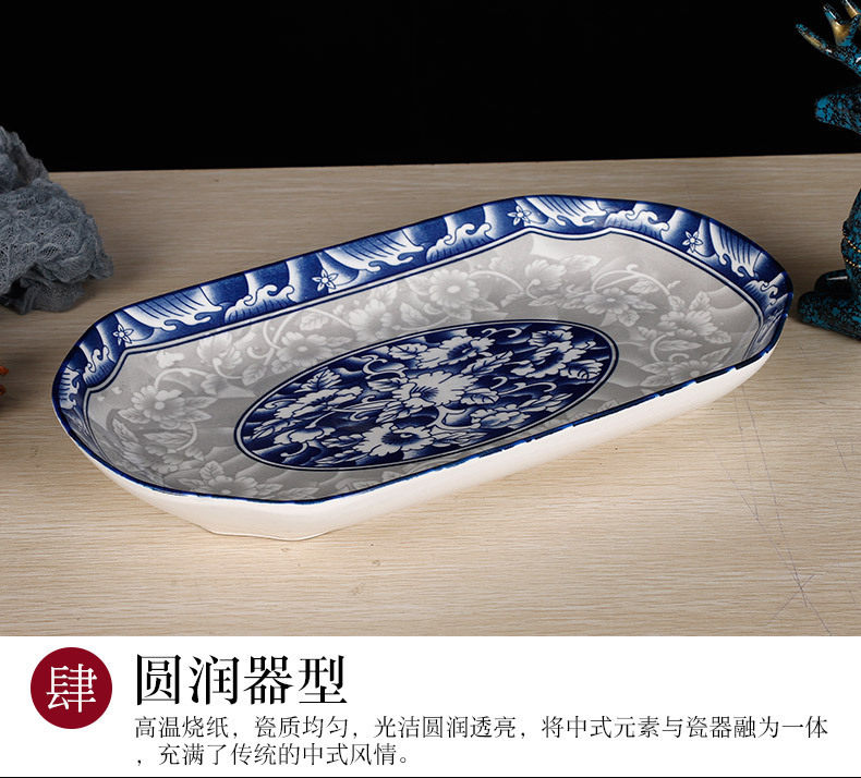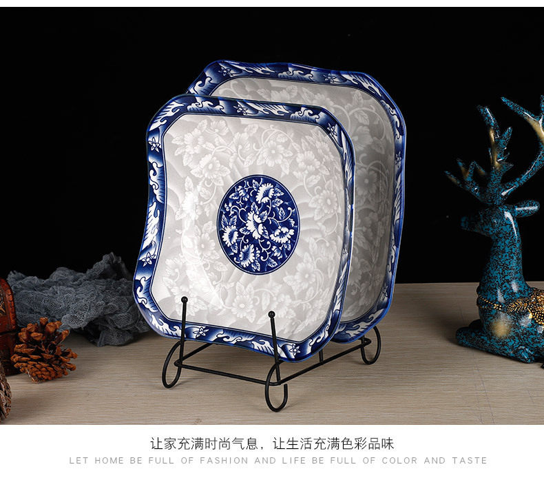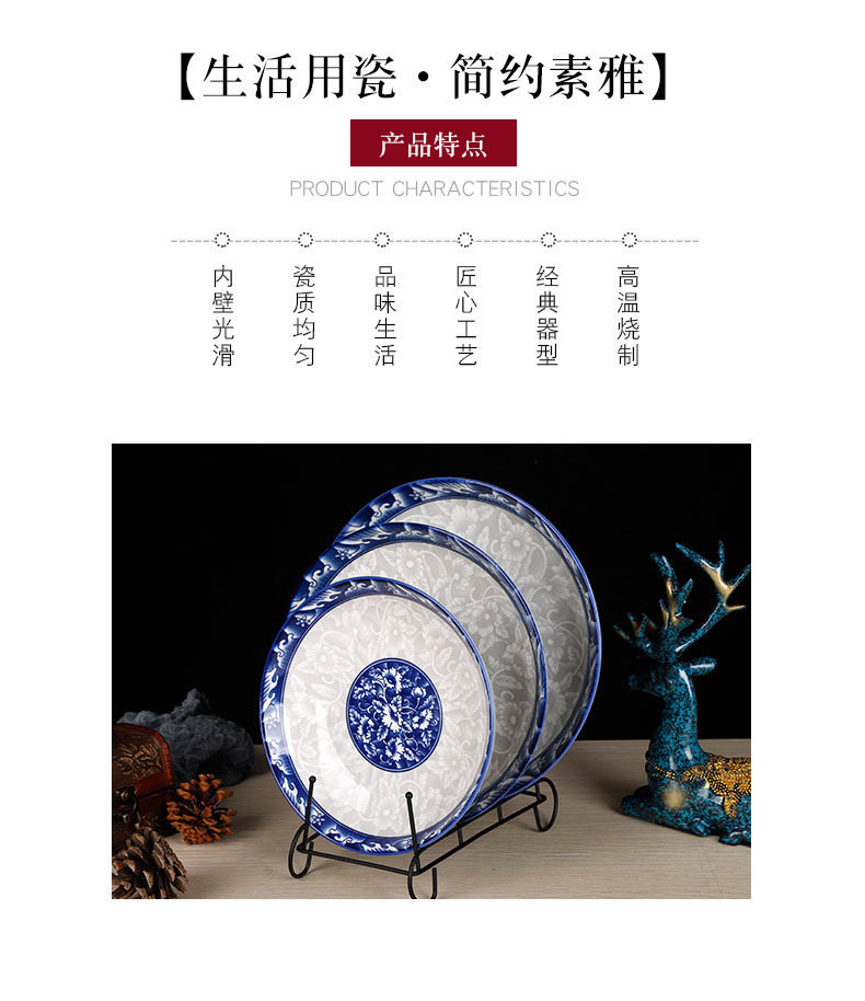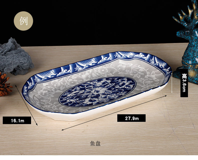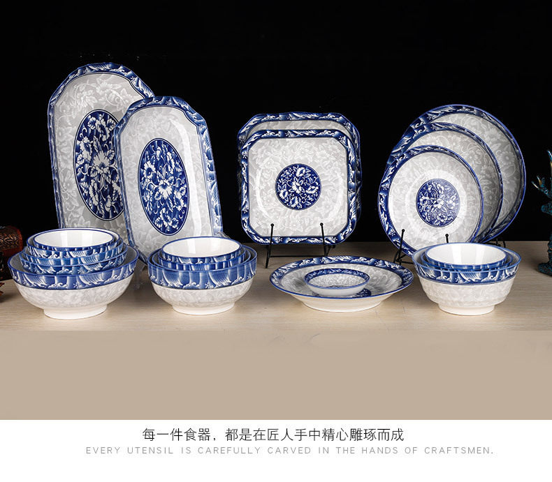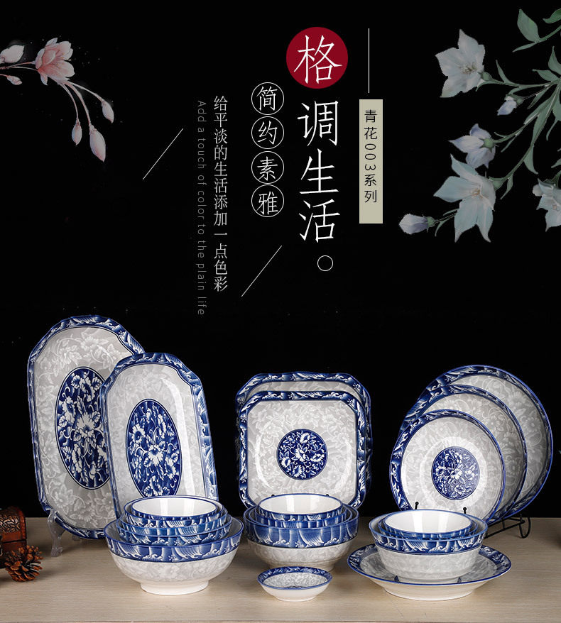 Green Print Ceramic Dishes and Plates Set Daily Necessities Blue and White Porcelain Tableware Home or Hotel Tableware Ceramic