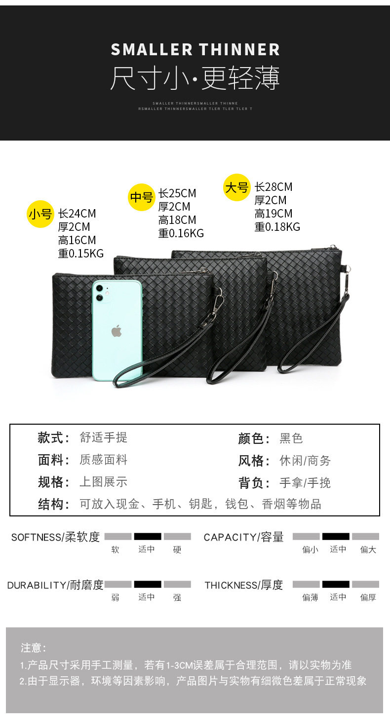 New Men's Woven Clutch Large Capacity Soft Leather Handbag Envelope Trendy Business Men's Bag Live Supply