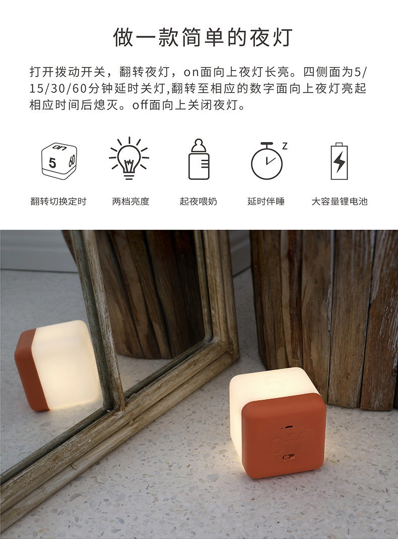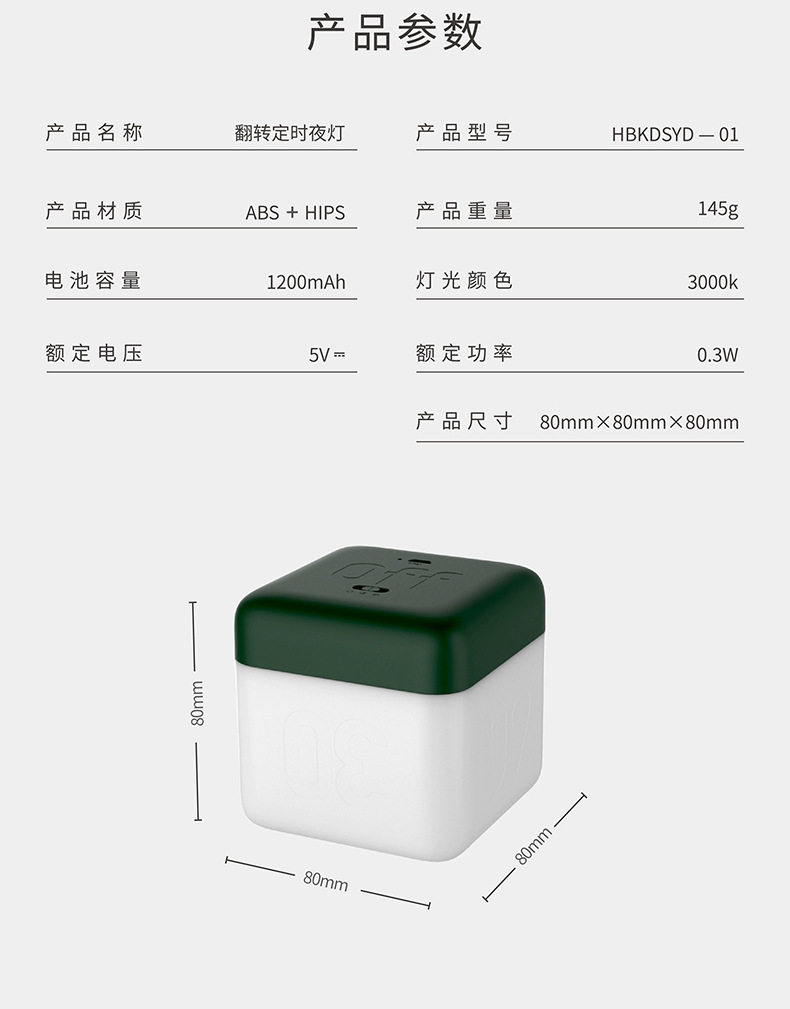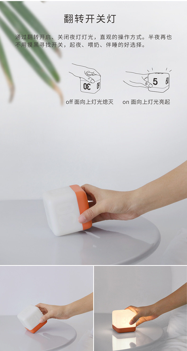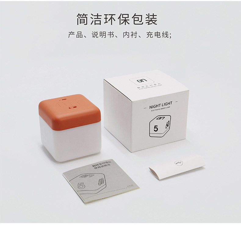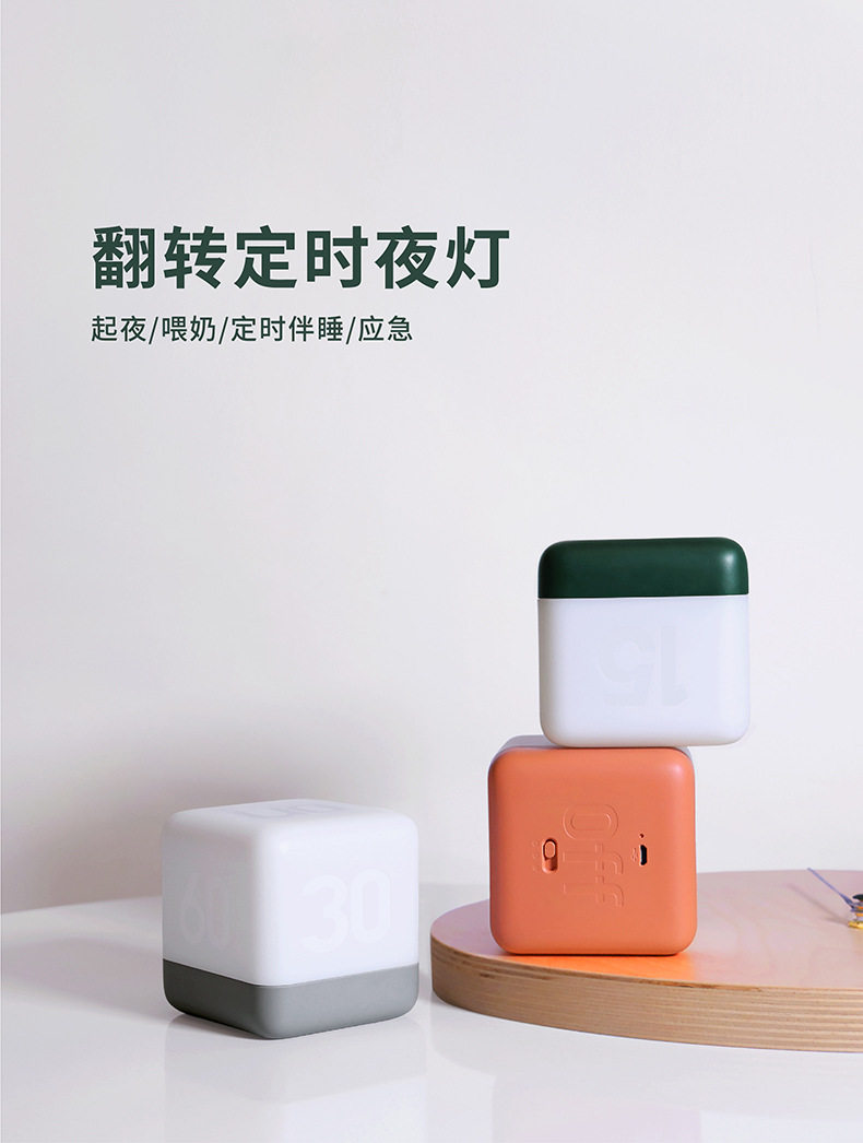 HBK Flip Night Light Rubik's Cube Flip Timing Light Bedside LED Table Lamp Charging Cube USB Nightlight