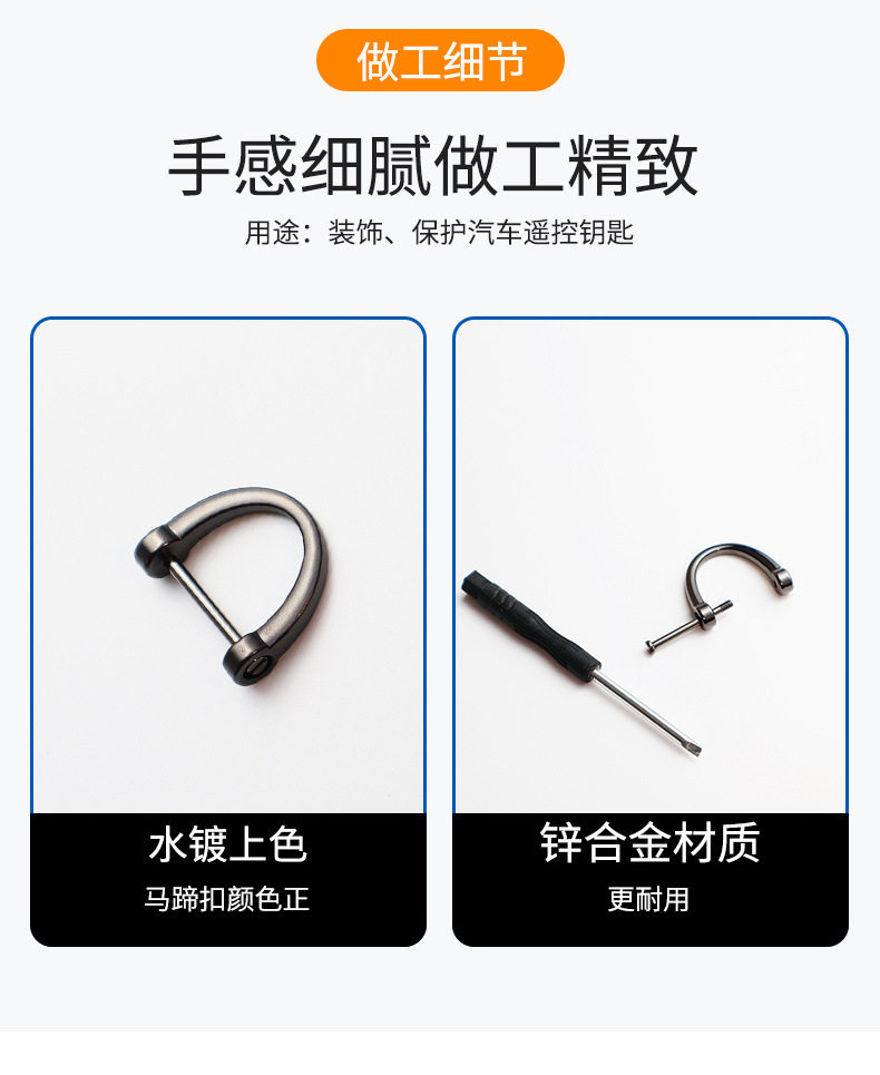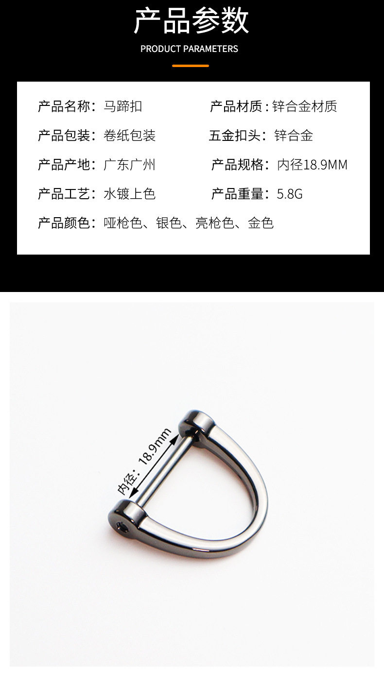 Factory direct metal horseshoe buckle 17mm-19mm specification zinc alloy car key chain high-grade electroplating D-shaped buckle