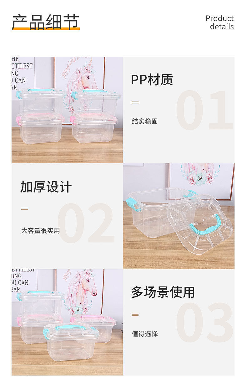 Plastic storage box transparent clothes storage box portable toy storage box clothes storage box dormitory household
