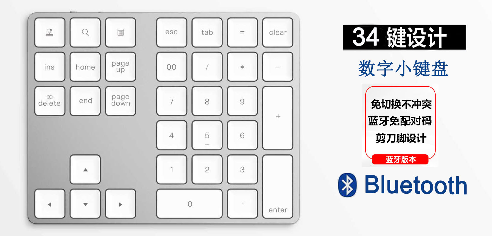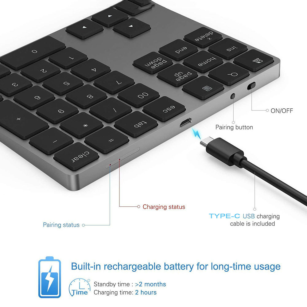 34-Key Rechargeable Bluetooth Numeric Keyboard Supports Mac Os System Laptop External Ultra-Thin Mini