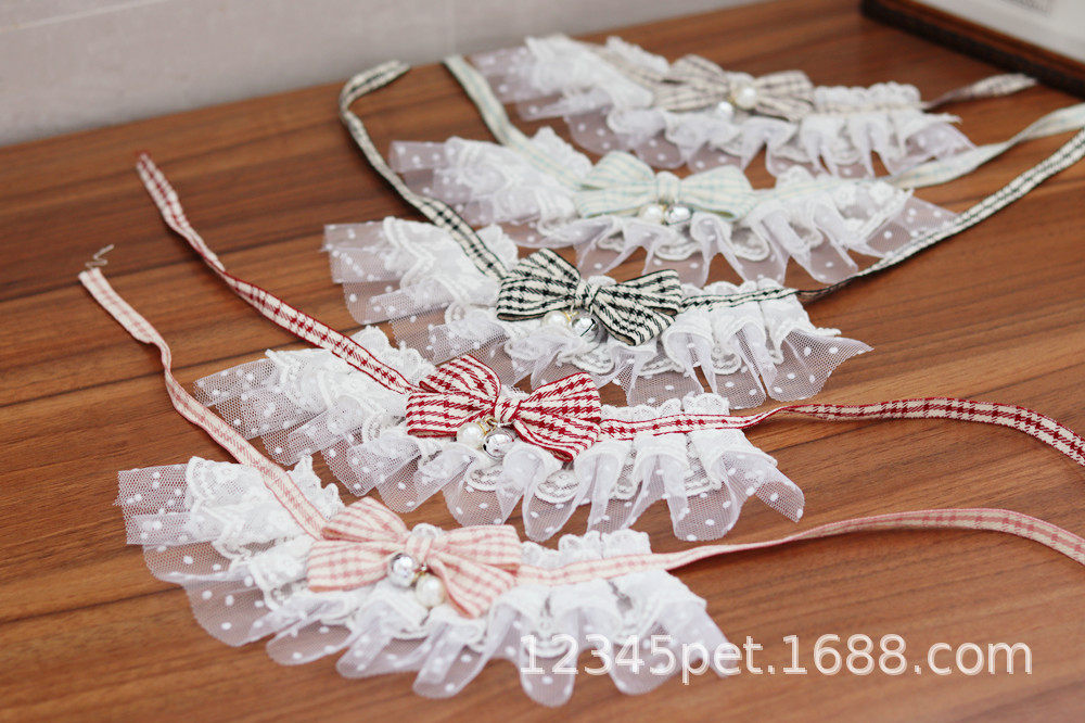 Summer Pet Lace Bib Pet Collar Cat Dog Bell Neck Ring Pet Jewelry Tulle Bib