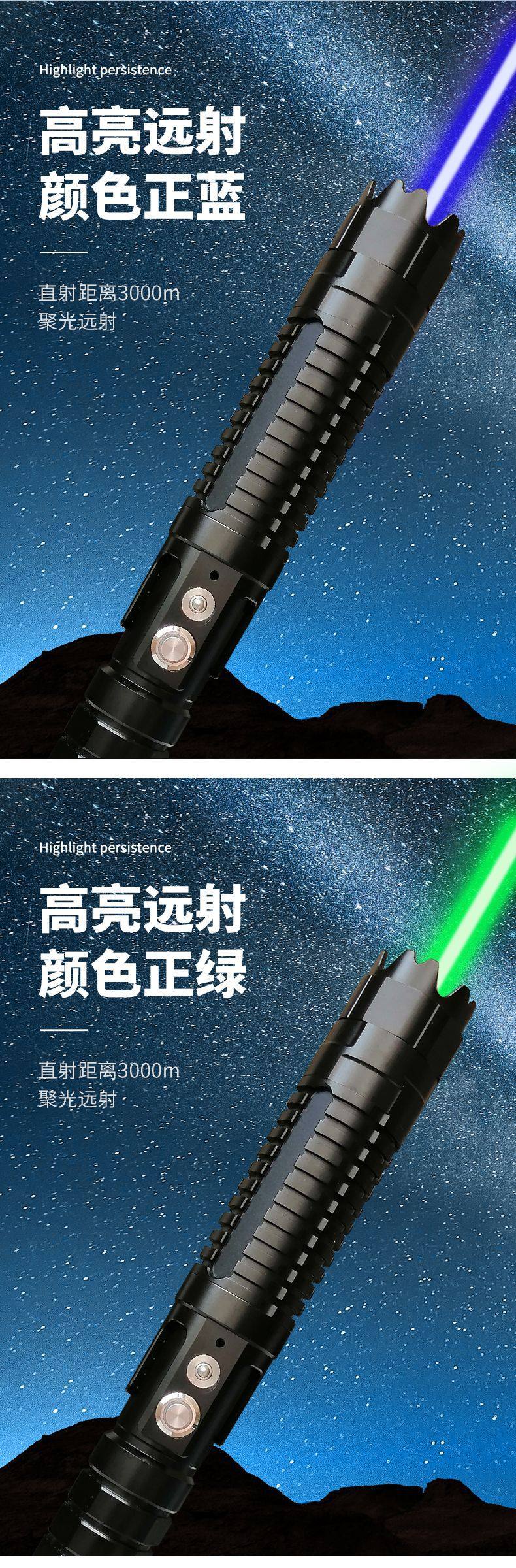 Factory Supply Hand-held Flashlight Outdoor Home Blue and Green Double Color Flashlight Instructor Pen Sales Stylus Gift