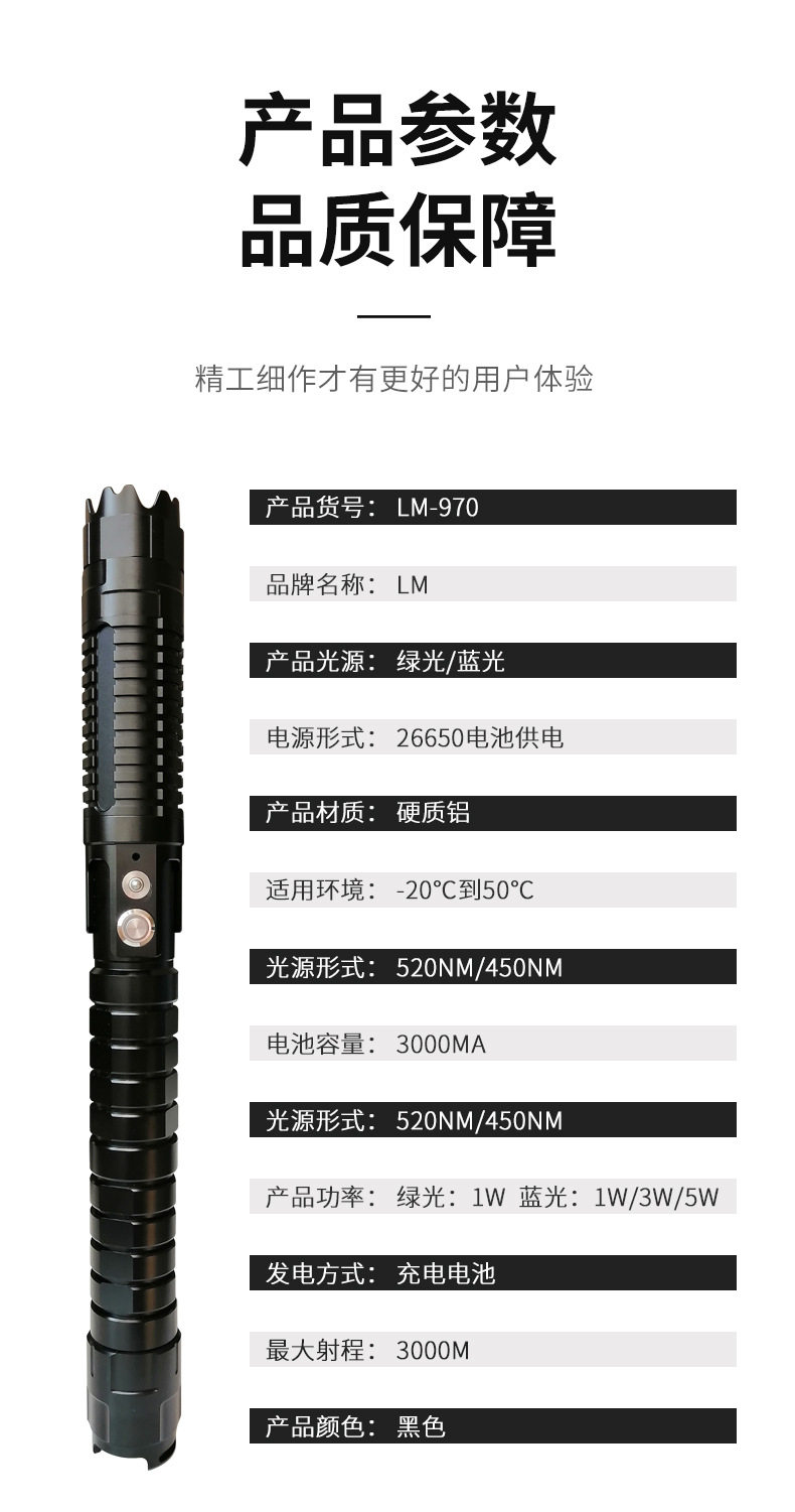 | Power | Green light 520nm: 1w blue light 450nm: 1w/3w/5w |