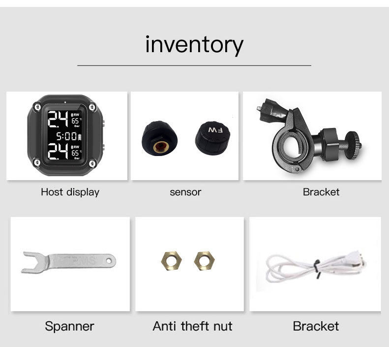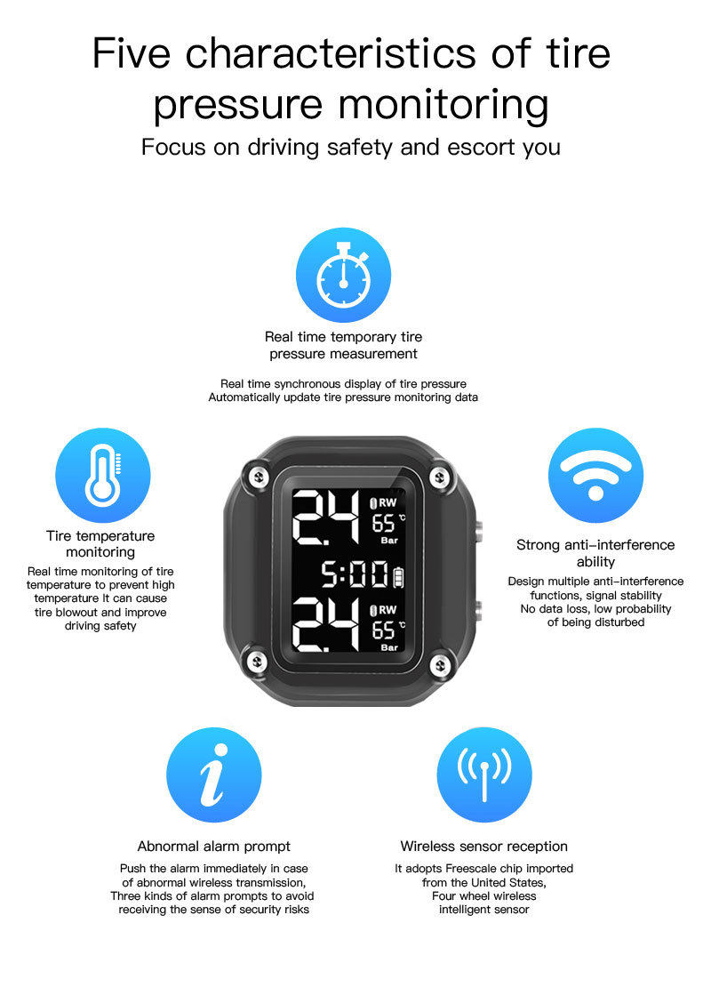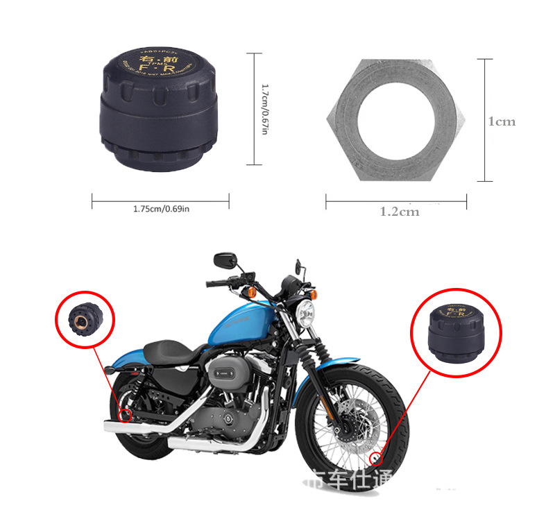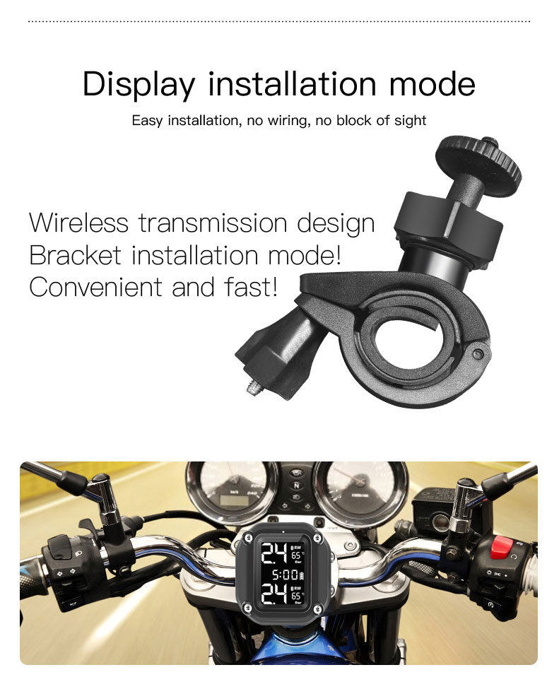 Motorcycle Tire Pressure Monitor 2-wheel Electric Vehicle Tire Pressure Detection Wireless Digital Display External Tire Pressure Detector