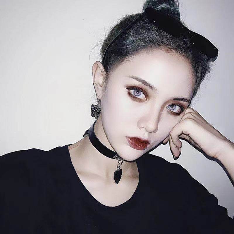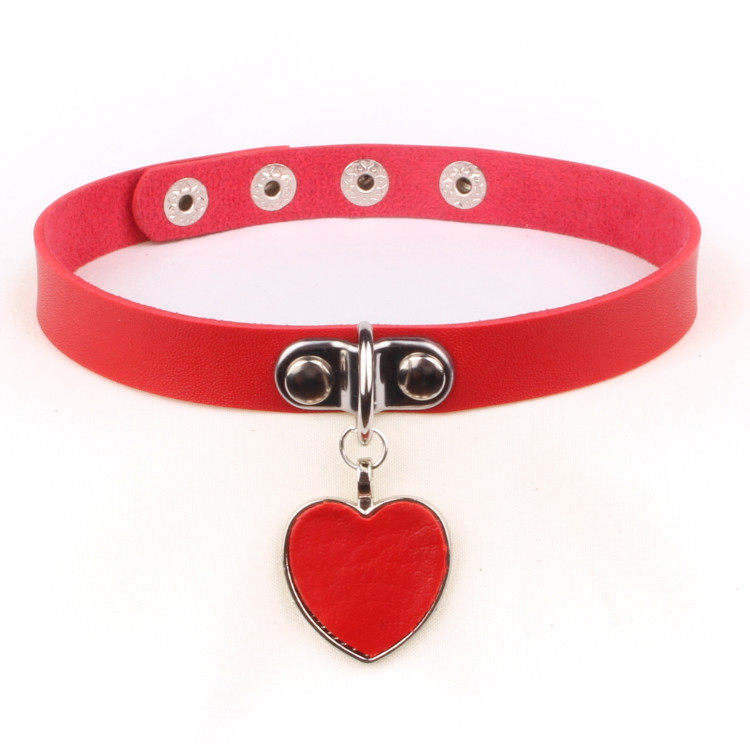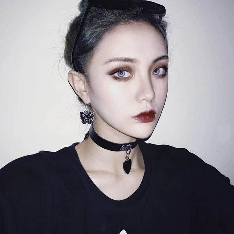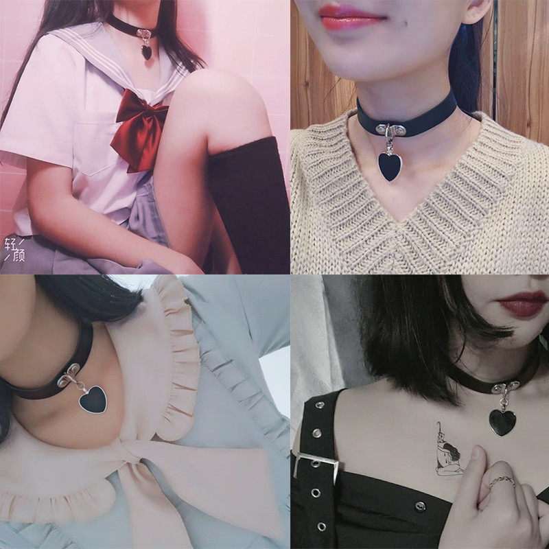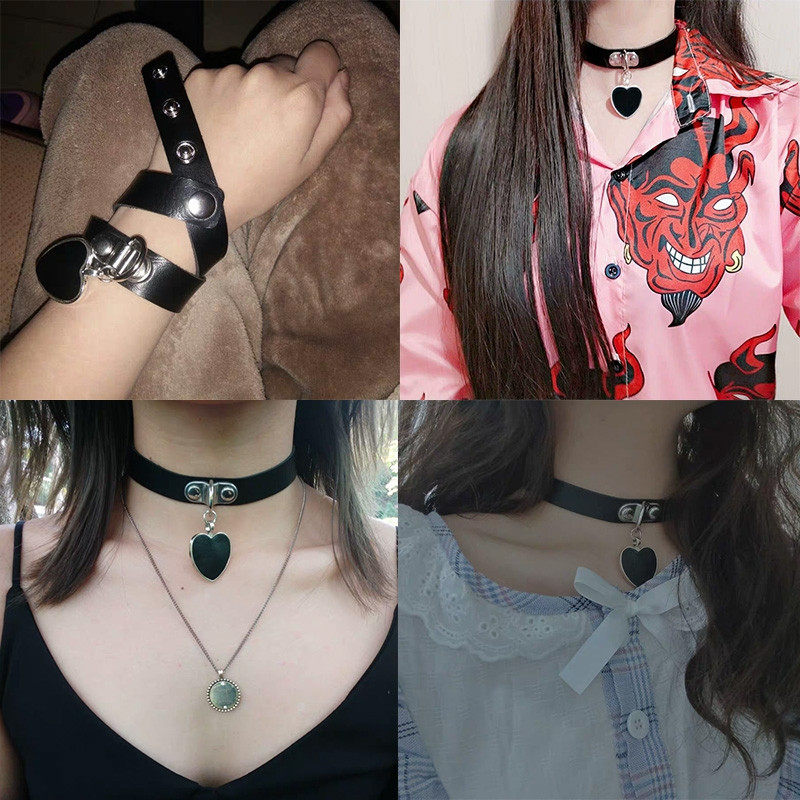 Japanese and Korean Soft Girl Anime Harajuku Punk Goth Heart Pendant Necklace Individually Packaged Leather Choker Necklace Bracelet