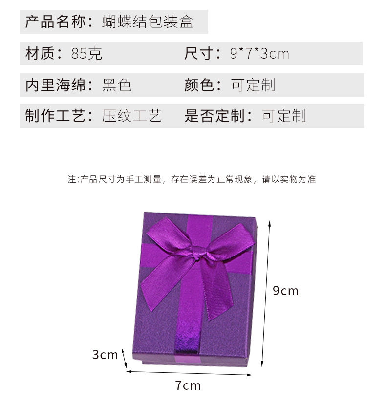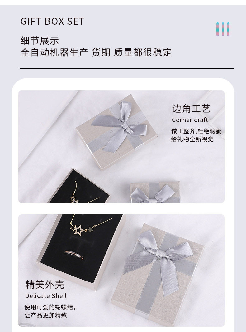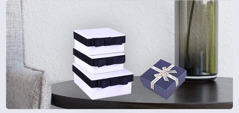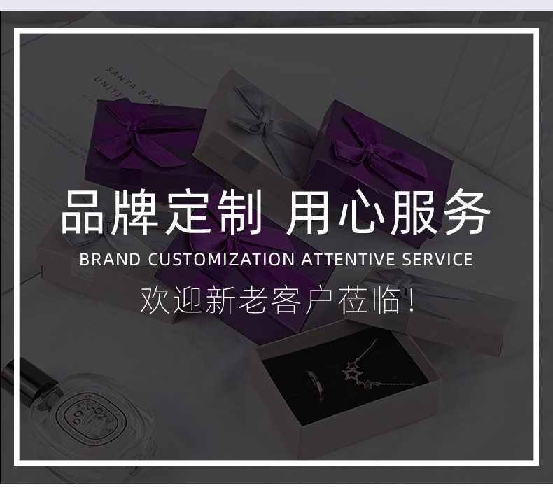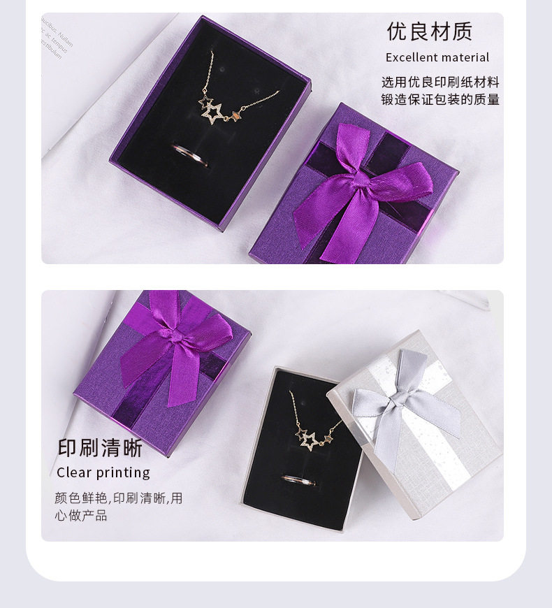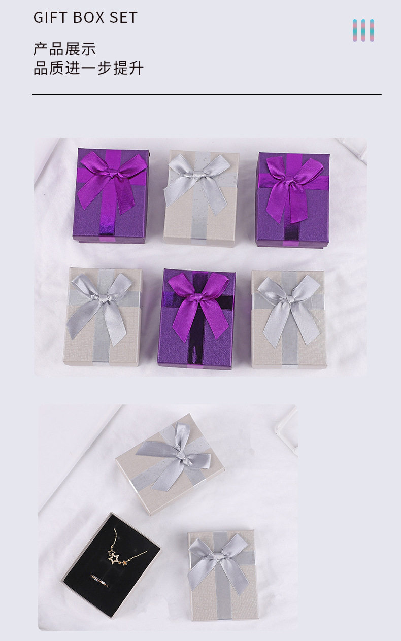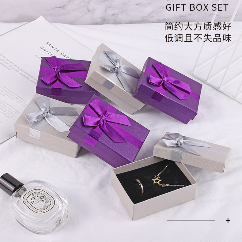 Factory Supply Square Bow Gift Box Jewelry Packaging Box Creative Jewelry Box Heaven and Earth Cover Gift Box Jewelry Box