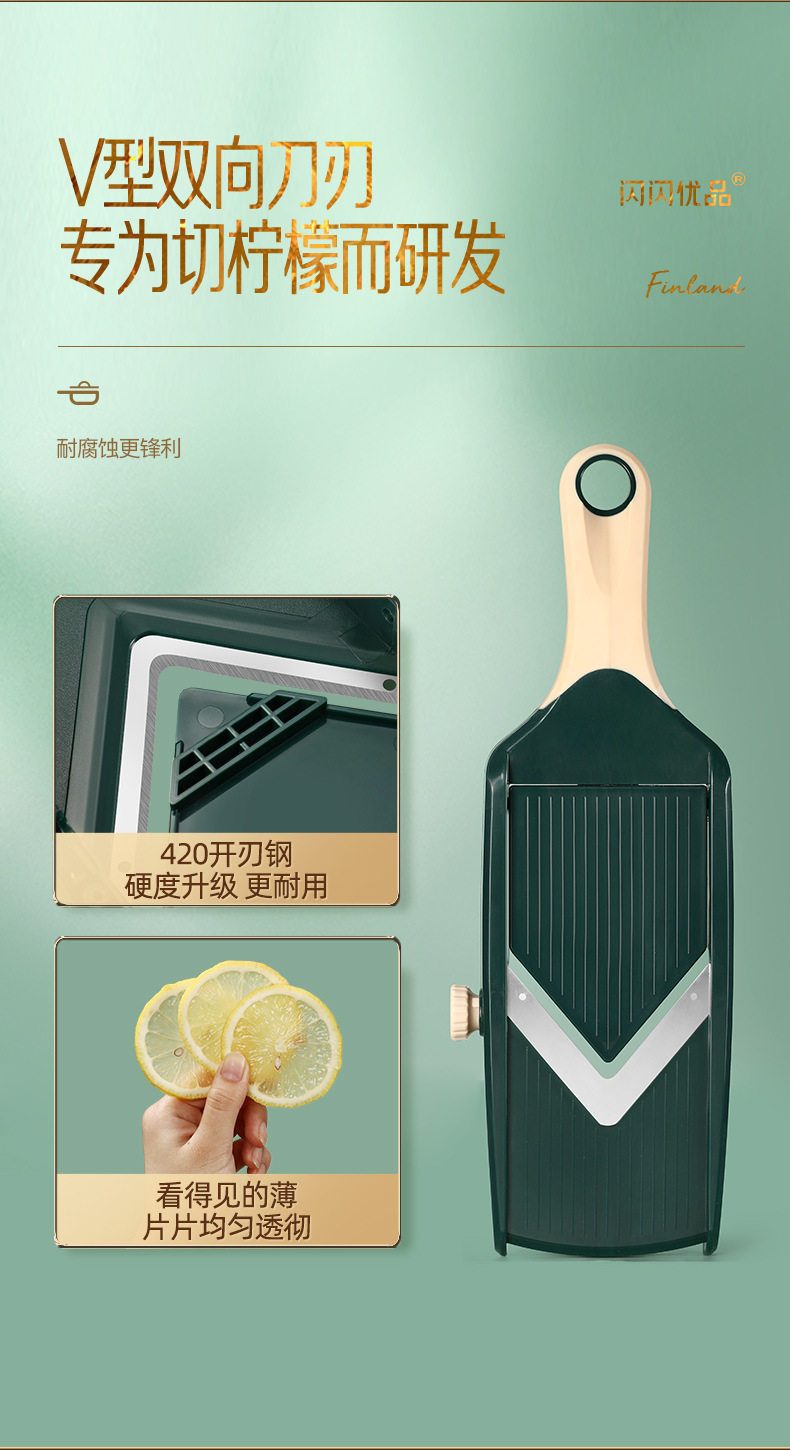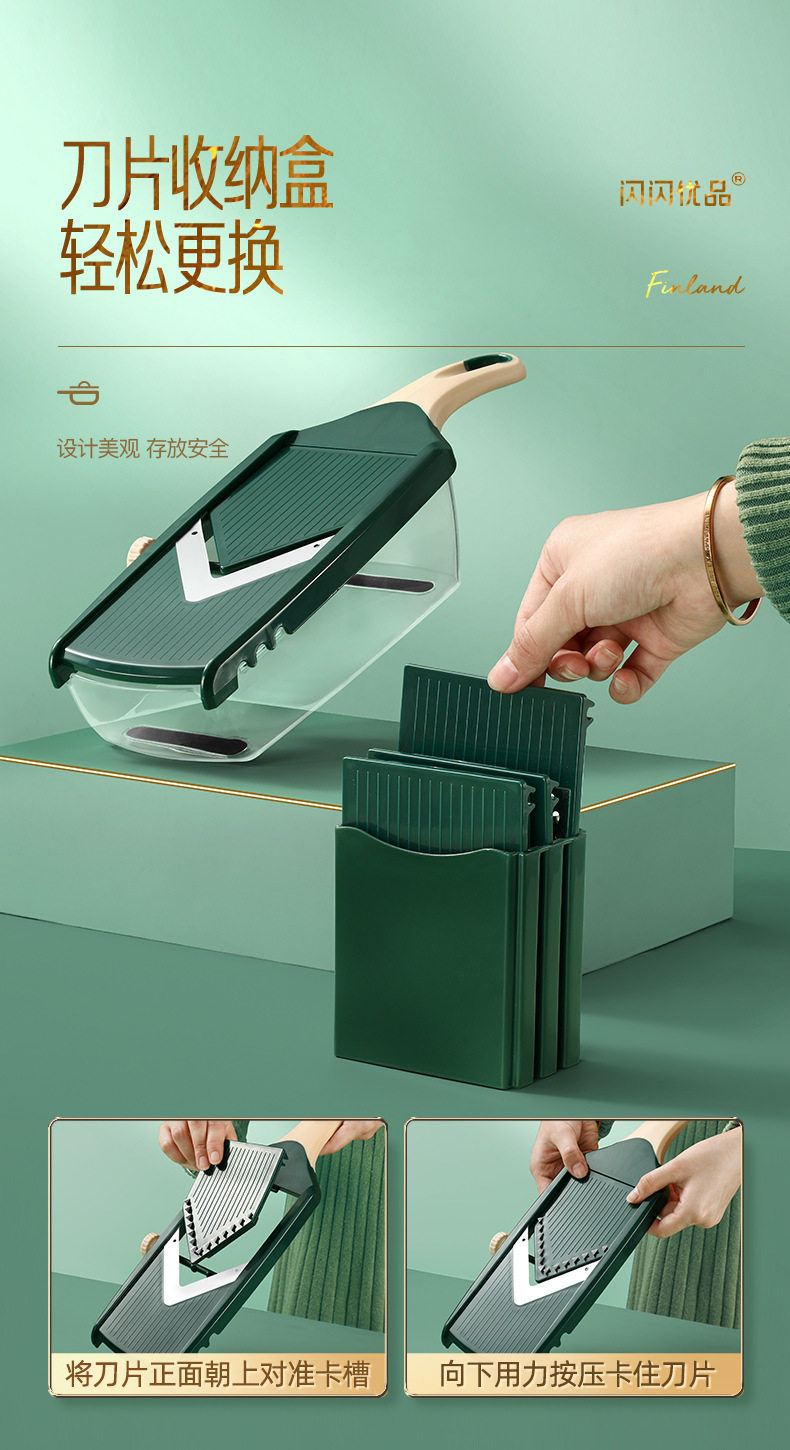 | Color | Finnish spruce green lemon slicer [4 blade hand protector storage box]],Elegant vegetable cutter: 3 knife belt box [3 blade hand guard storage box]],Elegant vegetable cutter: 3 knives [3 blade hand guard]],Elegant vegetable cutter: 6 knife [6 blade hand guard]],Spruce Green Cutter: 2 Knife [2 Blade Hand Guard]],Spruce Green Cutter: 4 Knife [4 Blade Hand Guard]] |