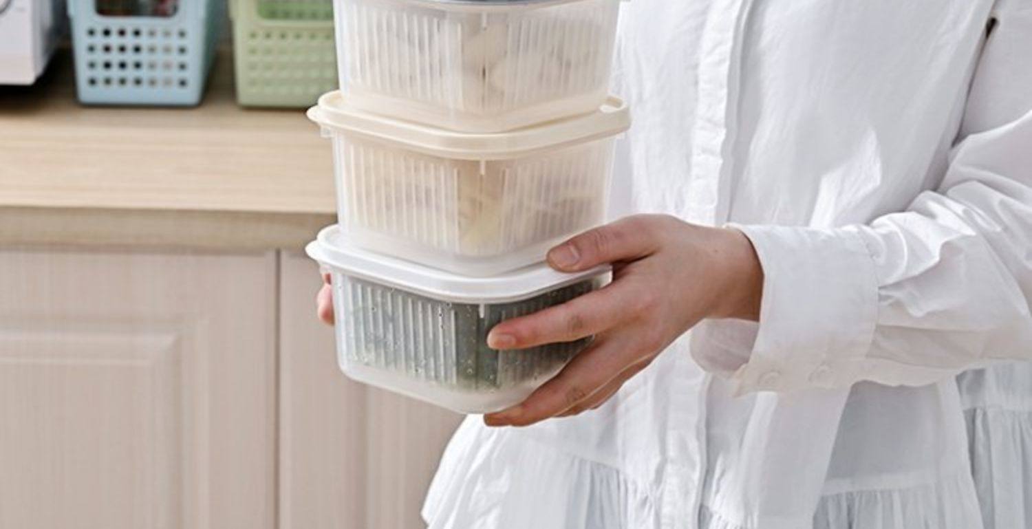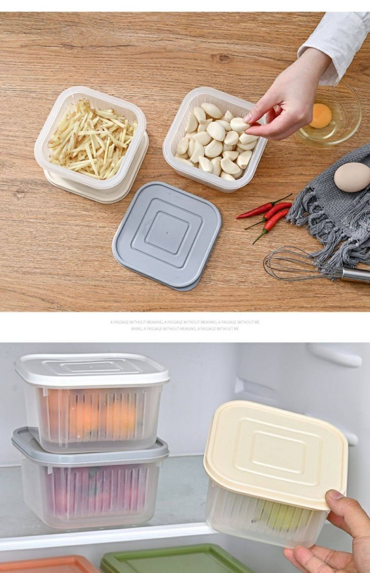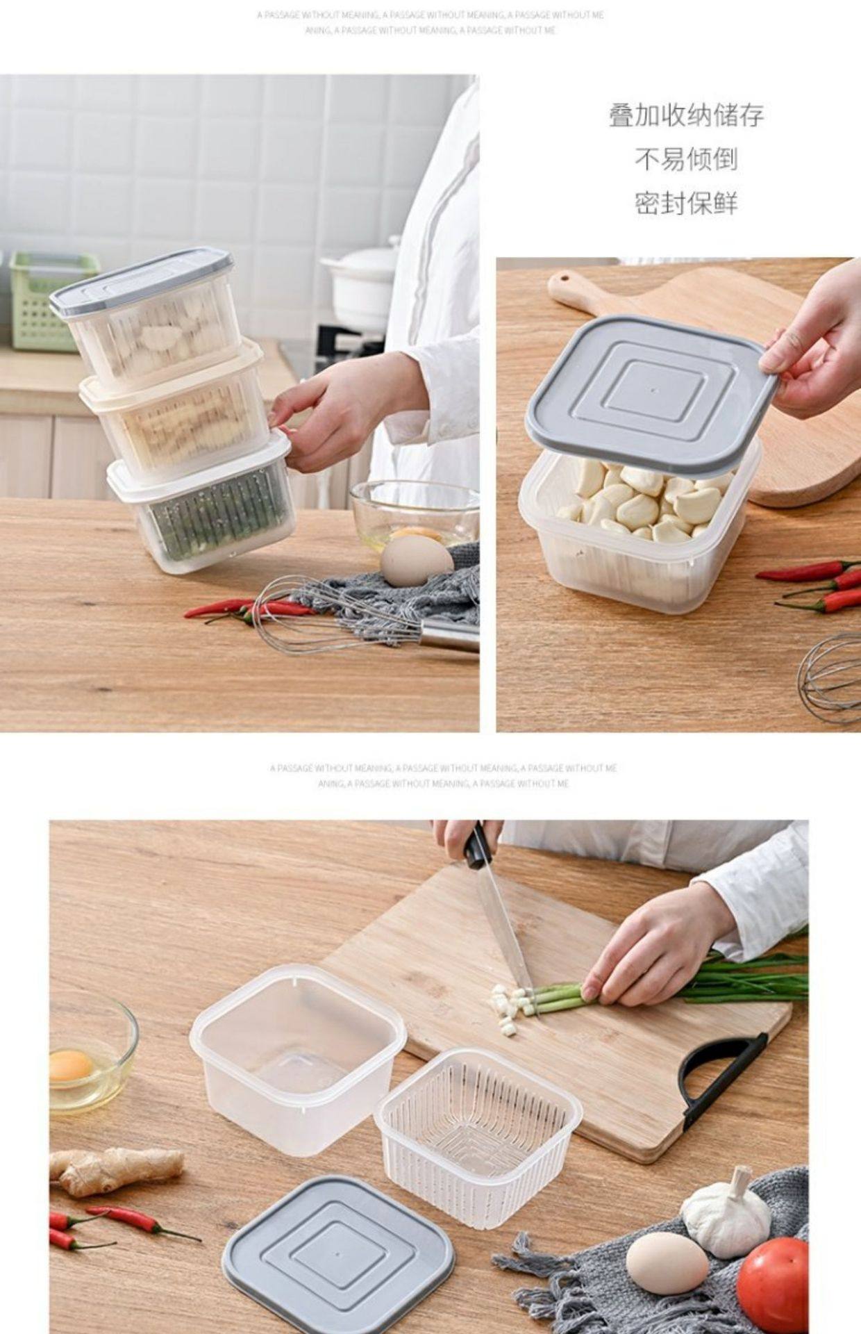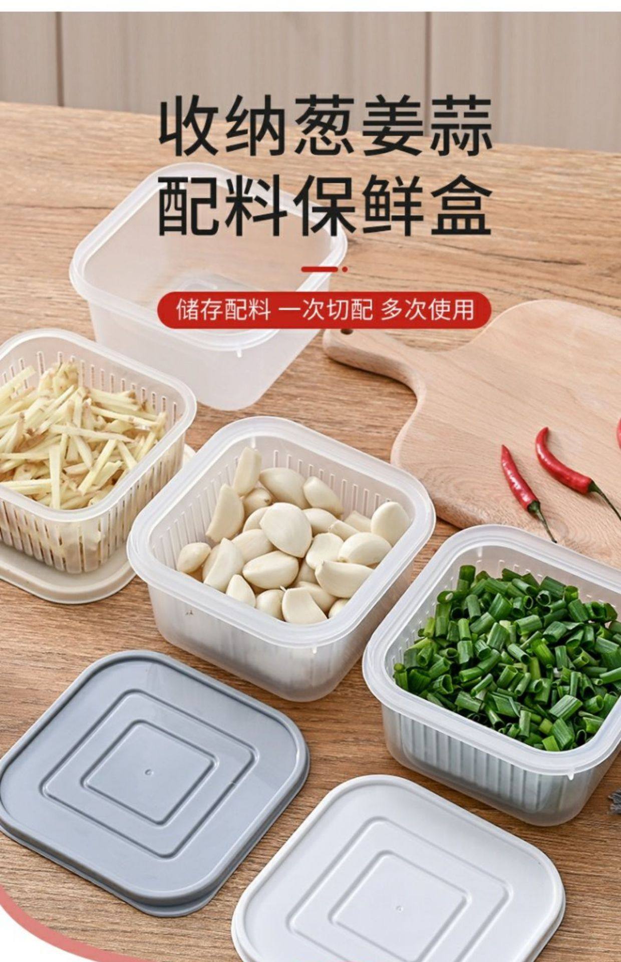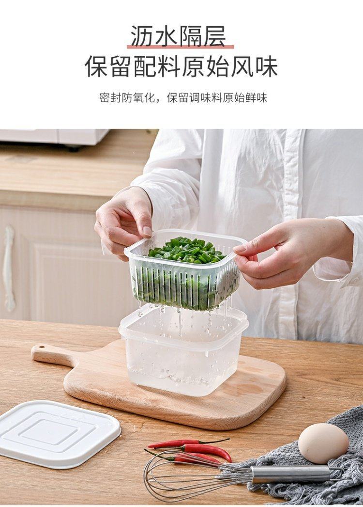 Q5273 Green Onion Preservation Box for Home Kitchen, Double-Layer Storage Box for Green Onions, Ginger, and Garlic, with Drainage Function, Refrigerator Storage