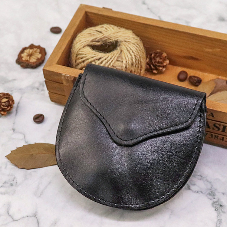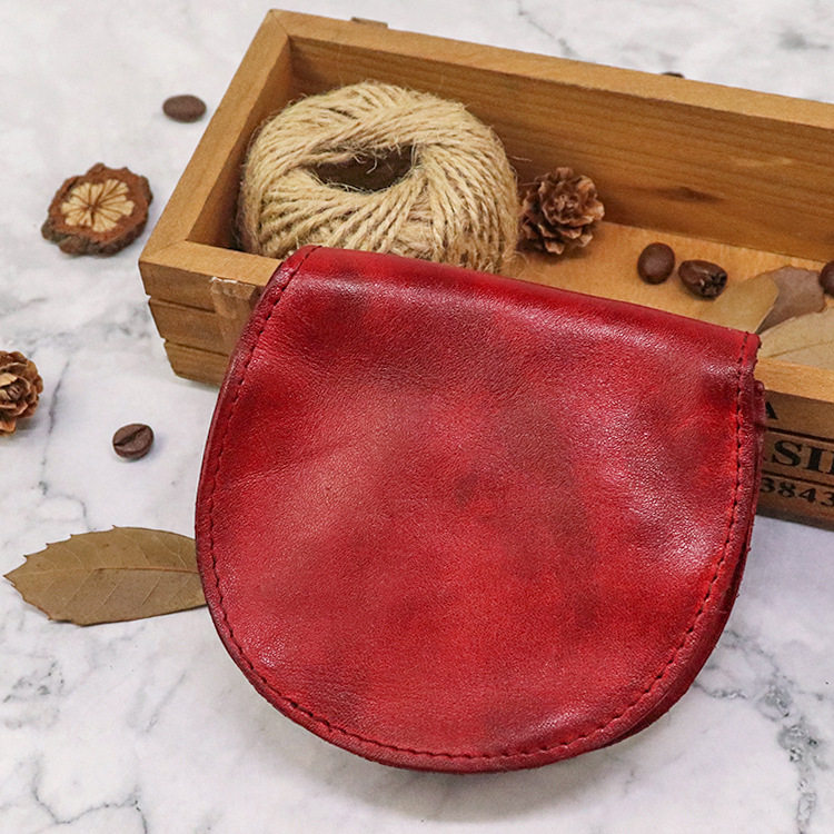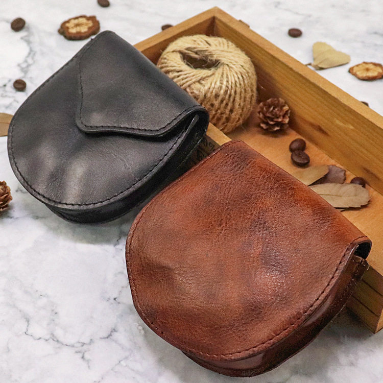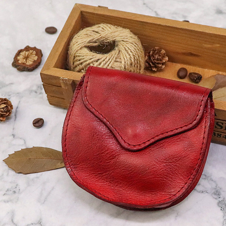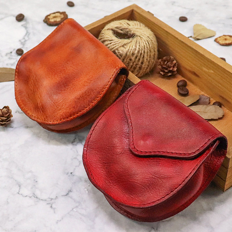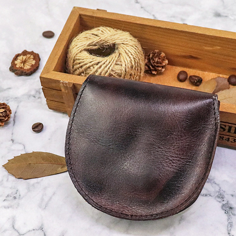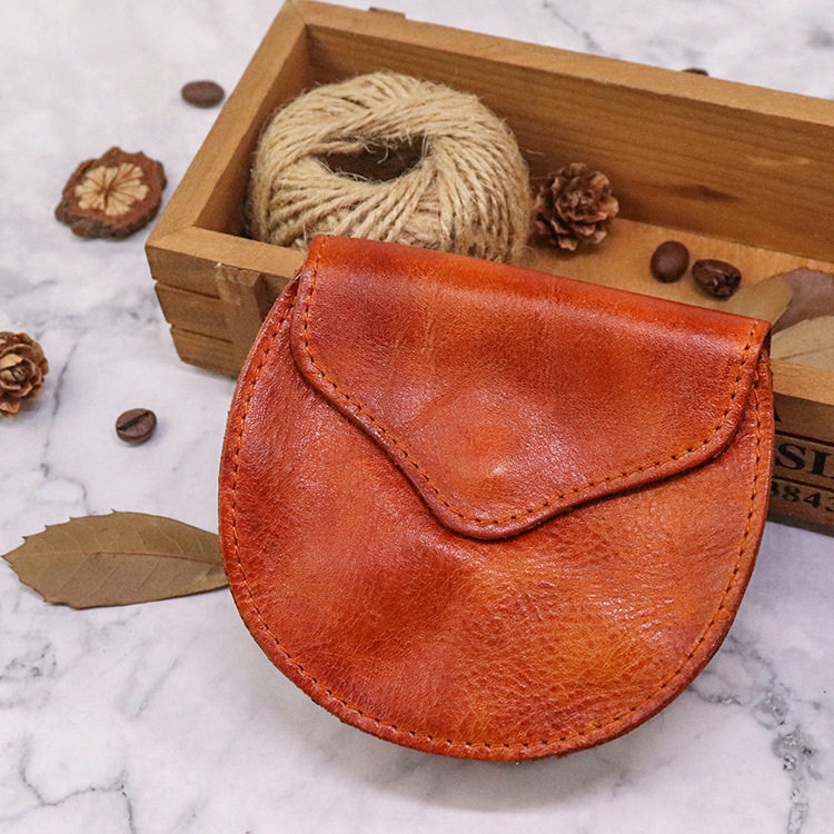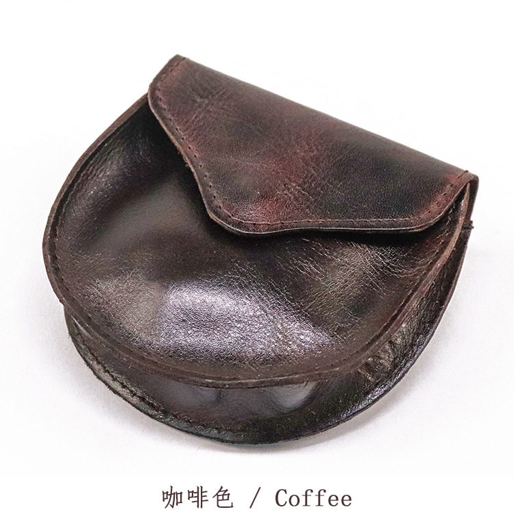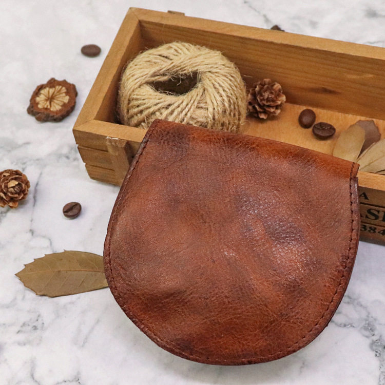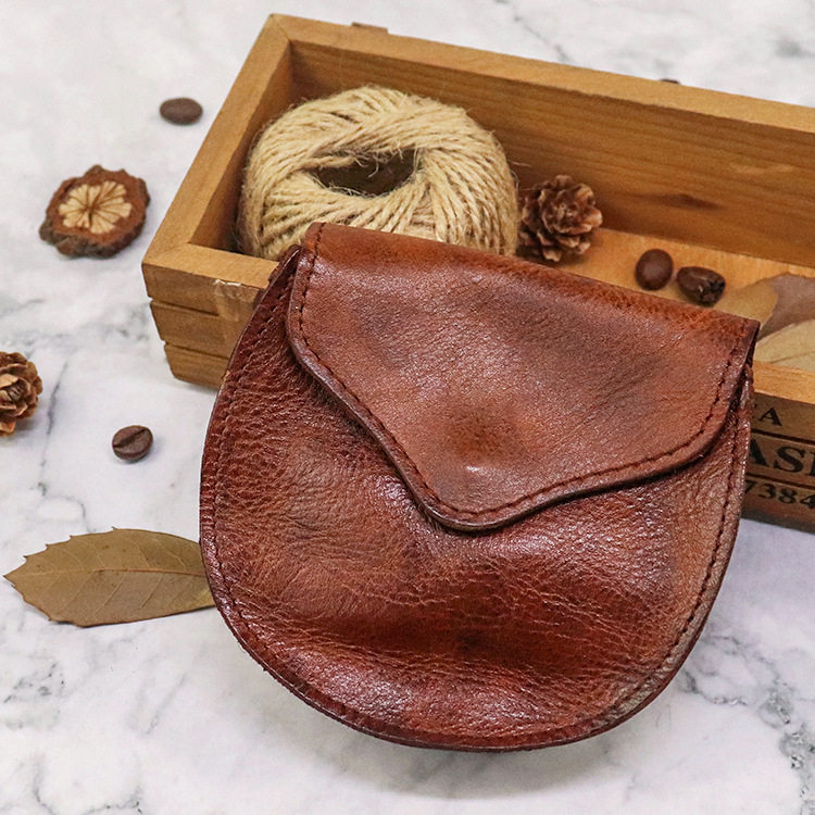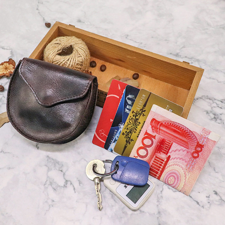 Vintage first layer cowhide vegetable tanned leather hand-brushed coin purse Women's Small soft leather storage bag driver's license bag