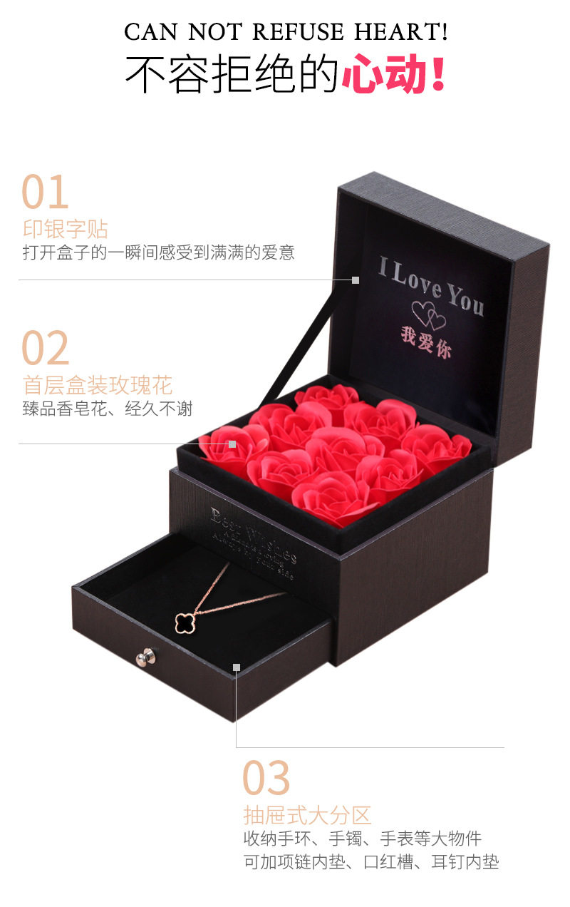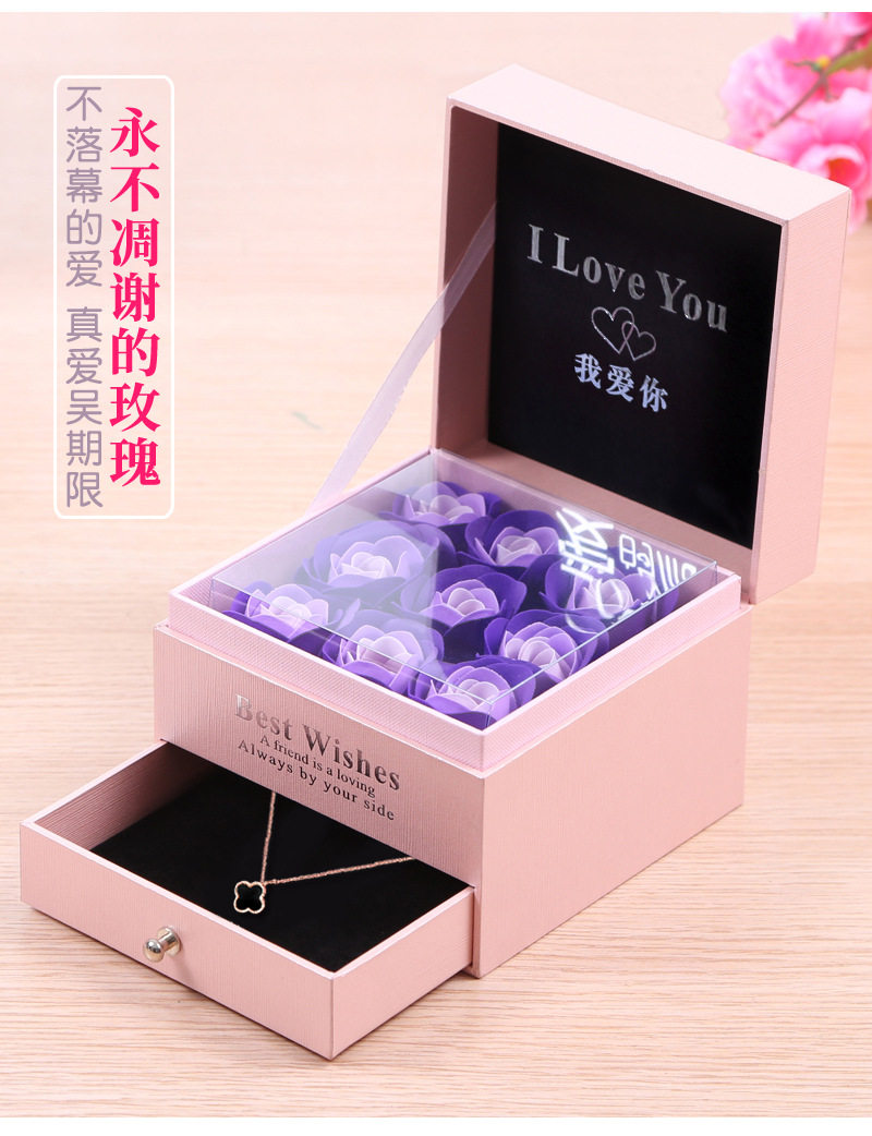 Double Layer Rose Box 9 Flowers Drawer Flower Box Lipstick Necklace Ring Valentine's Day Gift Box for Girlfriend's Birthday