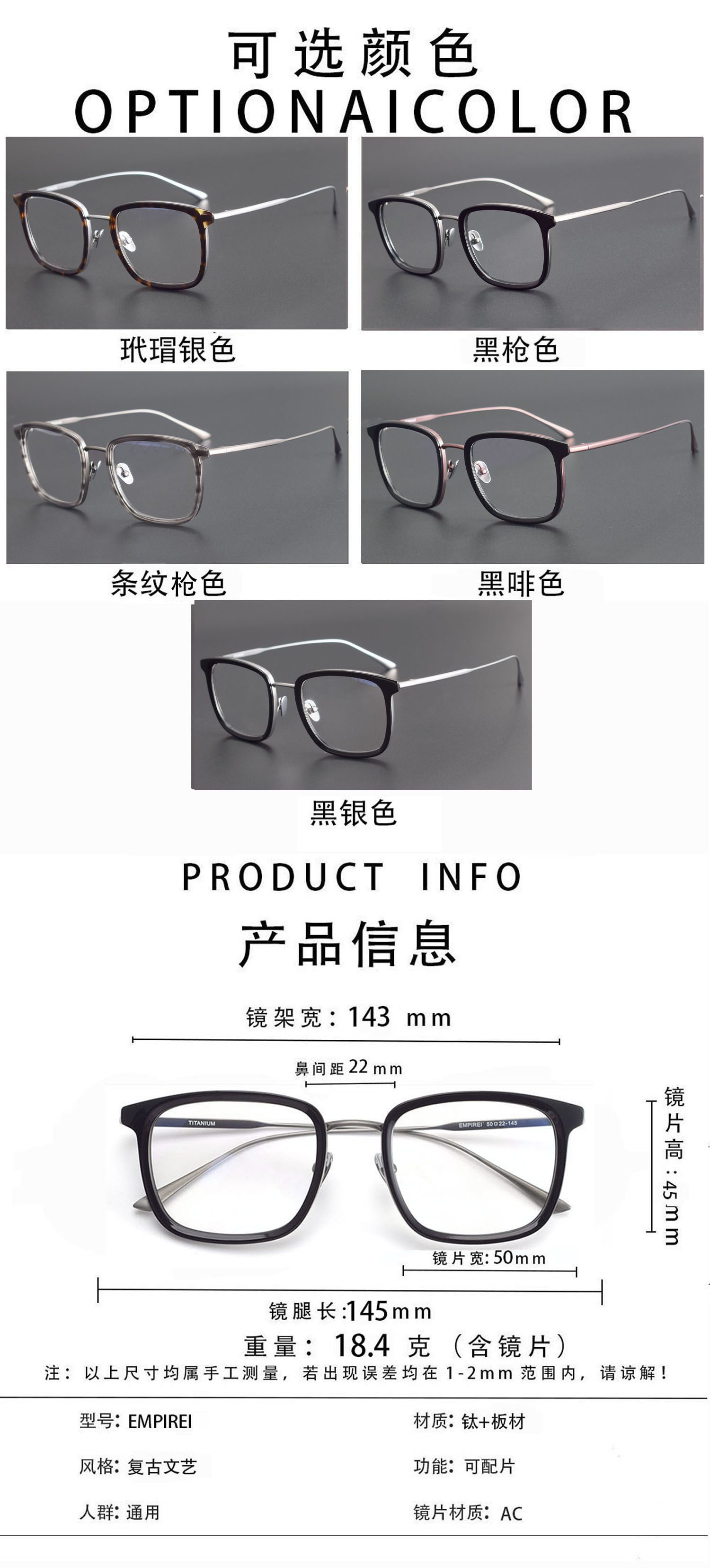 Increase the Same Style of Permanent Empire Pure Titanium Plate Glasses Frame, Simple Business Square Ultra-Light Pure Titanium Glasses Frame