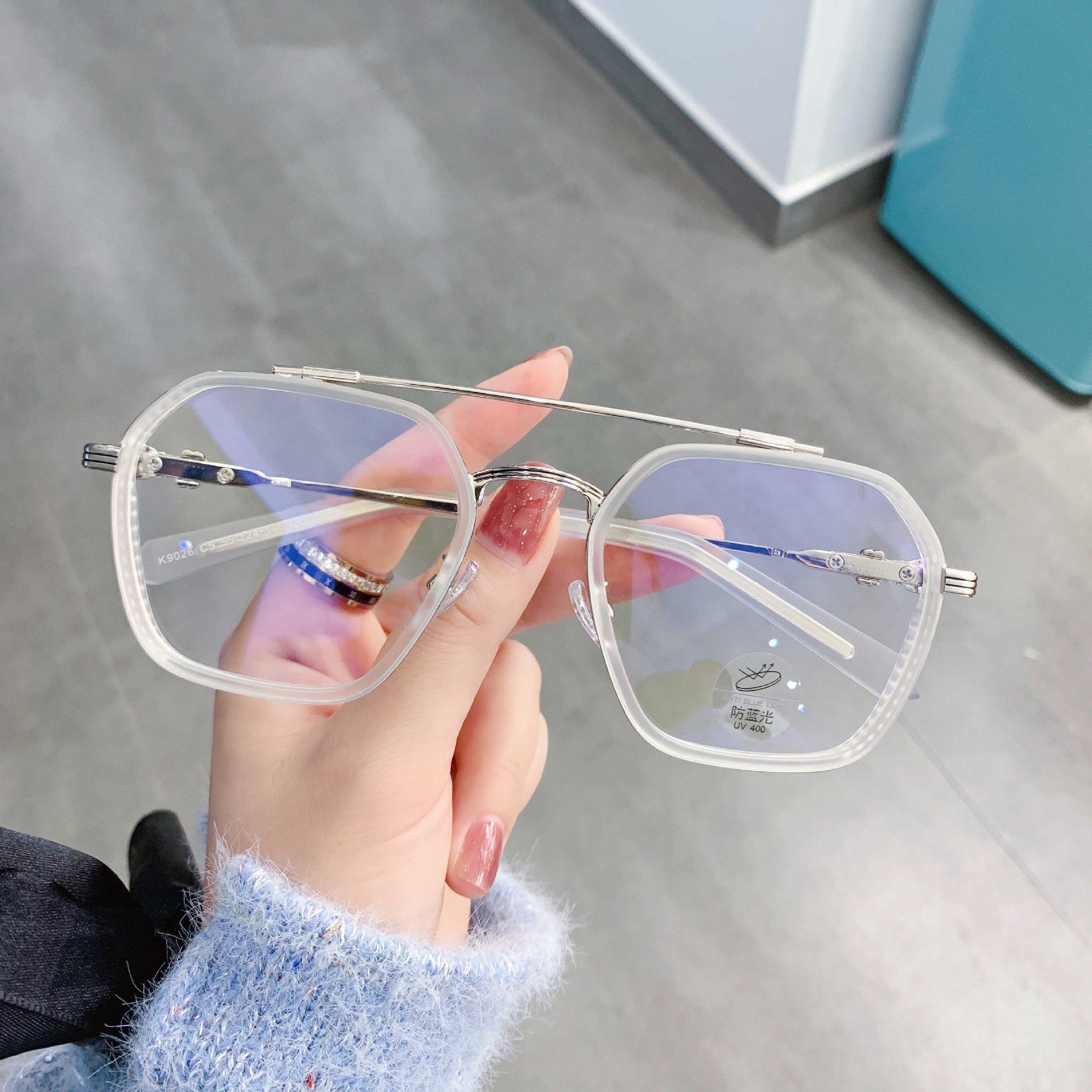 Kedun Anti-Blue Light Double-Beam Irregular Eyeglass Frames, William Chan Style, 2021 New Model, Cool and Stylish Plain Glasses, Internet Celebrity Style