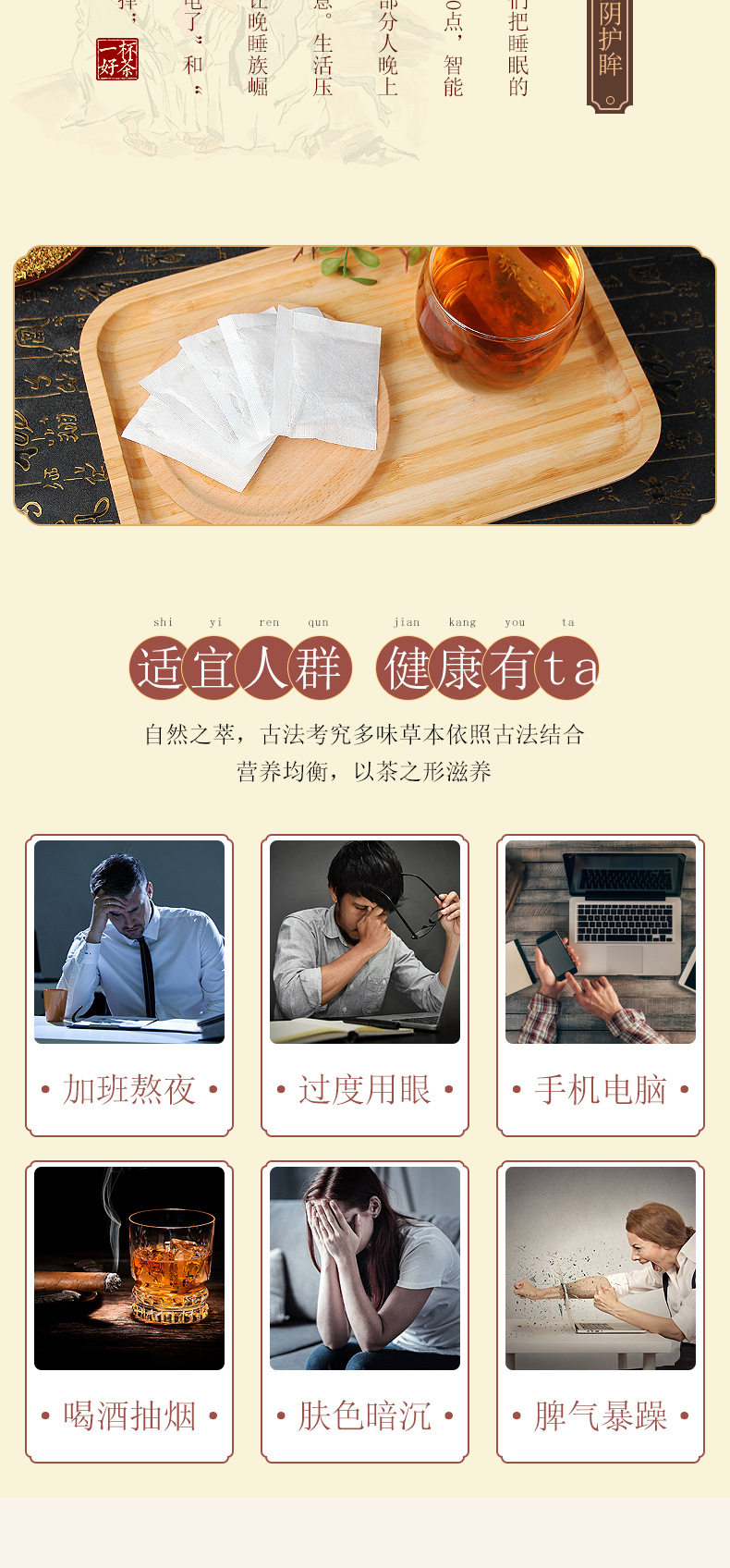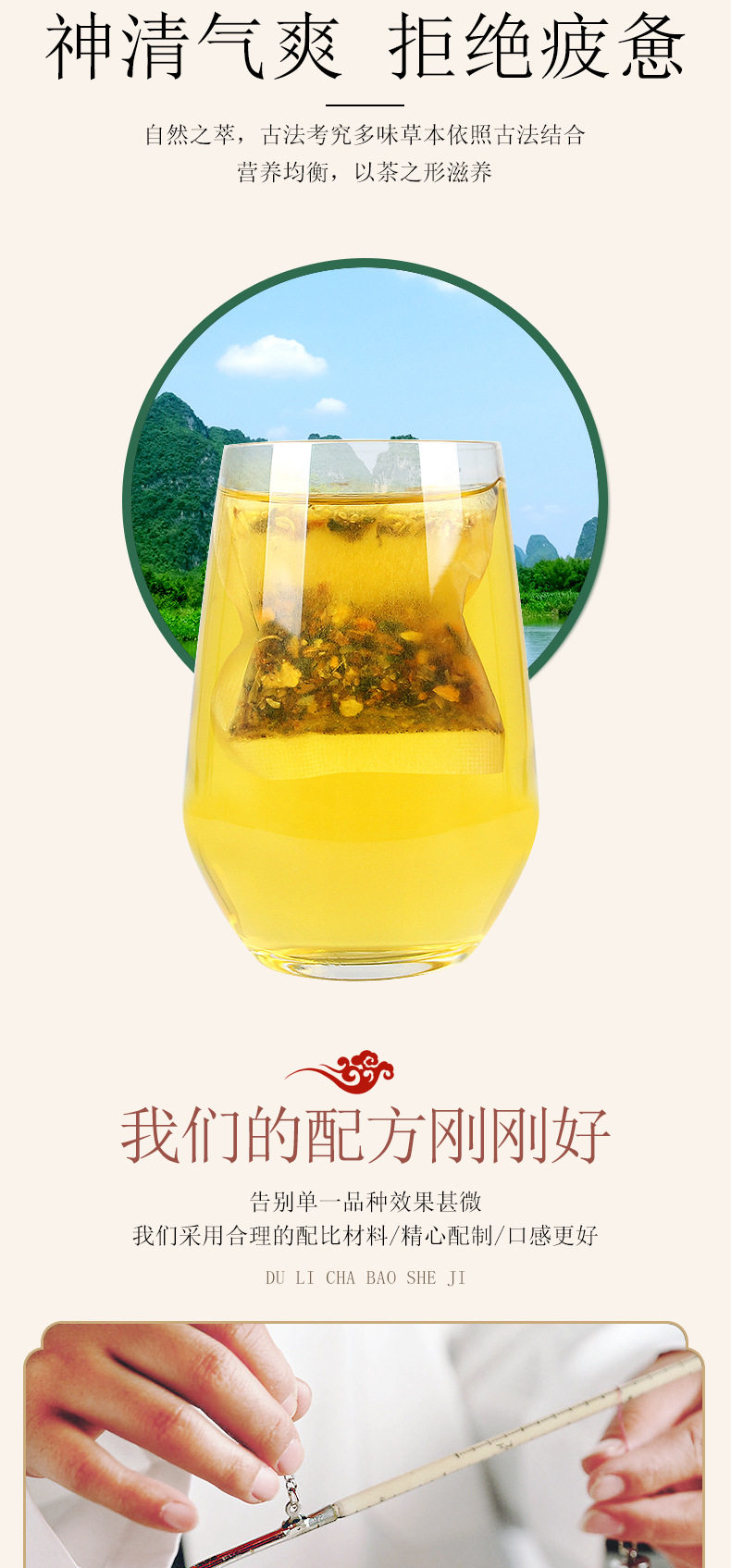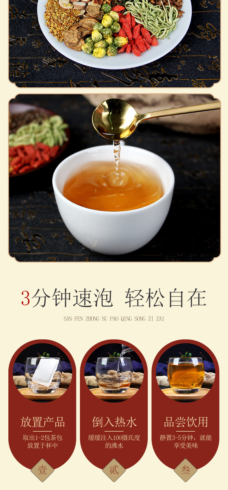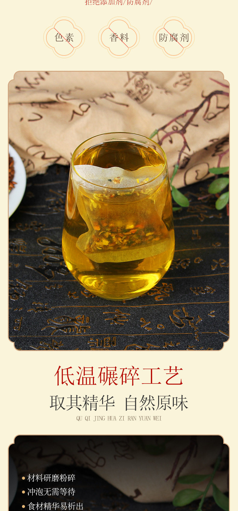 | Raw materials and ingredients | Cassia seeds, barley, dandelions, licorice, gardenia, orange peel, burdock root, wolfberry, chrysanthemum, honeysuckle, osmanthus |