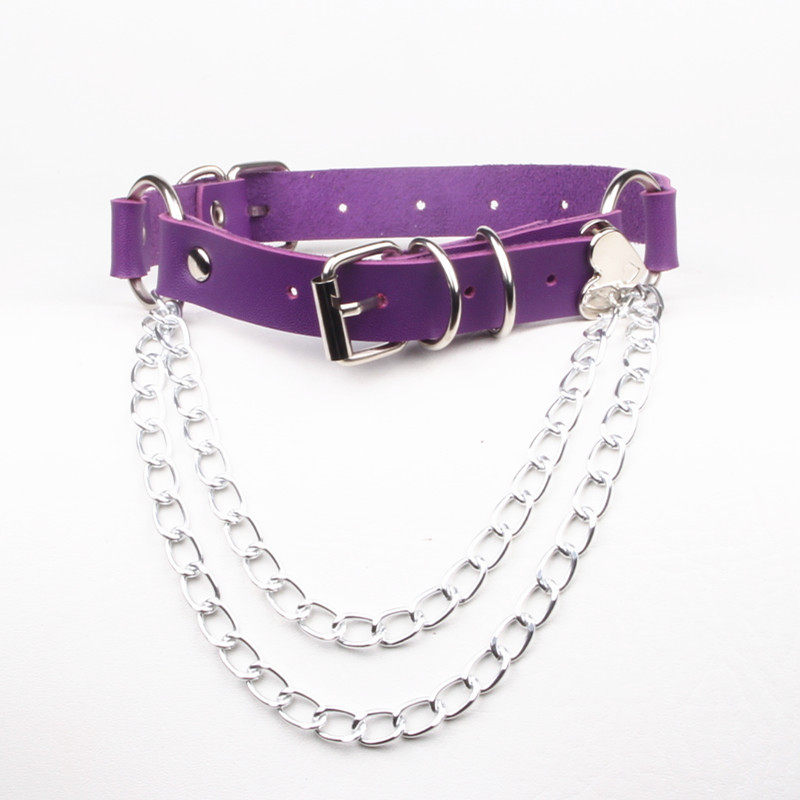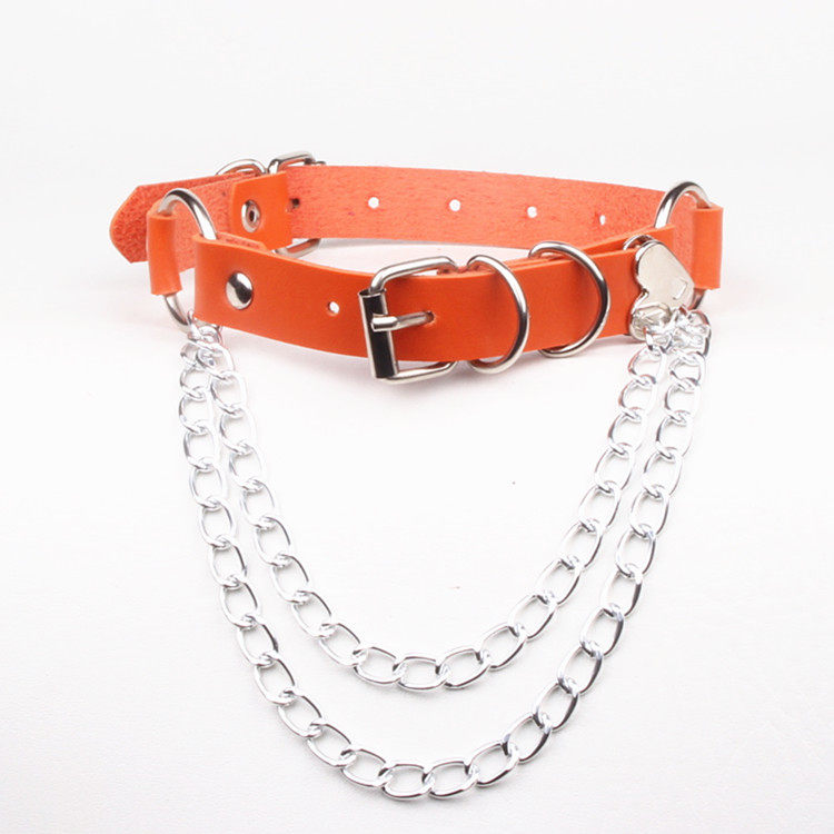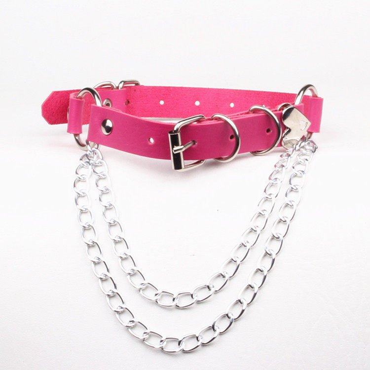 European and American Dark Gothic All-match Lock Peach Heart Love Chain Collar Puleather choker Fashion Neck Strap Clavicle Chain