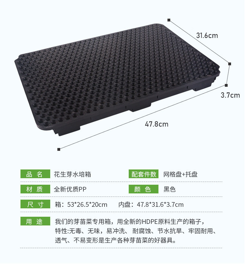 Plastic peanut bud planting box hydroponic box sprout seedling tray black peanut bud plug tray soilless cultivation hydroponic basket