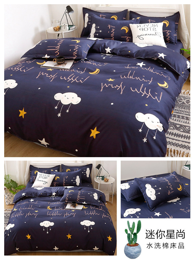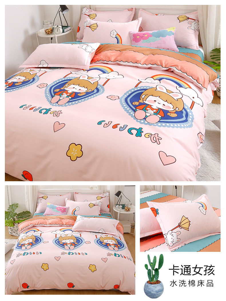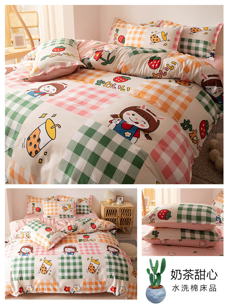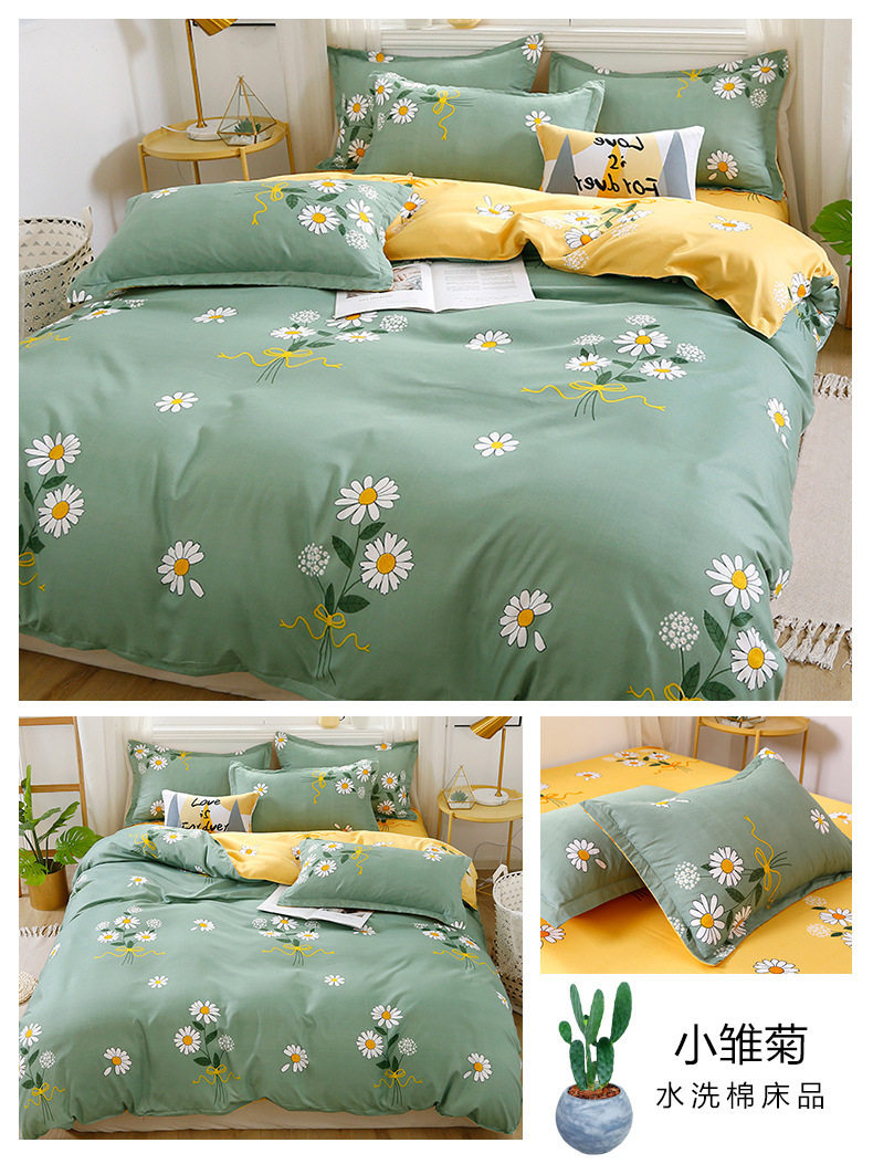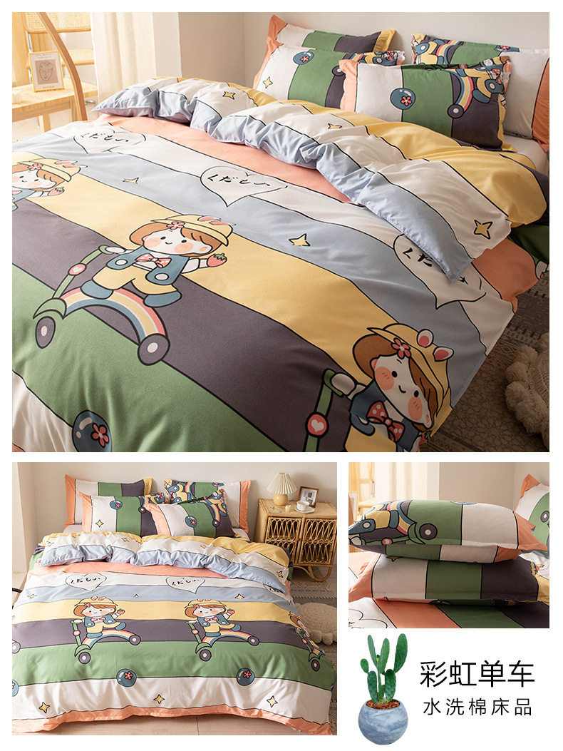 Washed cotton bed four-piece set spring and summer quilt cover sheets student dormitory single three-piece set Nantong home textile wholesale
