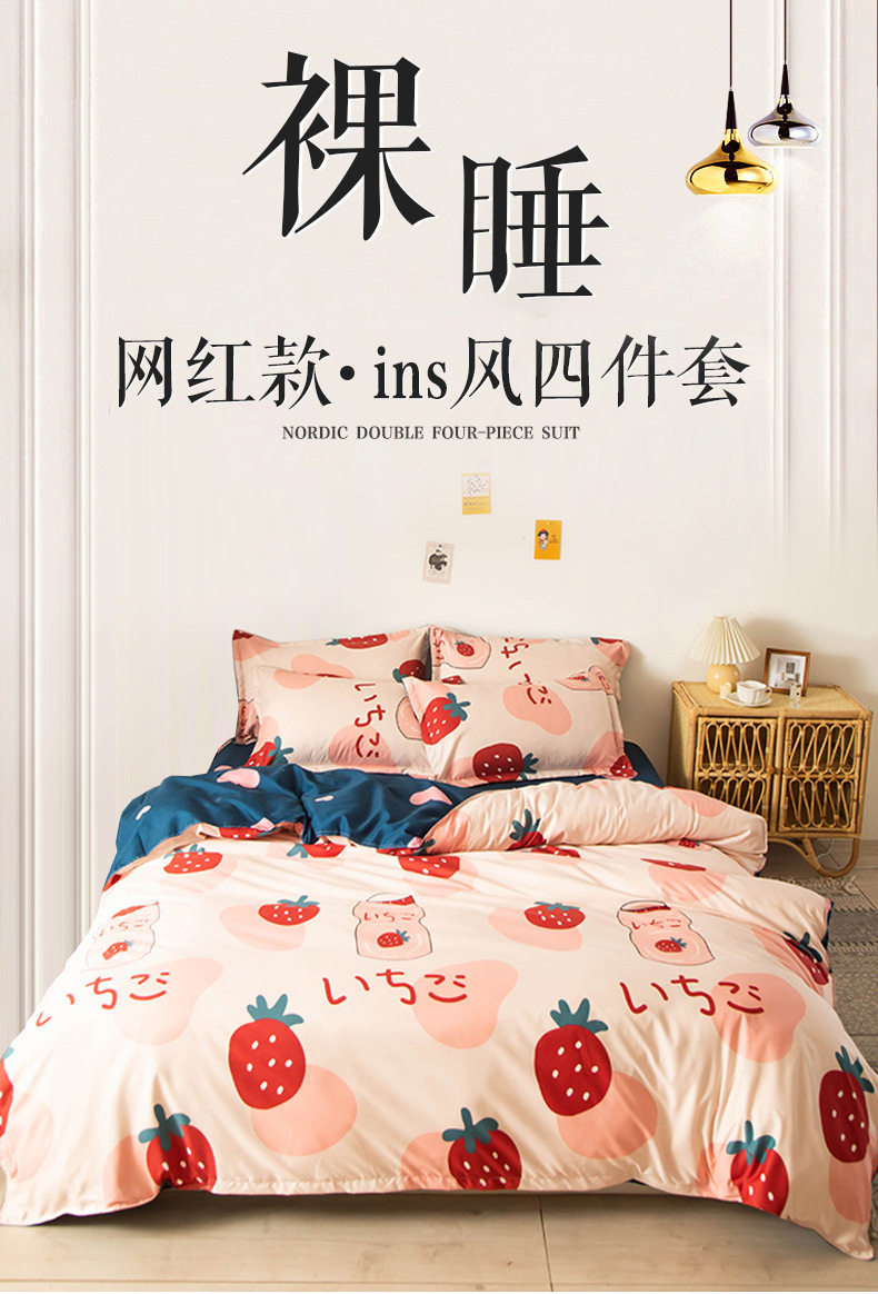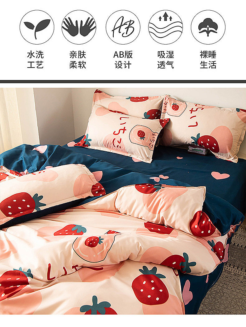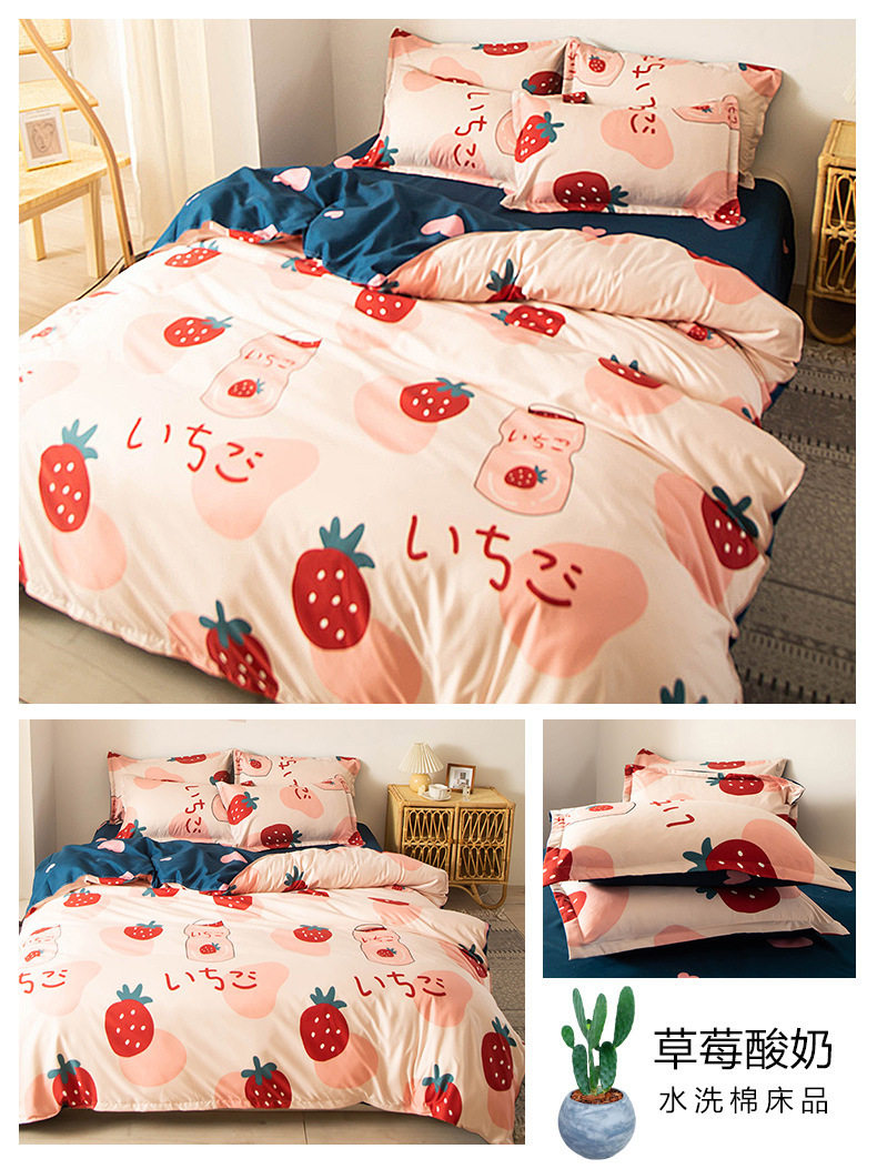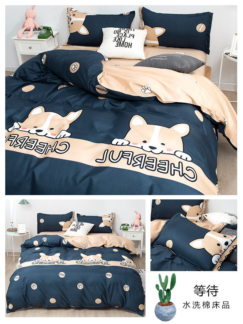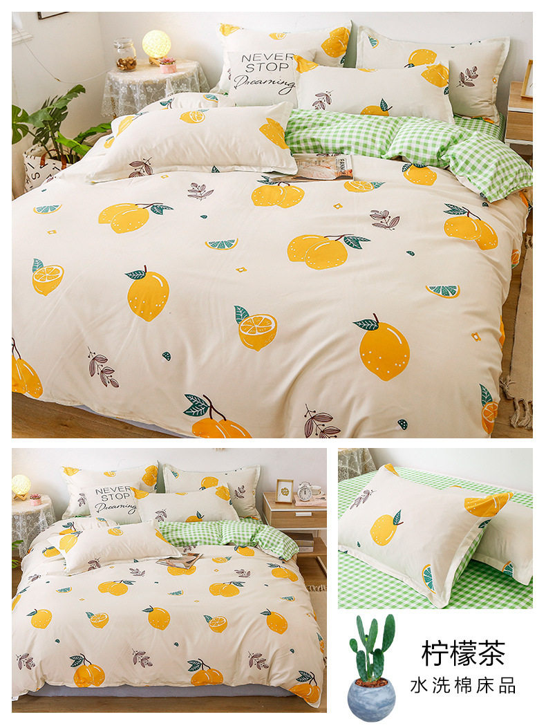 Washed cotton bed four-piece set spring and summer quilt cover sheets student dormitory single three-piece set Nantong home textile wholesale