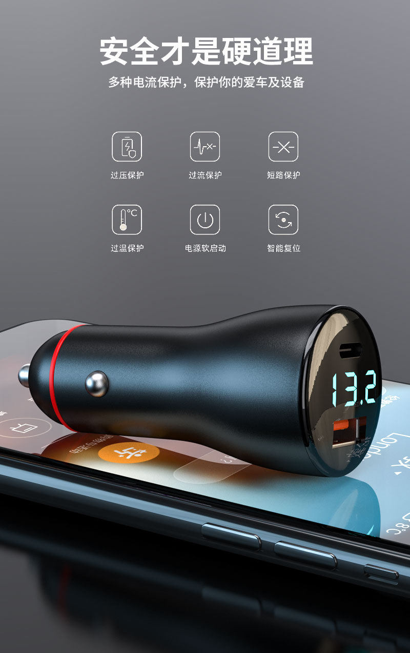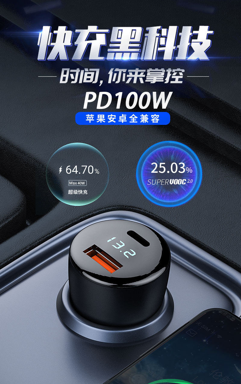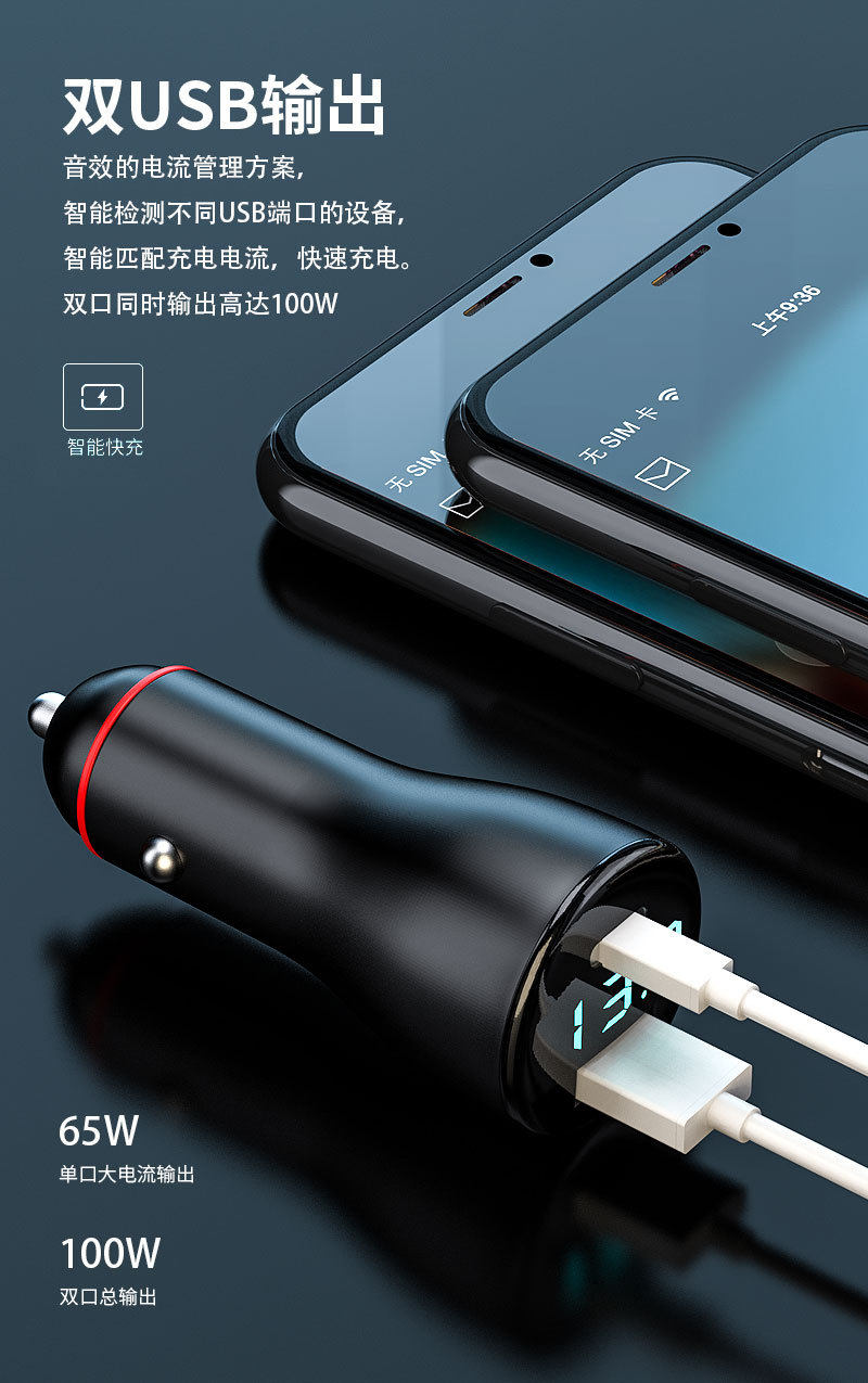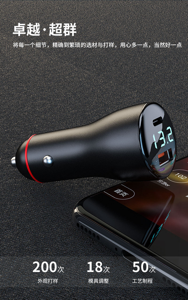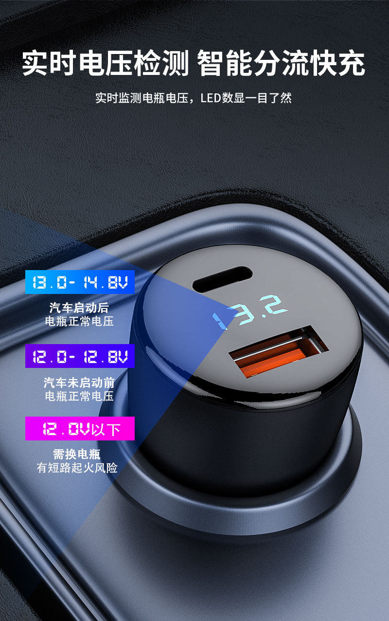 New car charger pd fast charge 65w flash charge one-two multi-function cigarette lighter Apple pps digital display car charger