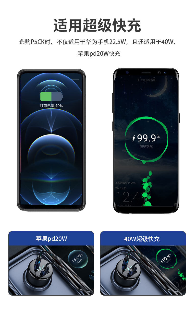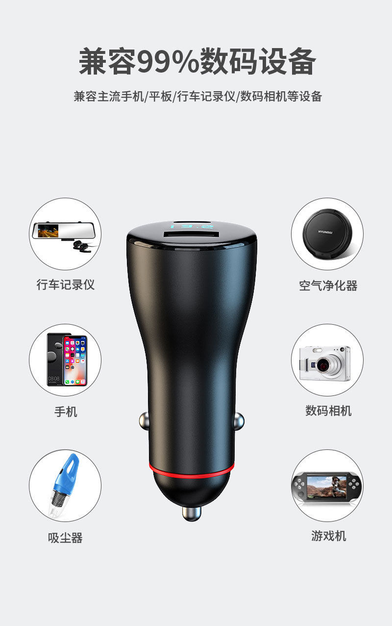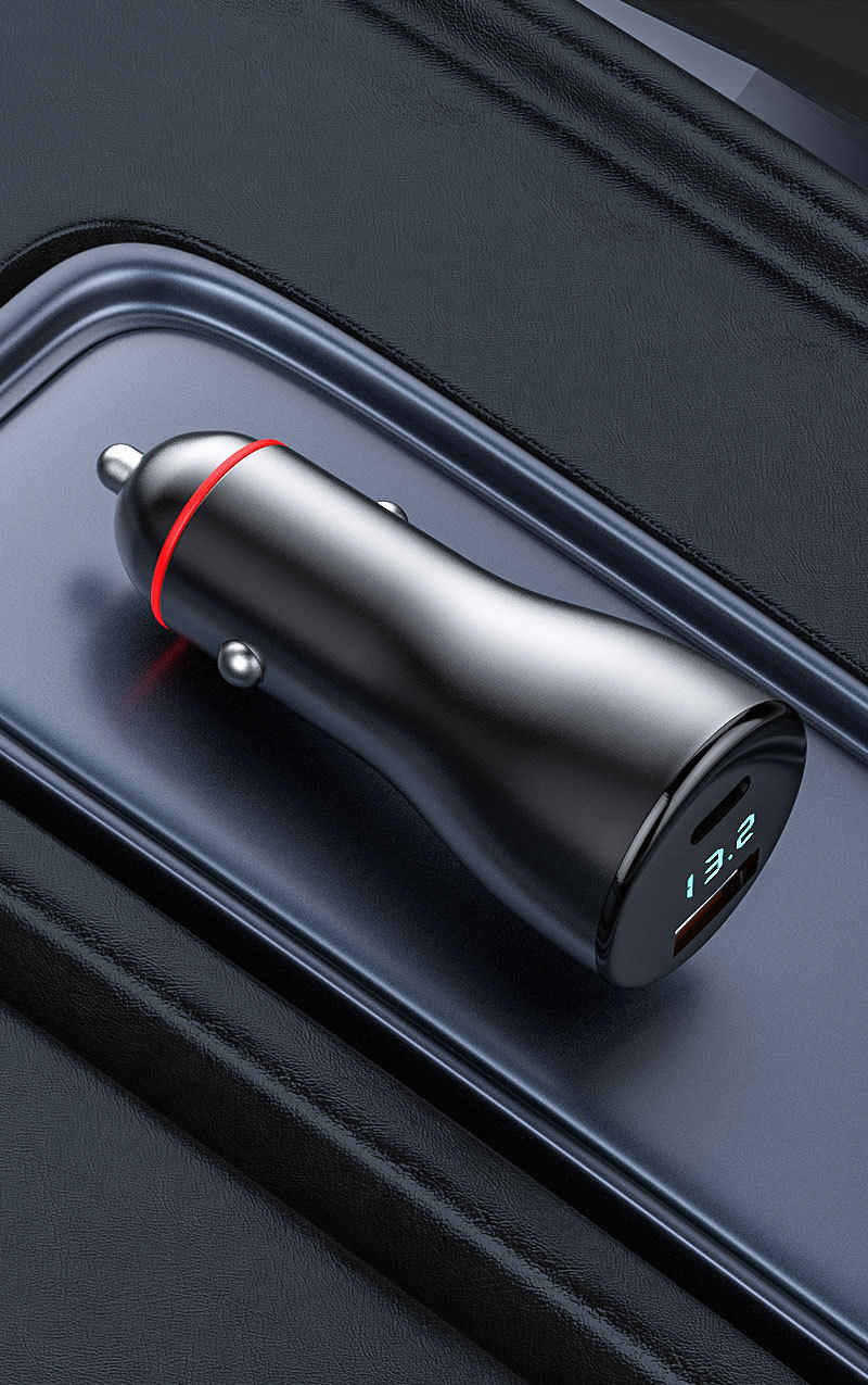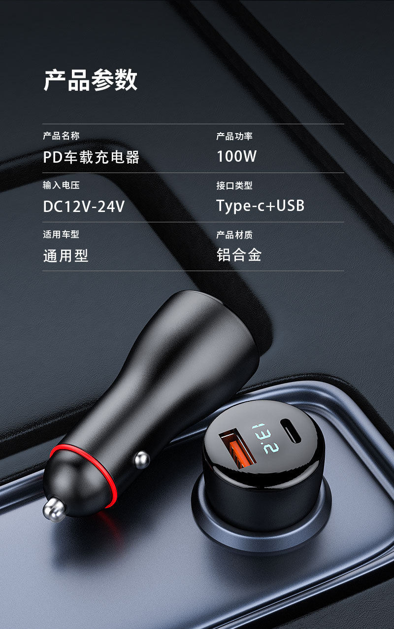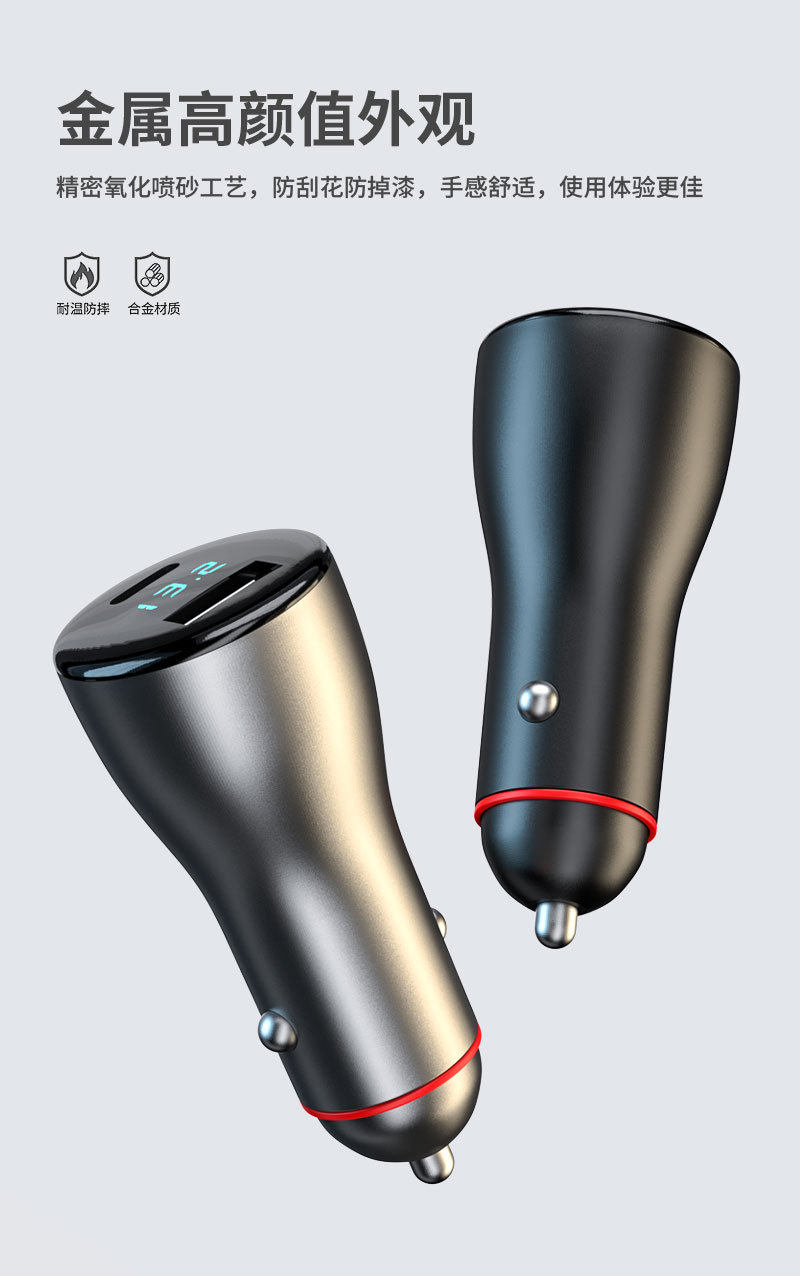 New car charger pd fast charge 65w flash charge one-two multi-function cigarette lighter Apple pps digital display car charger