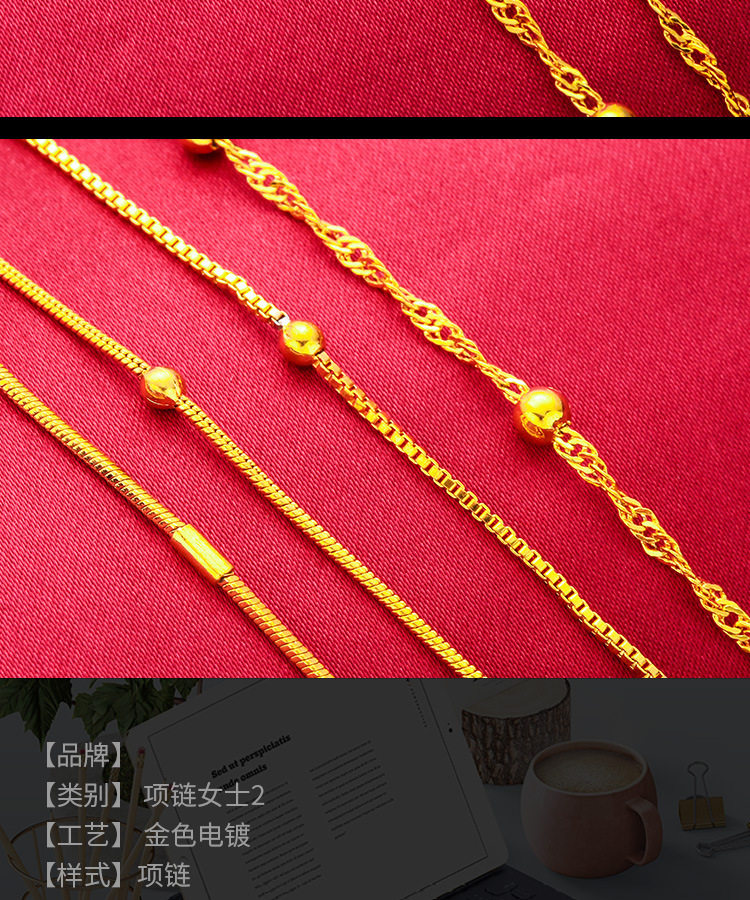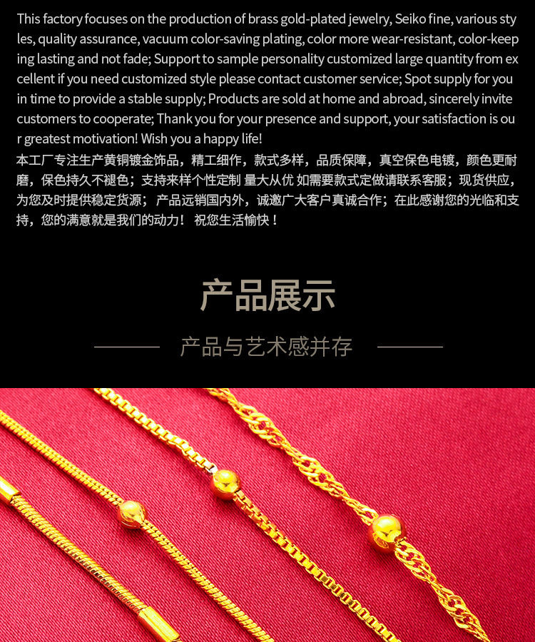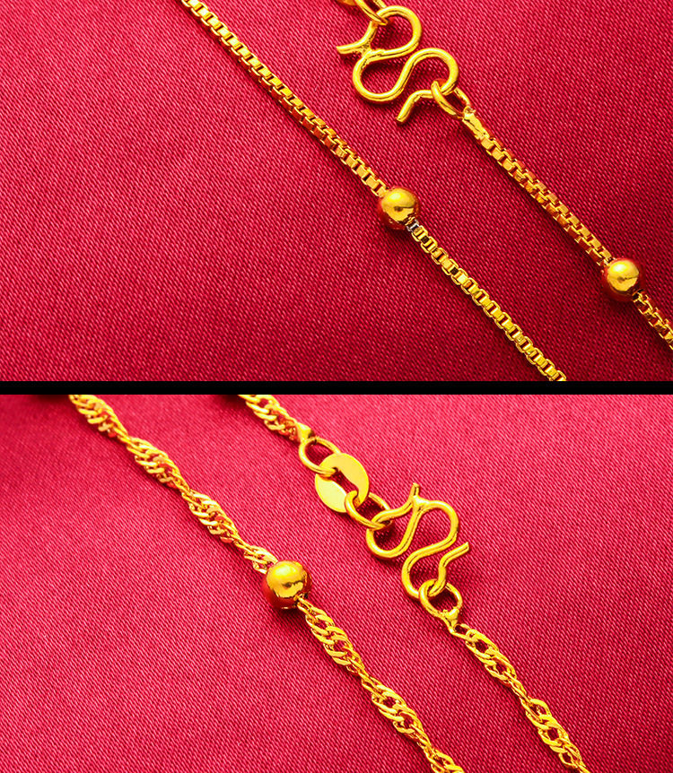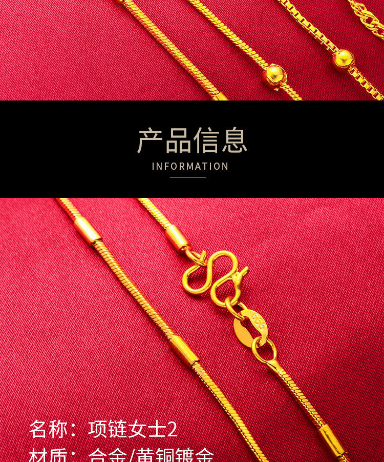 Imitation Gold Vietnam Sand Gold Box Chain Bag Beads Clavicle Chain Copper Plated Gold Chain Bag Beads Box Chain Live Broadcast