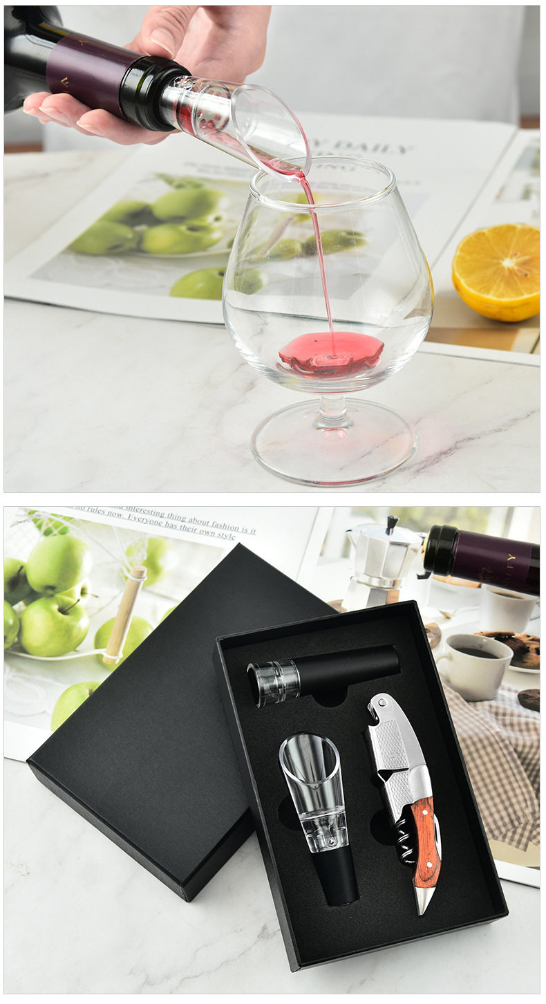 Stainless Steel Large Reticulated Red Wine Bottle Opener Red Wine Pour Vacuum Stopper Bottle Opener Three Piece Set Wholesale