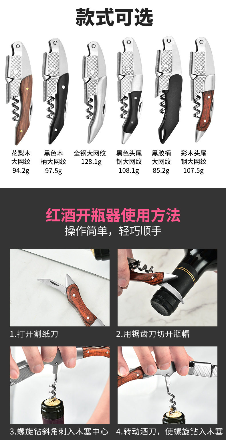 | Color | Color Wood head and tail steel large mesh,Black head and tail steel large mesh,Black rubber handle large mesh,All-steel large mesh,Black wooden handle large mesh,Rosewood large mesh,Color Wood head and tail steel large mesh + small white box,Black head and tail steel large mesh + small white box,Black rubber handle large mesh + small white box,All-steel large mesh + small white box,Black wooden handle large mesh + small white box,Rosewood large mesh + small white box,Color Wood head and tail steel large mesh + leather case,Black head and tail steel large mesh + leather case,Black rubber handle large mesh + leather case,All-steel large mesh + leather case,Black wooden handle large mesh + leather case,Rosewood large mesh + leather case,Color Wood head and tail steel large mesh + Black gift box,Black head and tail steel large mesh + Black gift box,Black rubber handle large mesh + Black gift box,All-steel large mesh + Black gift box,Black wooden handle large mesh + Black gift box,Rosewood large mesh + Black gift box,Color Wood head and tail steel mesh + wine knife + leather gift box,Black head and tail steel large mesh + wine knife + leather case gift box,Black rubber handle large mesh + wine knife + leather case gift box,All-steel large mesh + wine knife + leather case gift box,Black wooden handle large mesh + wine knife + leather case gift box,Huali Wood large mesh + wine knife + leather case gift box,Color Wood head and tail steel large mesh + wine knife + vacuum plug two-piece set,Black head and tail steel large mesh + wine knife + vacuum plug two-piece set,Black rubber handle large mesh + wine knife + vacuum plug two-piece set,All-steel large mesh + wine knife + vacuum plug two-piece set,Black wooden handle large mesh + wine knife + vacuum plug two-piece set,Rosewood large mesh + wine knife + vacuum plug two-piece set,Colorful Wood head and tail steel large mesh + wine knife + vacuum plug + wine pourer 3-piece set,Black head and tail steel large mesh + wine knife + vacuum plug + wine pourer 3-piece set,Black rubber handle large mesh + wine knife + vacuum plug + wine pourer 3-piece set,All-steel large mesh + wine knife + vacuum plug + wine pourer 3-piece set,Black wooden handle large mesh + wine knife + vacuum plug + Wine Pender 3-piece set,Rosewood large mesh + wine knife + vacuum plug + wine pourer 3-piece set |