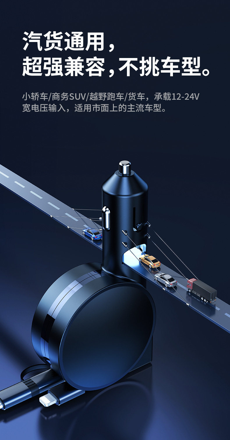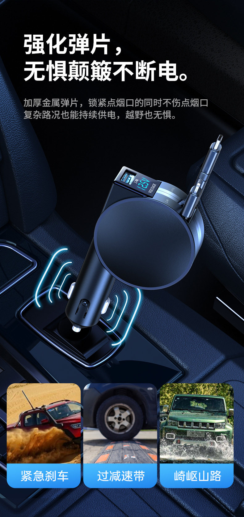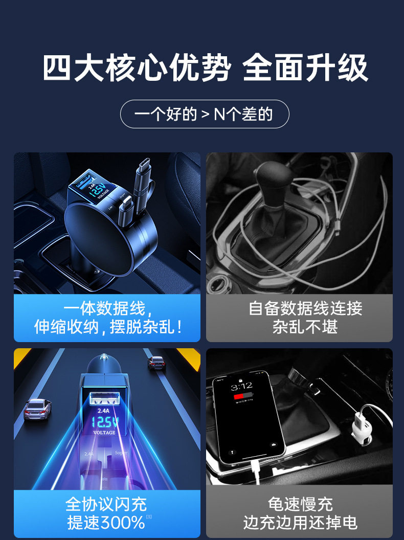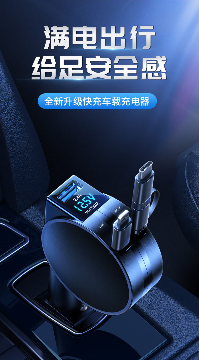 Telescopic super fast charging 60W digital display car charger fast charging multifunctional three-in-one car cigarette lighter Universal