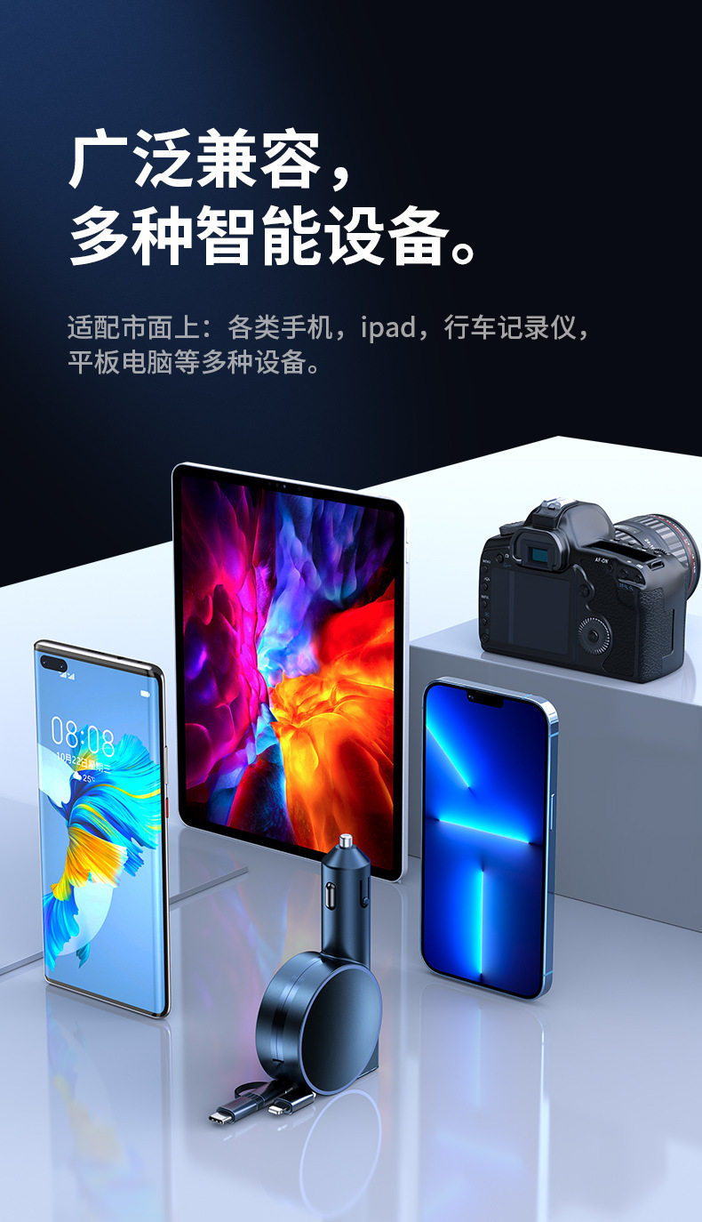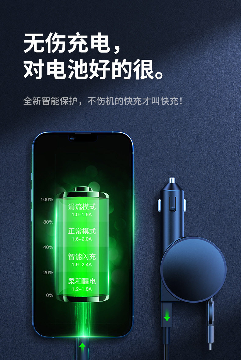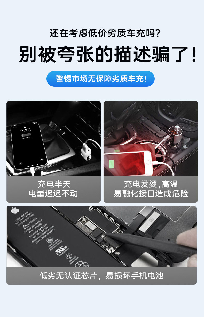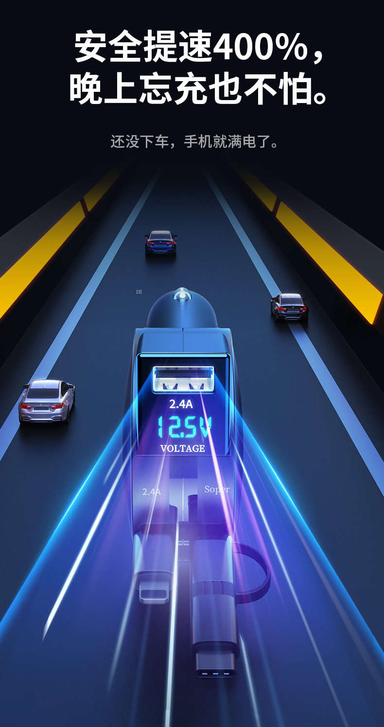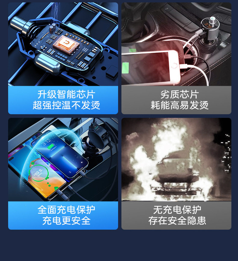 Telescopic super fast charging 60W digital display car charger fast charging multifunctional three-in-one car cigarette lighter Universal