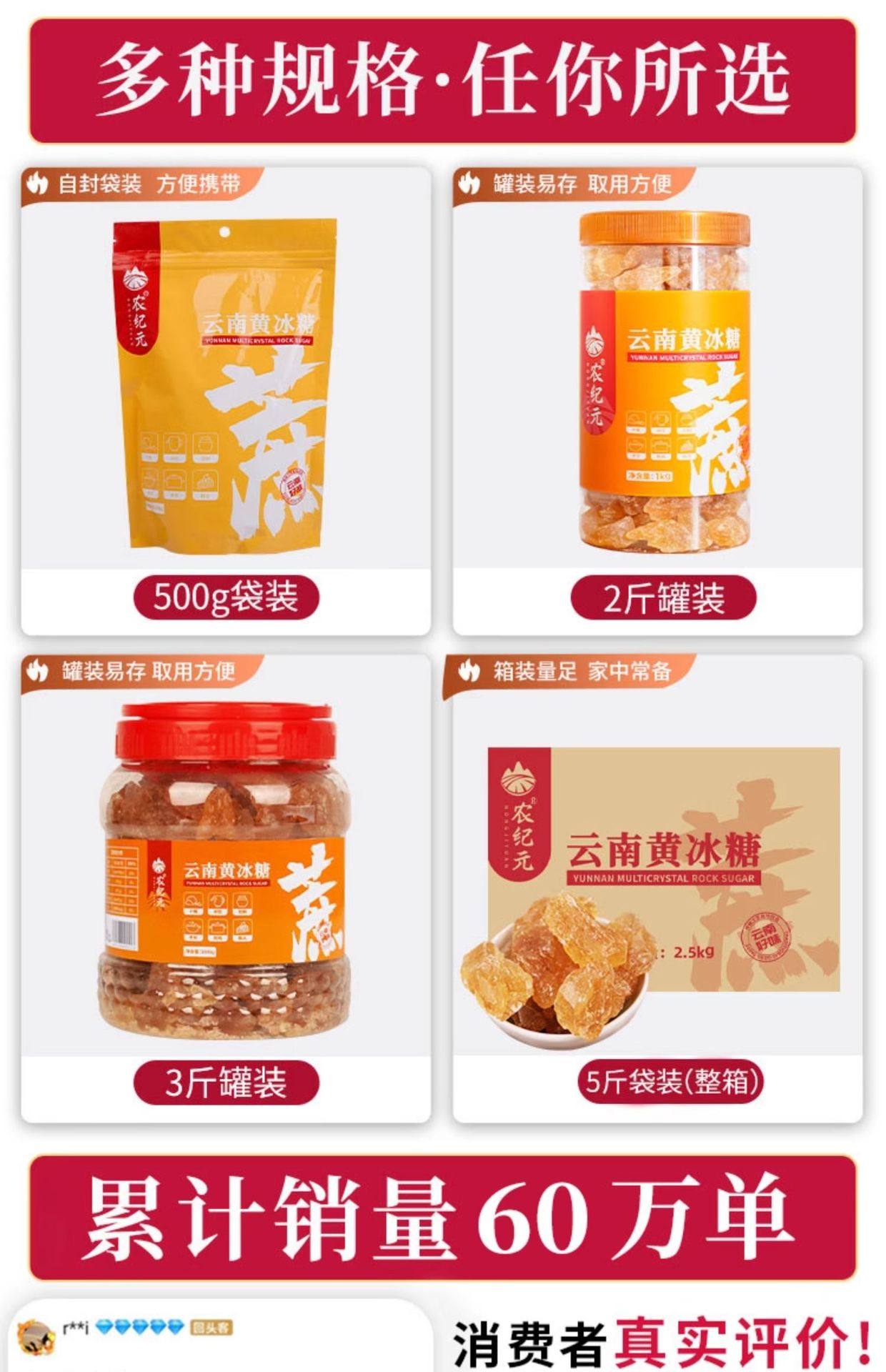 Yellow Rock Sugar 2.5kg Bulk Yunnan Specialty Authentic Handmade Sugar Cane Polycrystalline Small Capsules Rock Sugar Old Rock Sugar Small Package