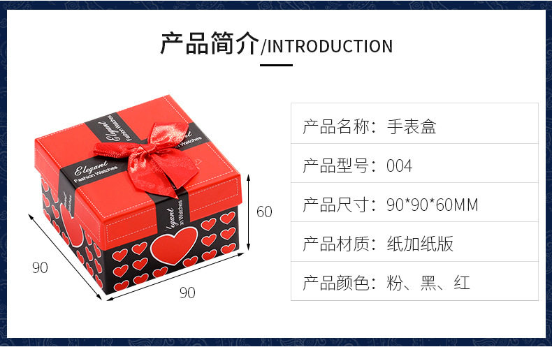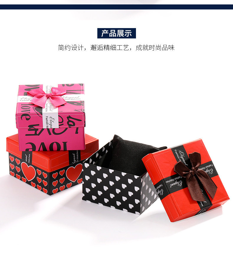 Internet red paper bracelet box gift box DIY heart bow watch box wholesale heaven and earth cover watch box