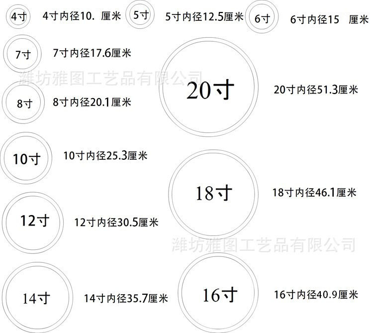 Inner frame size 4 inches (sheet nail),4-inch dual-purpose hanging pendulum (sheet nail),5 inches (dial button),5 inch hanging pendulum dual-purpose (dial buckle),6 inches (dial button),6 inch hanging pendulum dual-purpose,7 inches (dial button),7 inch hanging pendulum dual-purpose,8 inches (dial button),8 inch hanging pendulum dual-purpose,9 inches (dial button),9 inch hanging pendulum dual-purpose,10 inches (dial button),10 inch hanging pendulum dual-purpose,12 inches (dial button),12 inch hanging pendulum dual-purpose,14 inches (dial button),16 inches (dial buckle),18 inches (dial button),20 inches (dial button),Diameter 38,Diameter 50,Diameter 60,Diameter 70,Diameter 80,Diameter 100,10.5 inches (inner diameter 26.3)