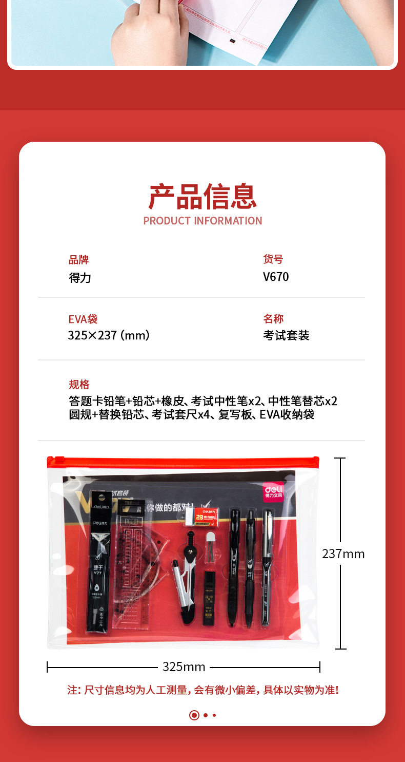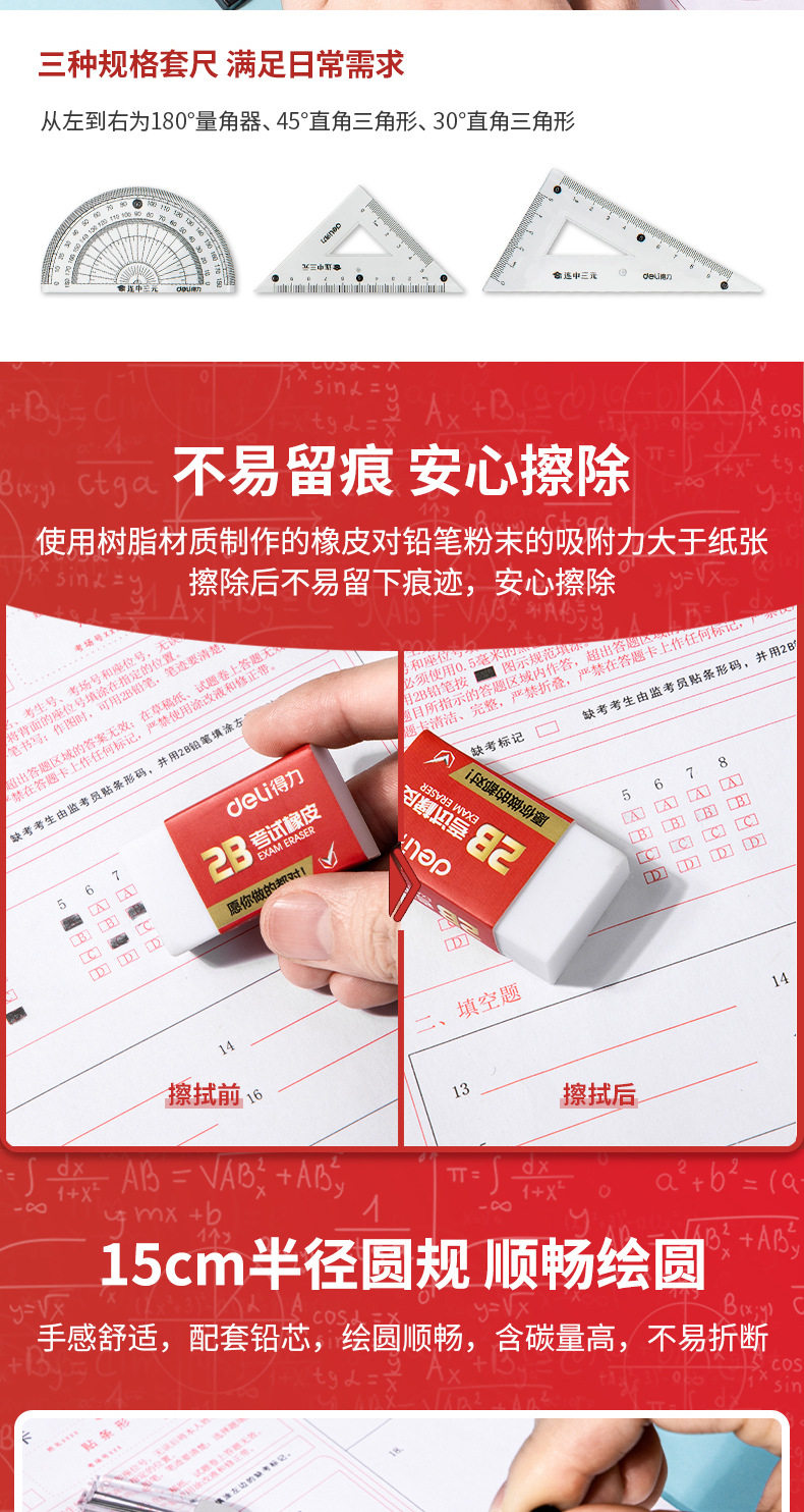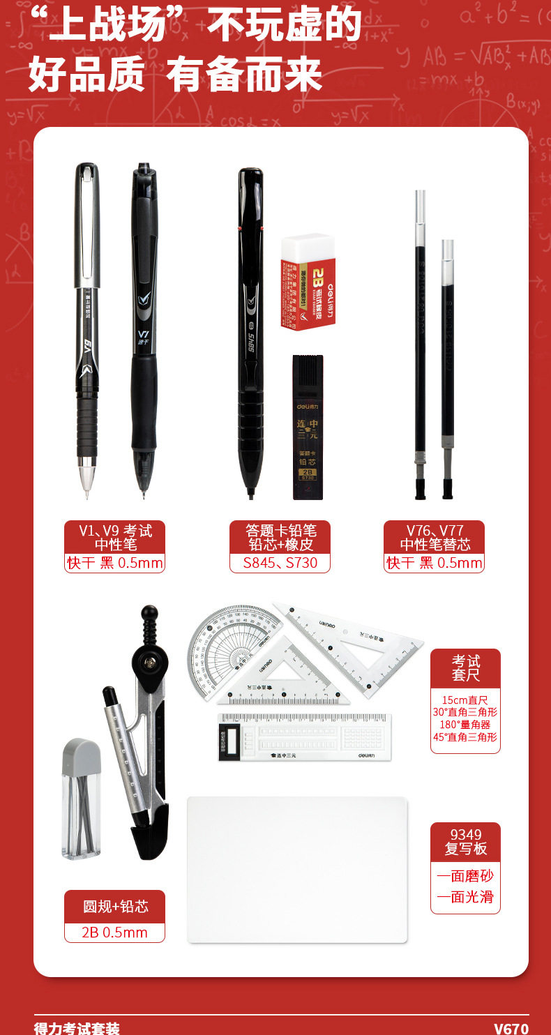 Deli V670 consecutive High School three yuan exam suit answer card ruler compasses suit high school entrance examination college entrance examination exam pack