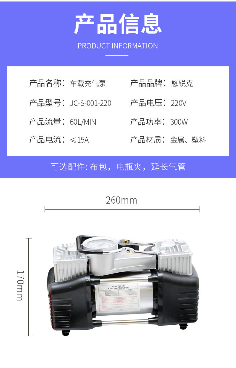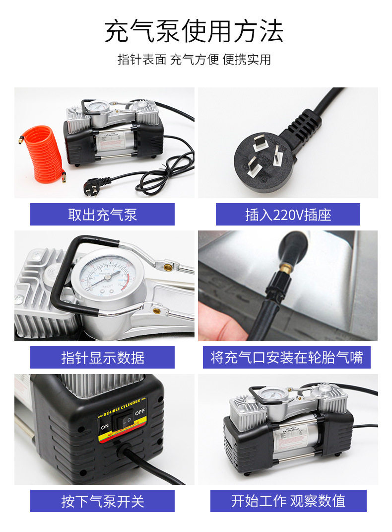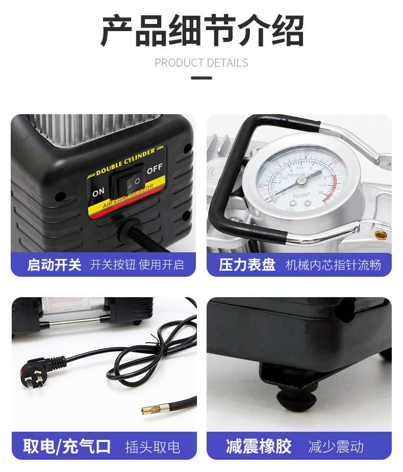Manufacturers supply car air pump 220V GB plug double cylinder air pump tire metal air pump