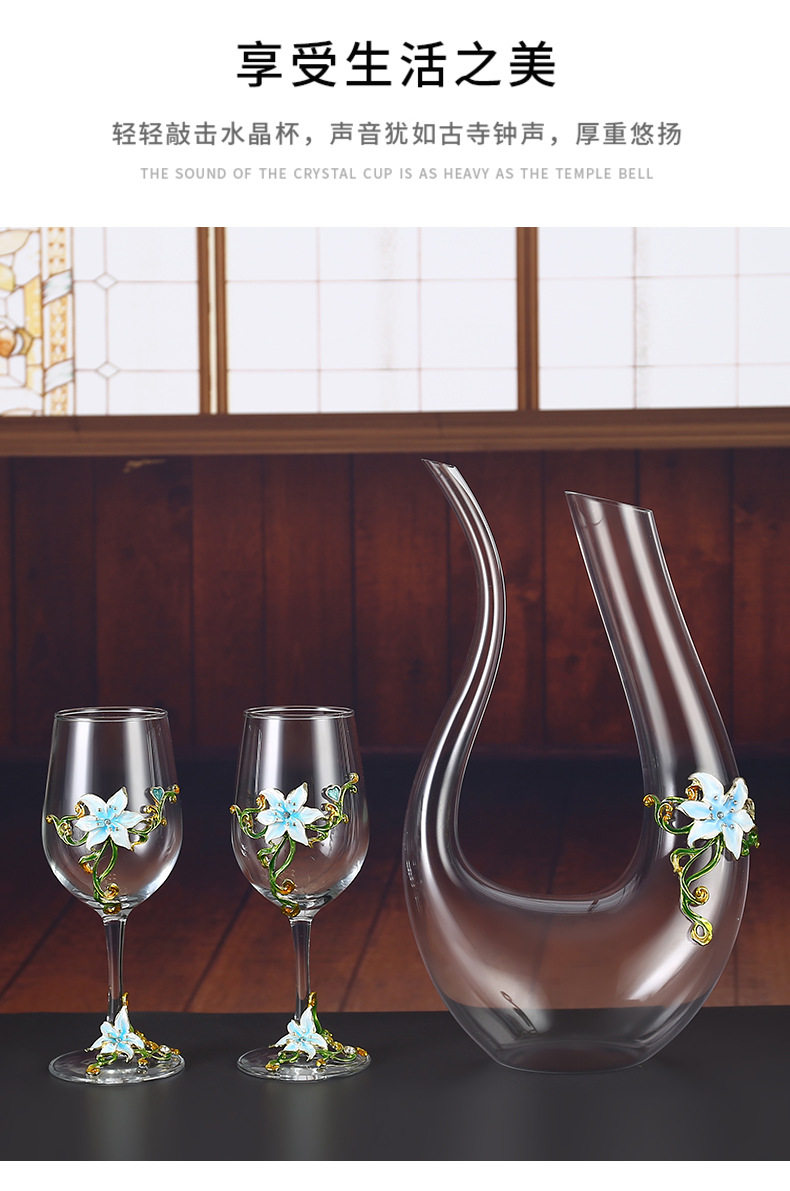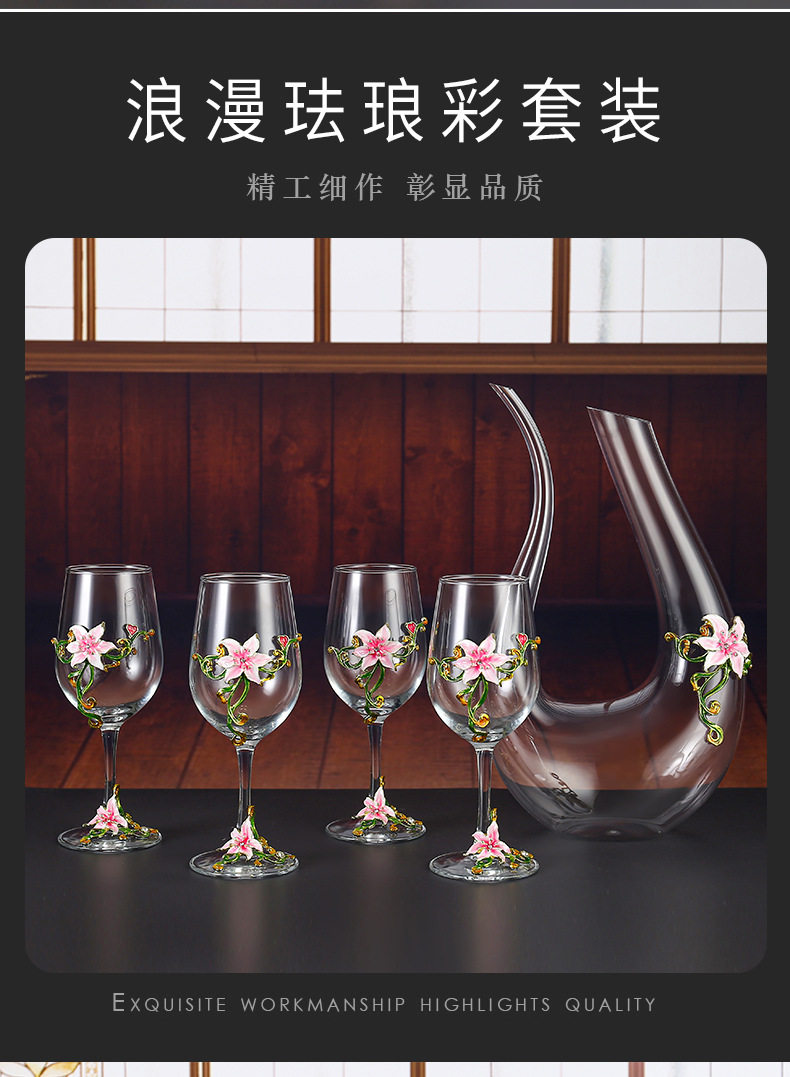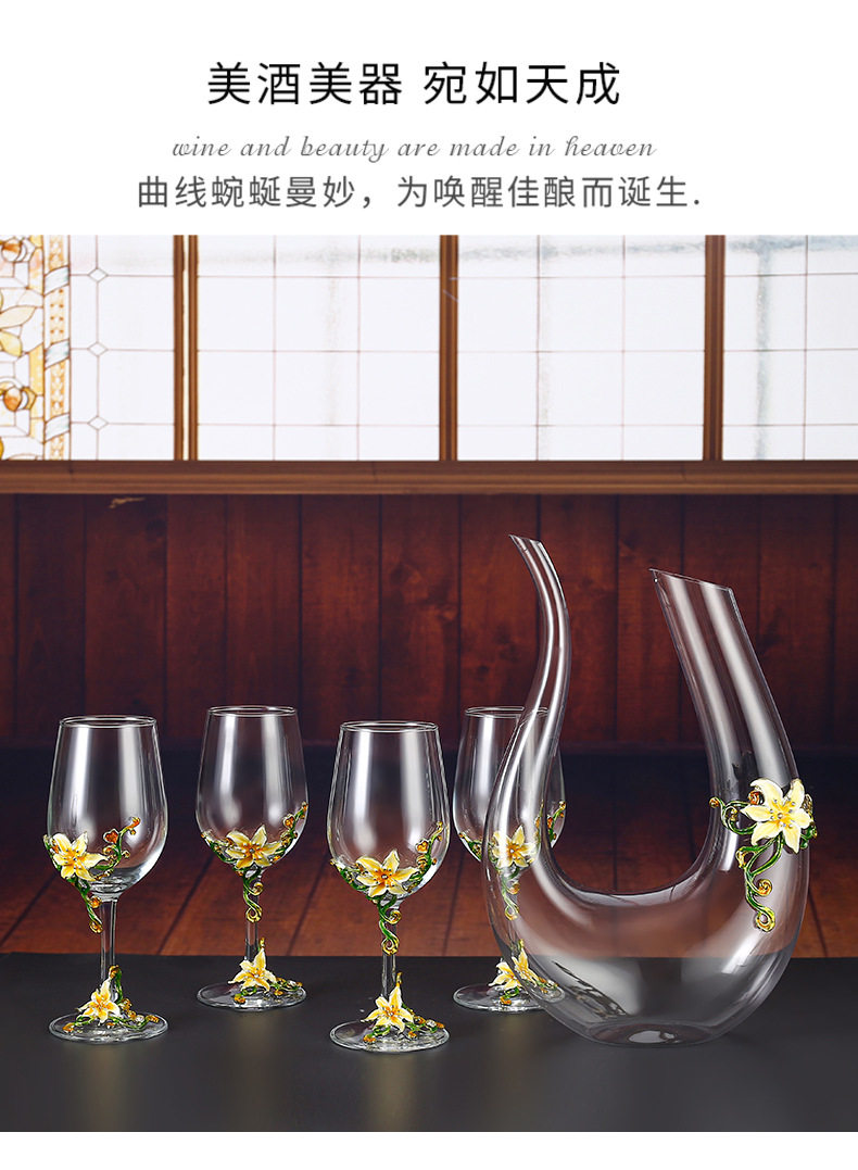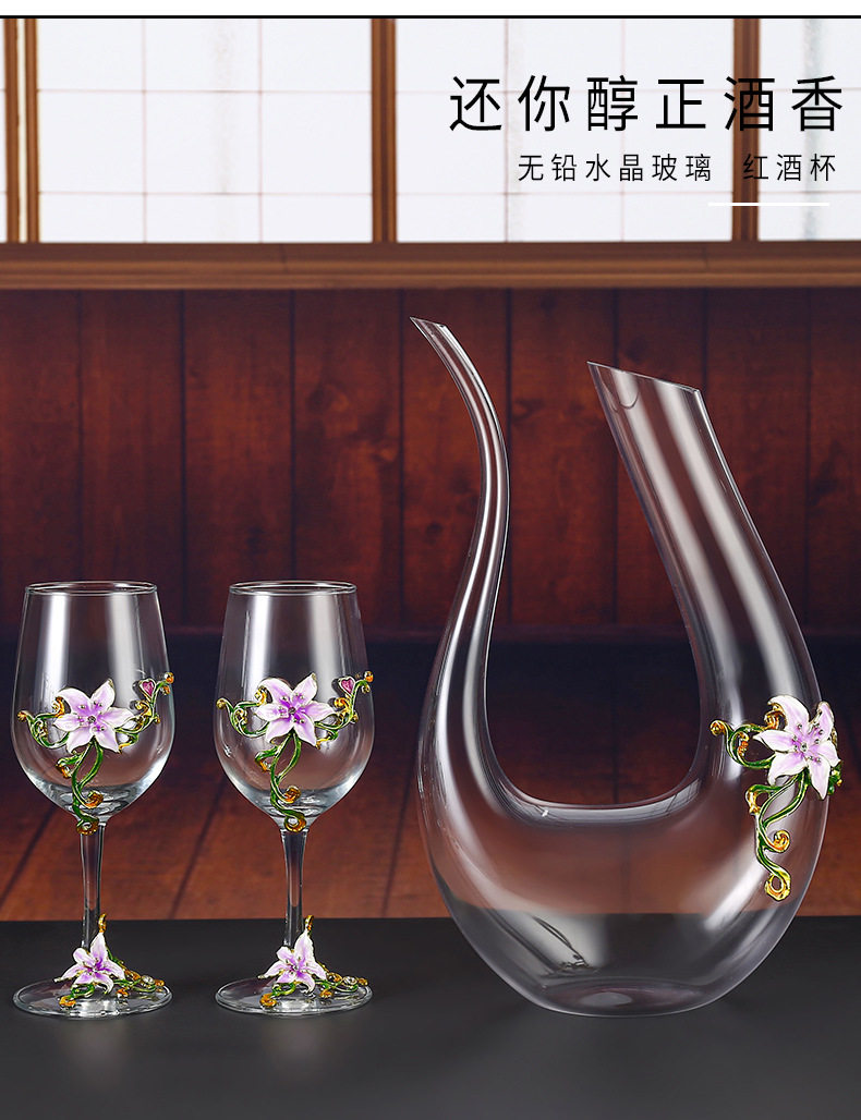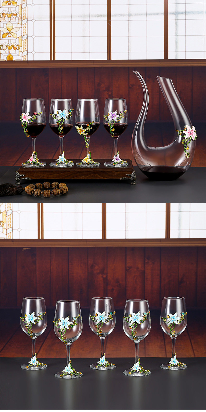 Factory Direct Sales European-Style Lily Enamel Red Wine Glass Crystal Glass Goblet Wine Glass Decanter Set