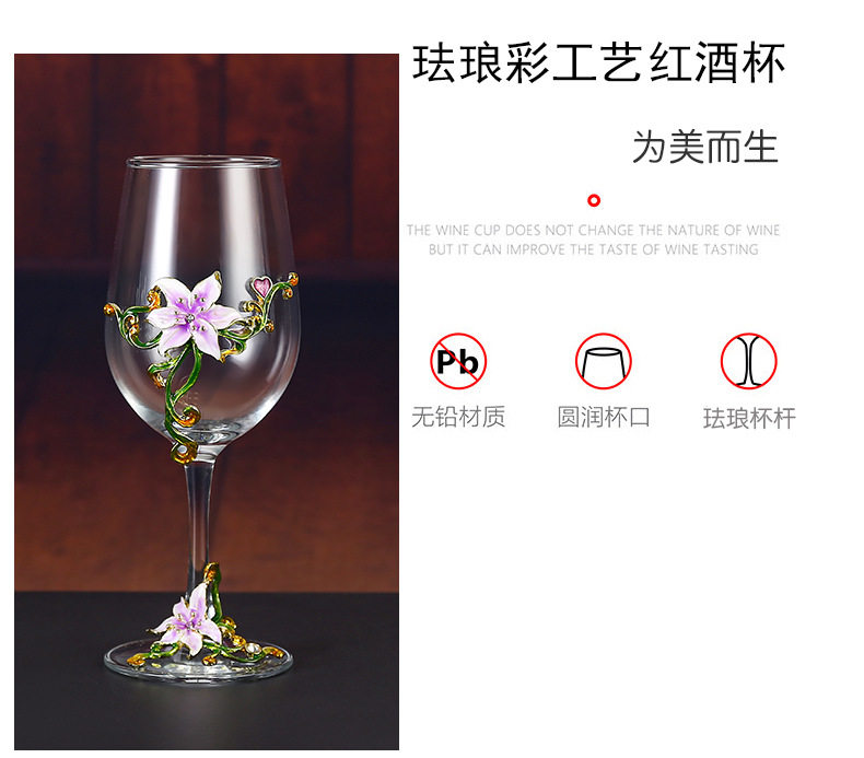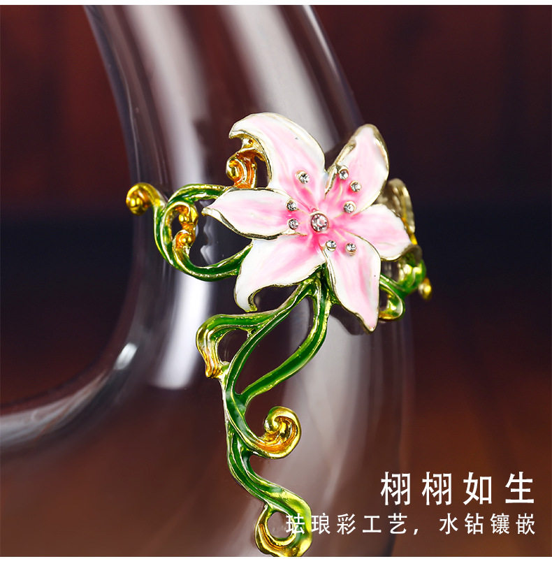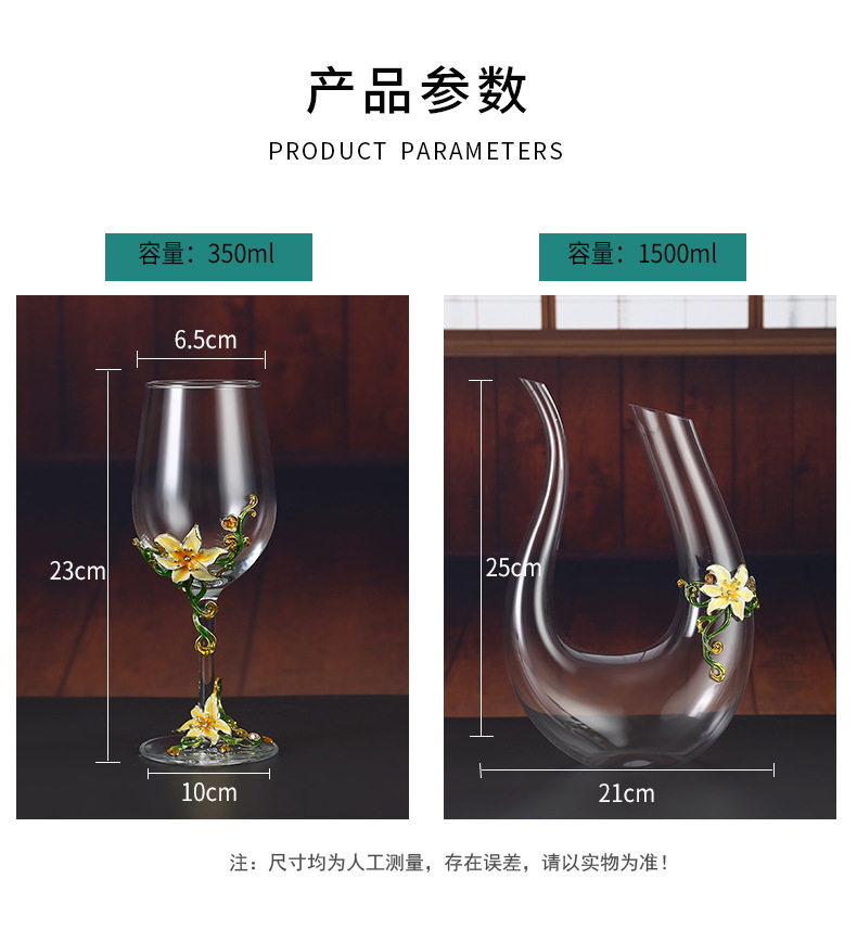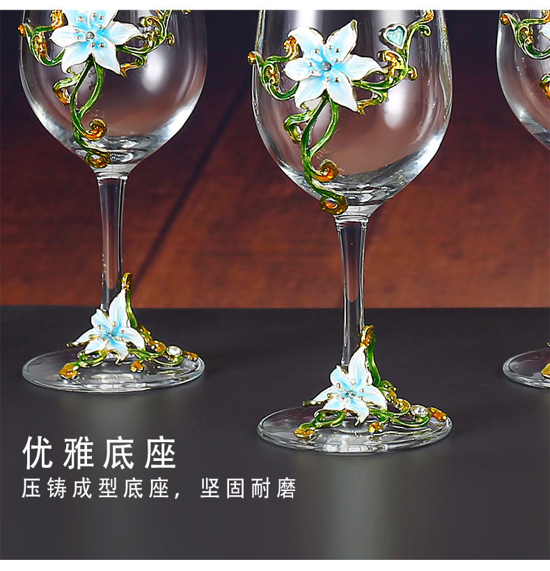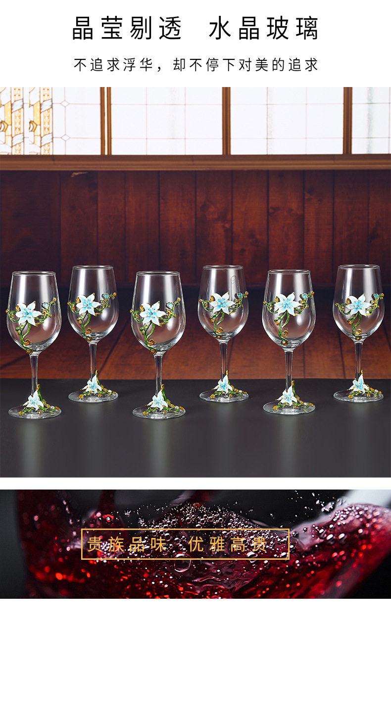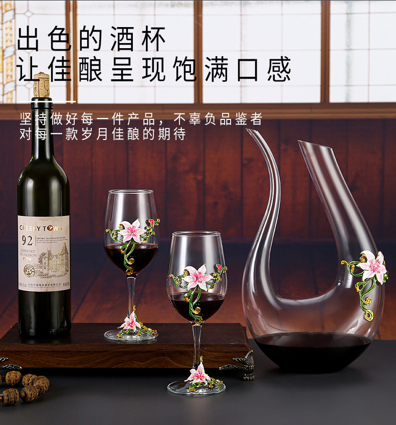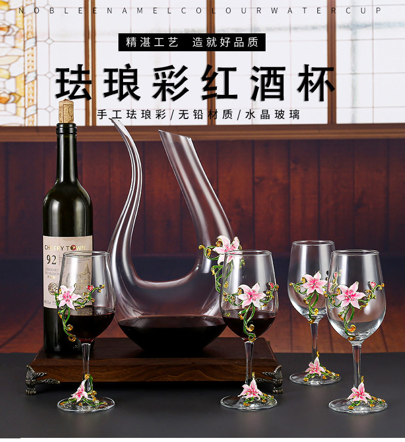 Factory Direct Sales European-Style Lily Enamel Red Wine Glass Crystal Glass Goblet Wine Glass Decanter Set
