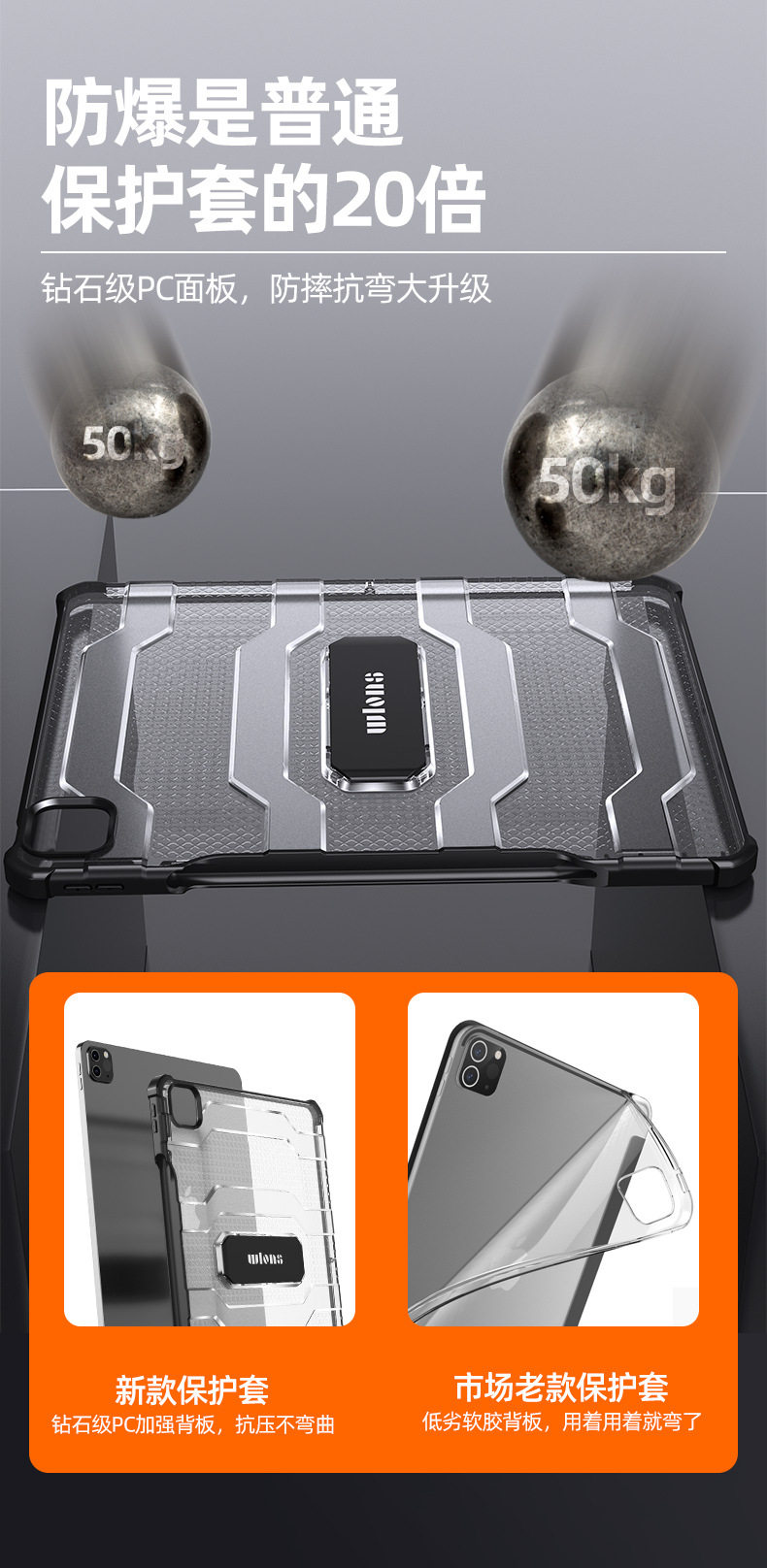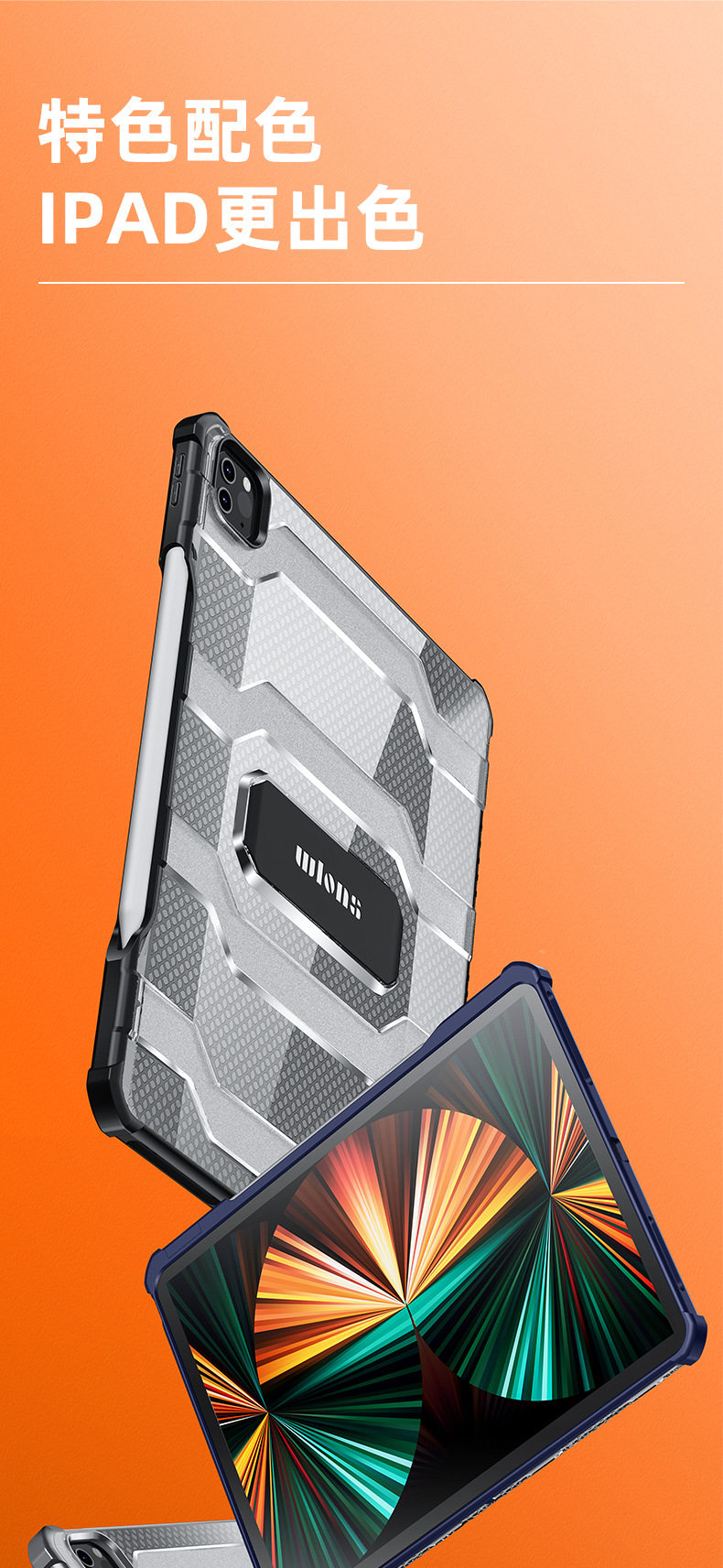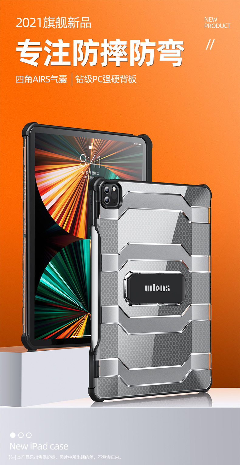 Wlons Vilos Is Suitable for Apple Ipadpro Protective Case with Pen Slot Mini6 Translucent Anti-Fall Bracket Shell