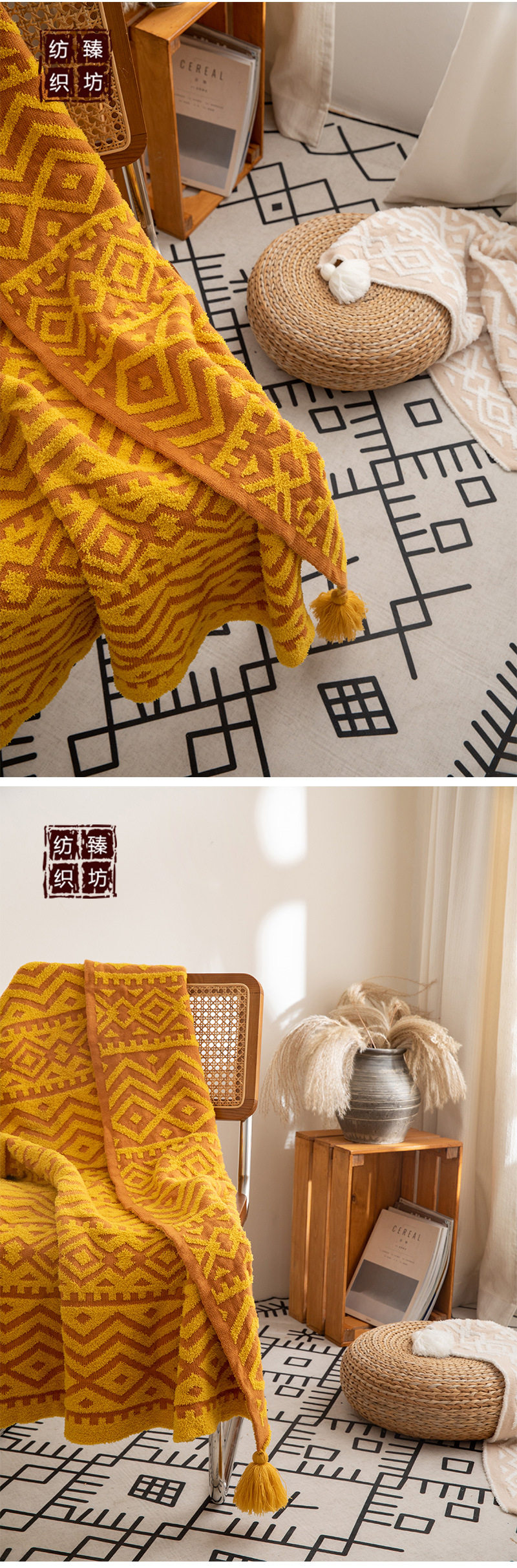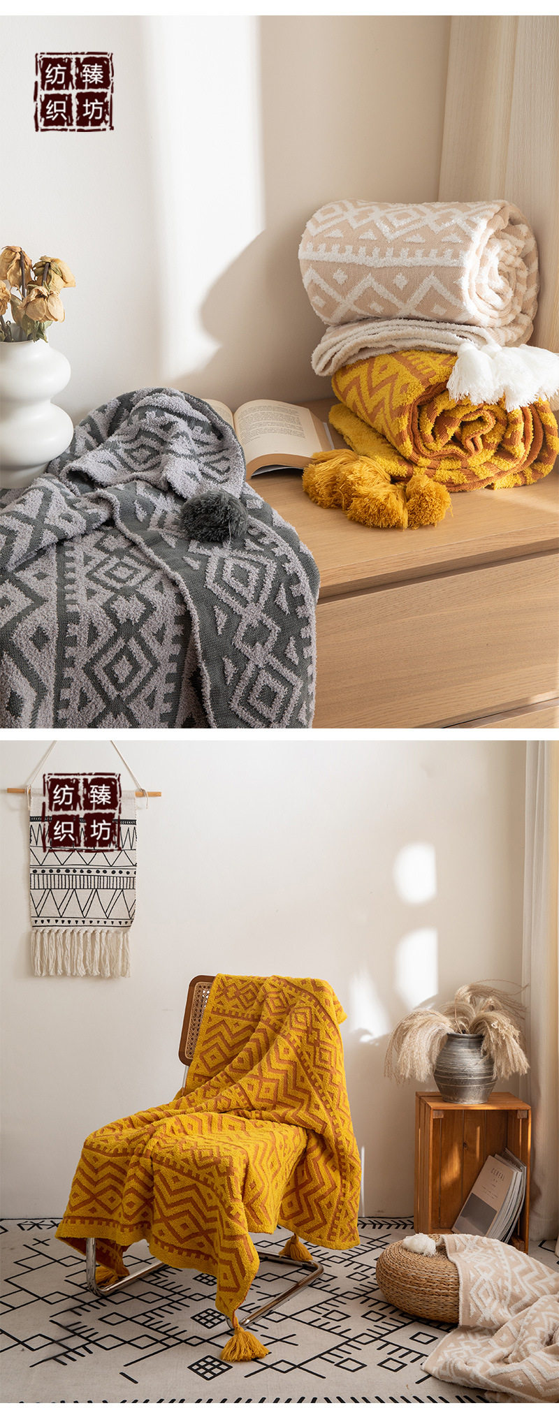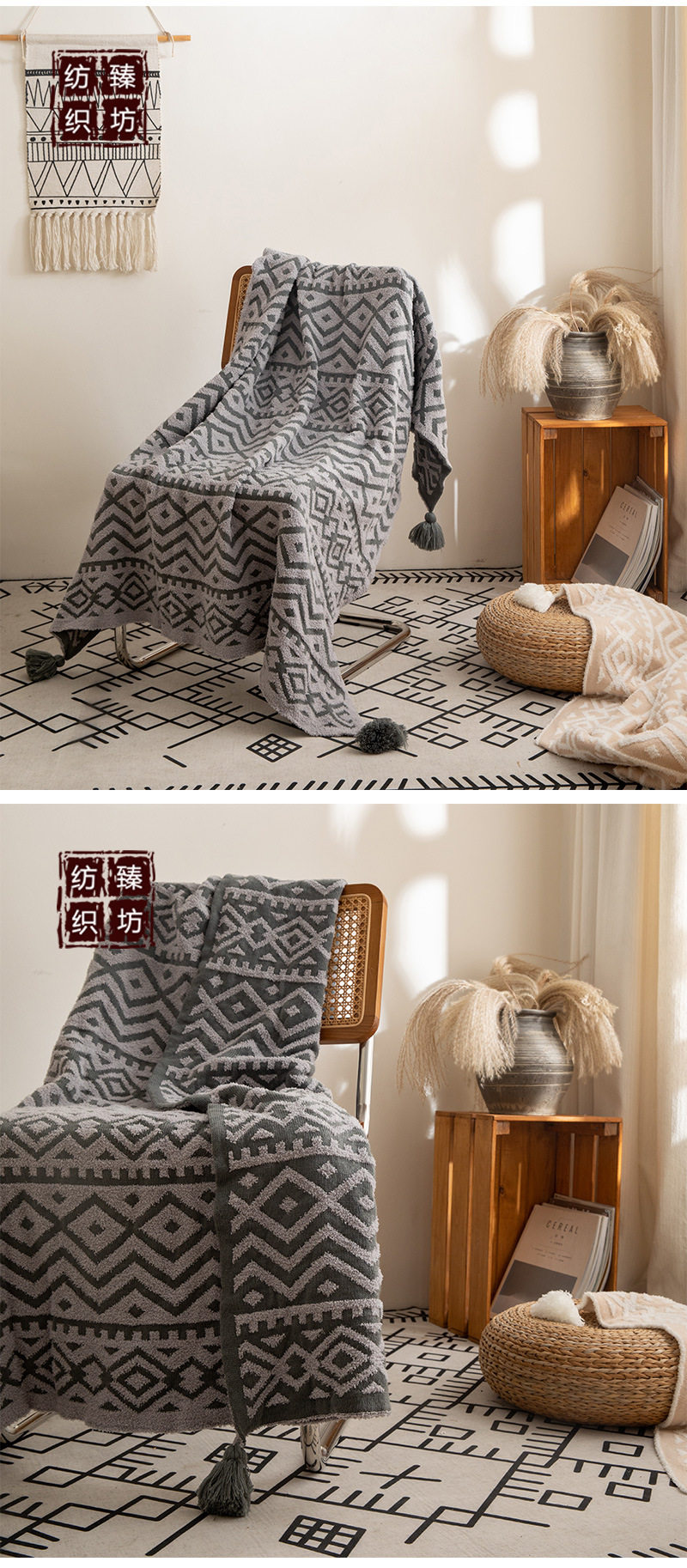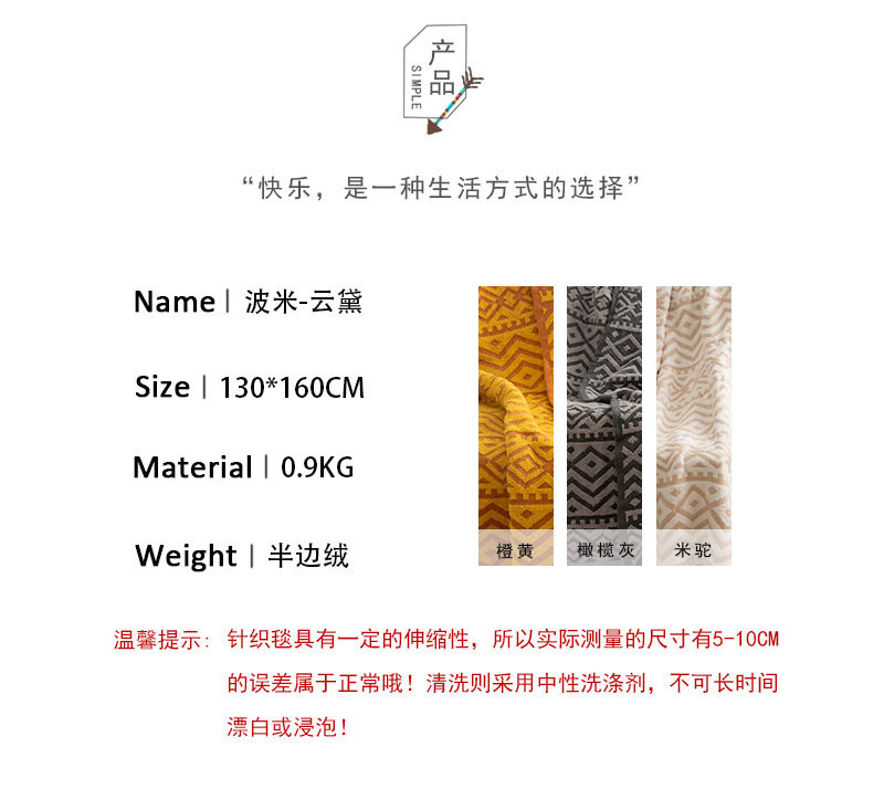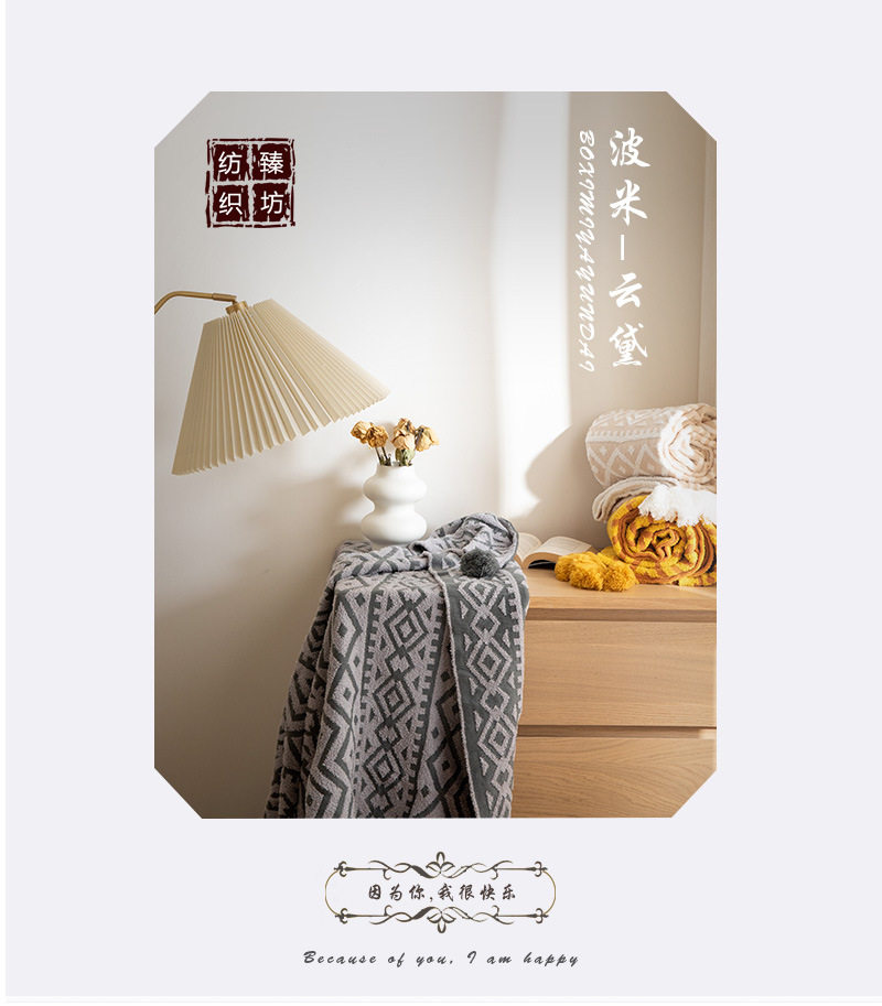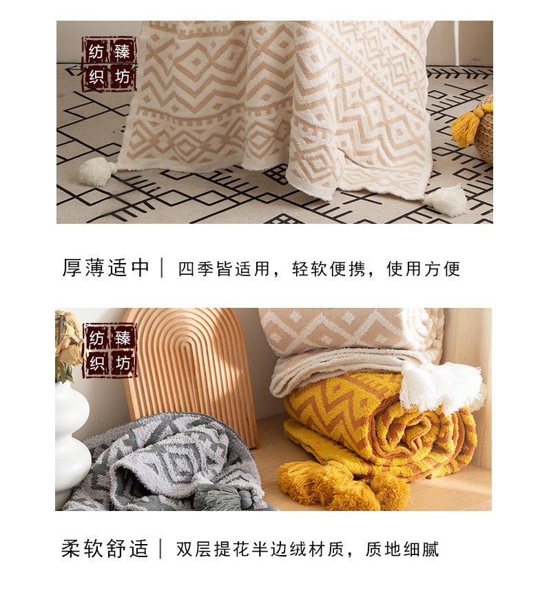 Bohemian half-side velvet knitted blanket bed blanket sofa blanket office lunch break blanket photo props