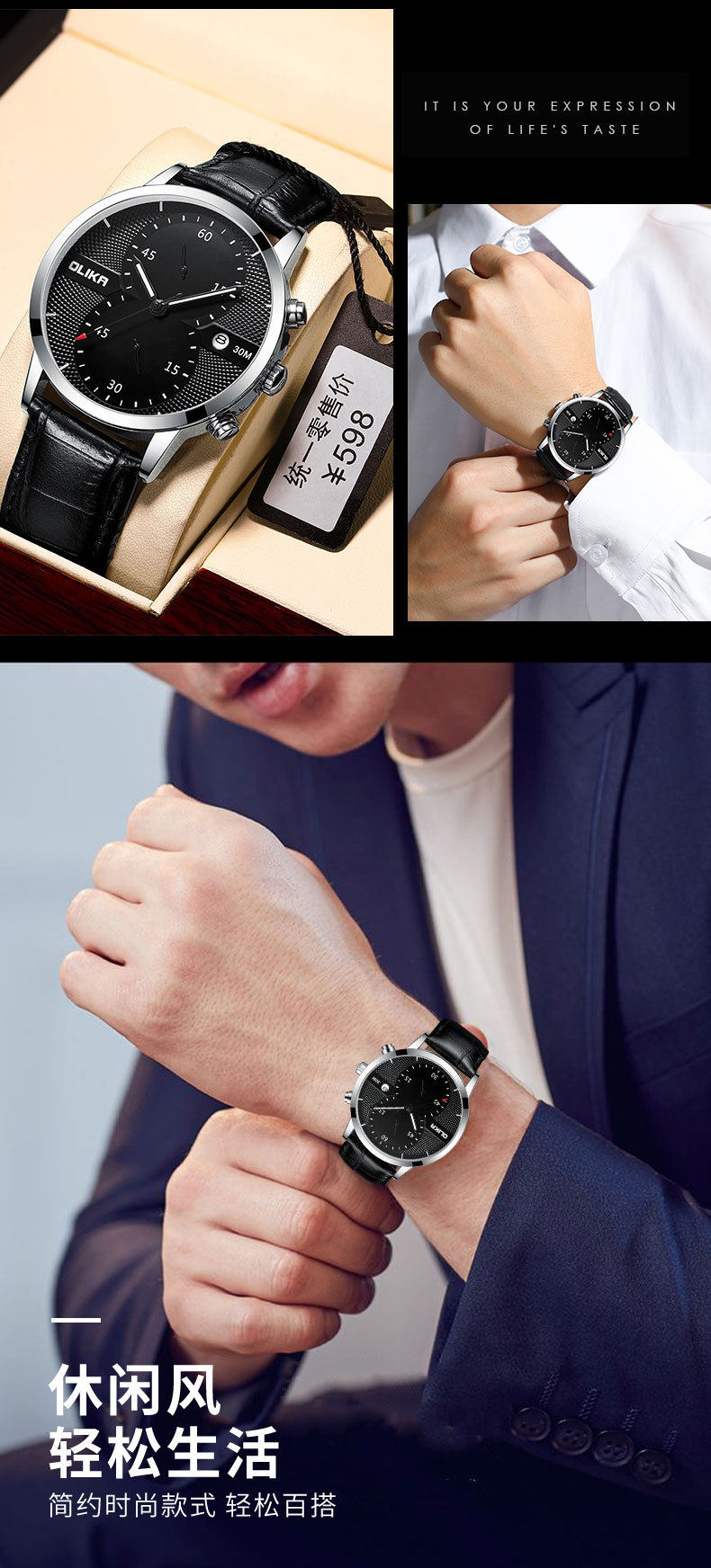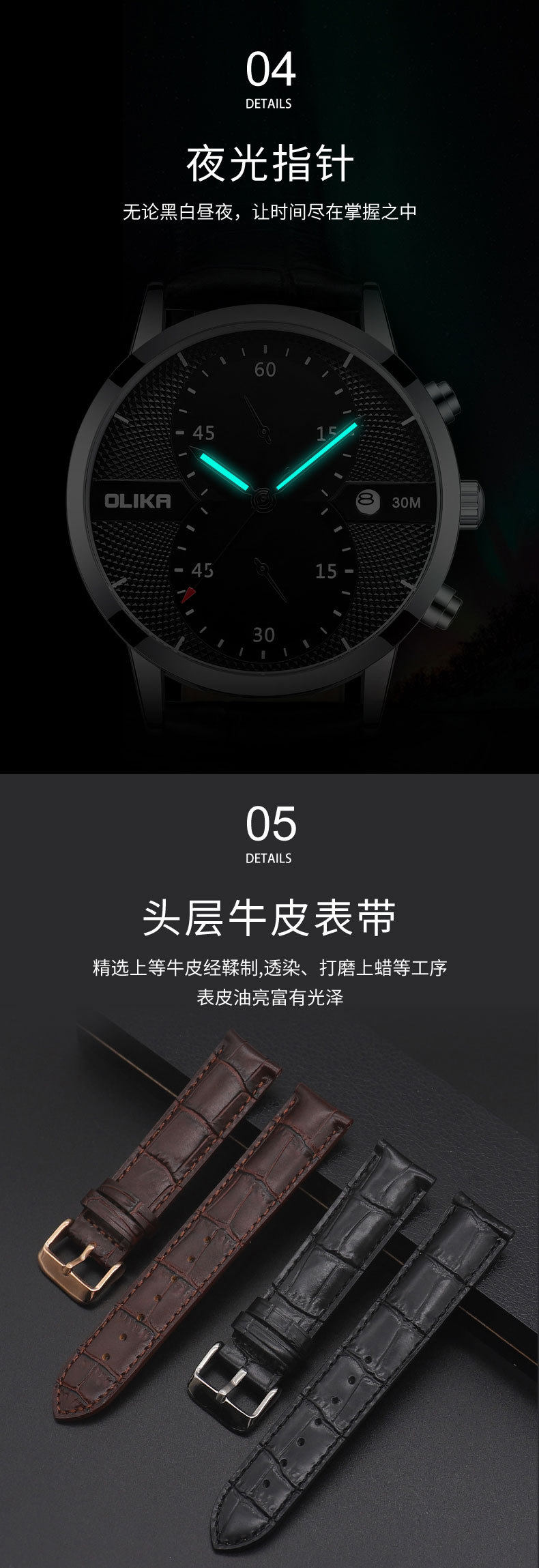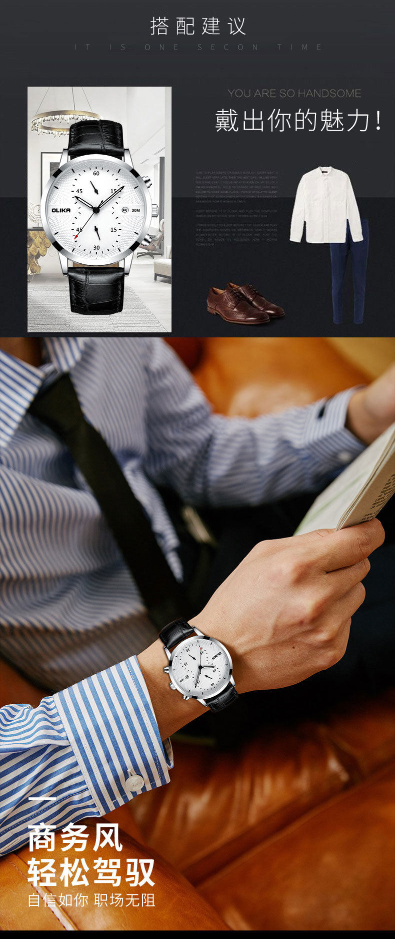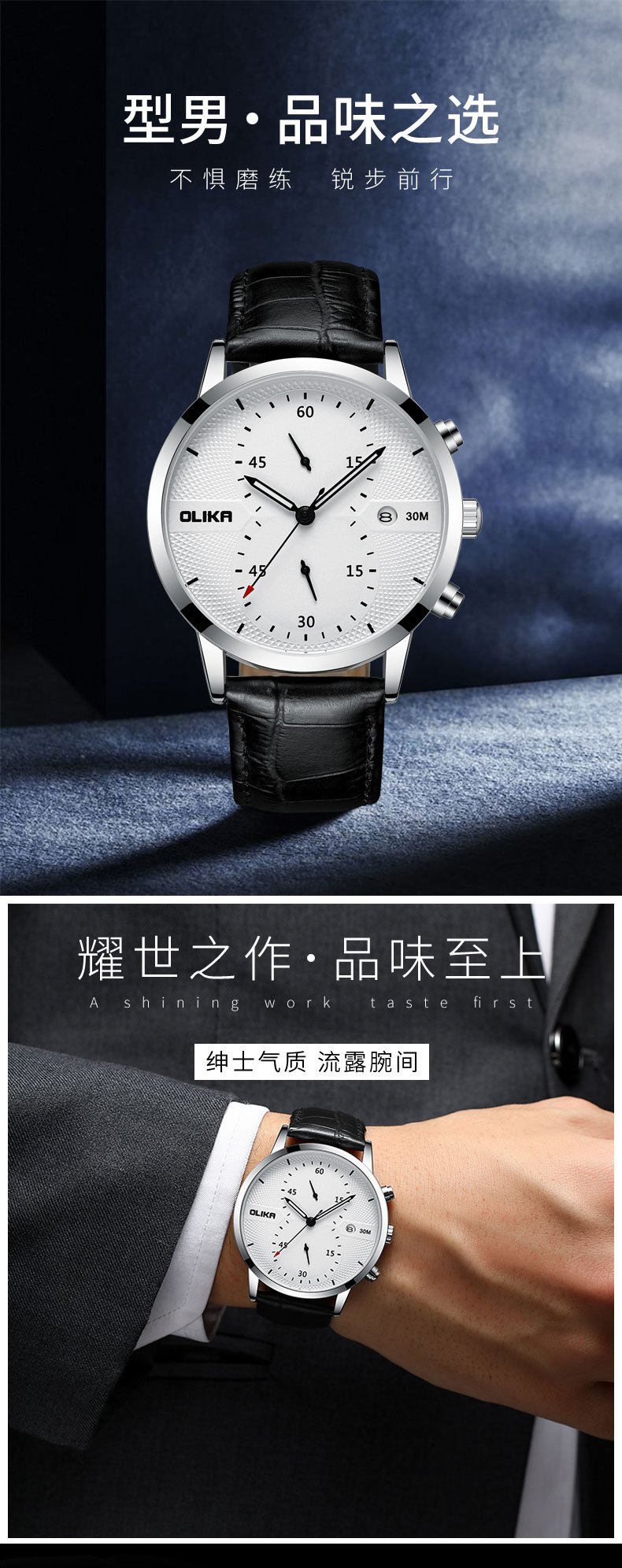 olika casual large dial men's watch with luminous calendar multifunctional quartz watch chronograph waterproof men's watch