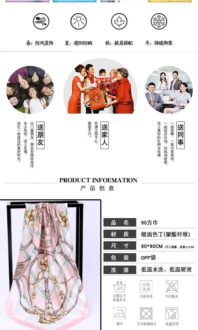 Imitation Silk Square Silk Satin Scarf Women's Summer Thin Shawl 90cm Large Square Mother's Gift Scarf
