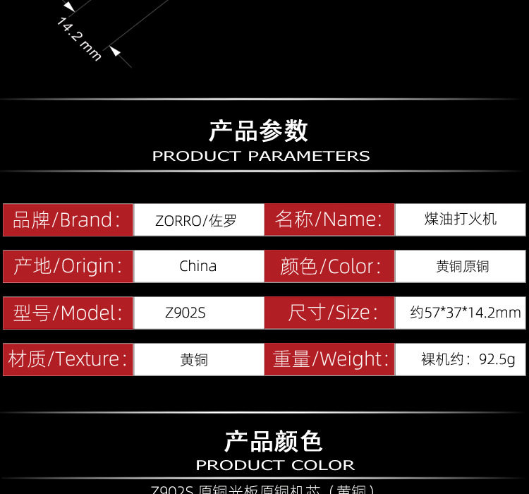 ZORRO ZORRO New Z902S Brass About 110 Wire Thickened Case Kerosene Lighter Original Copper Light Plate Copper Movement