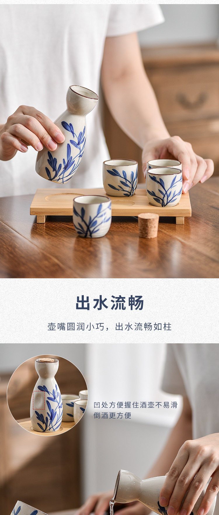 Ishakaya Wine Set Wine Liquor Pot Cup Set Small Wine Pot Japanese Style Hand-painted Ceramic Wine Set One Pot Four Cups