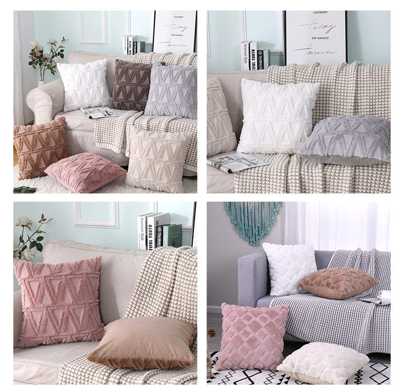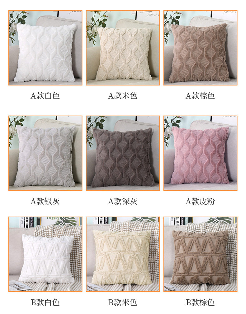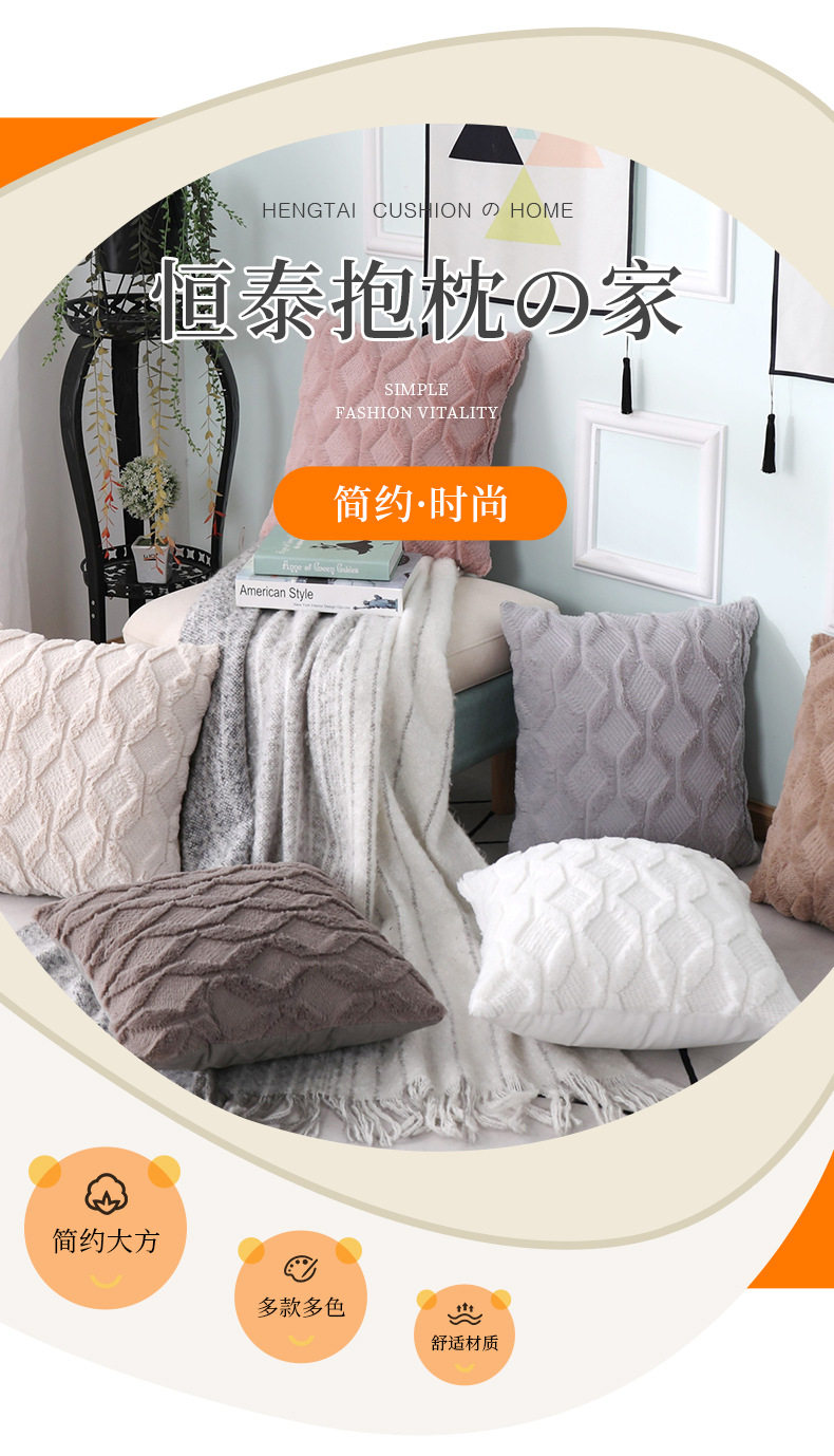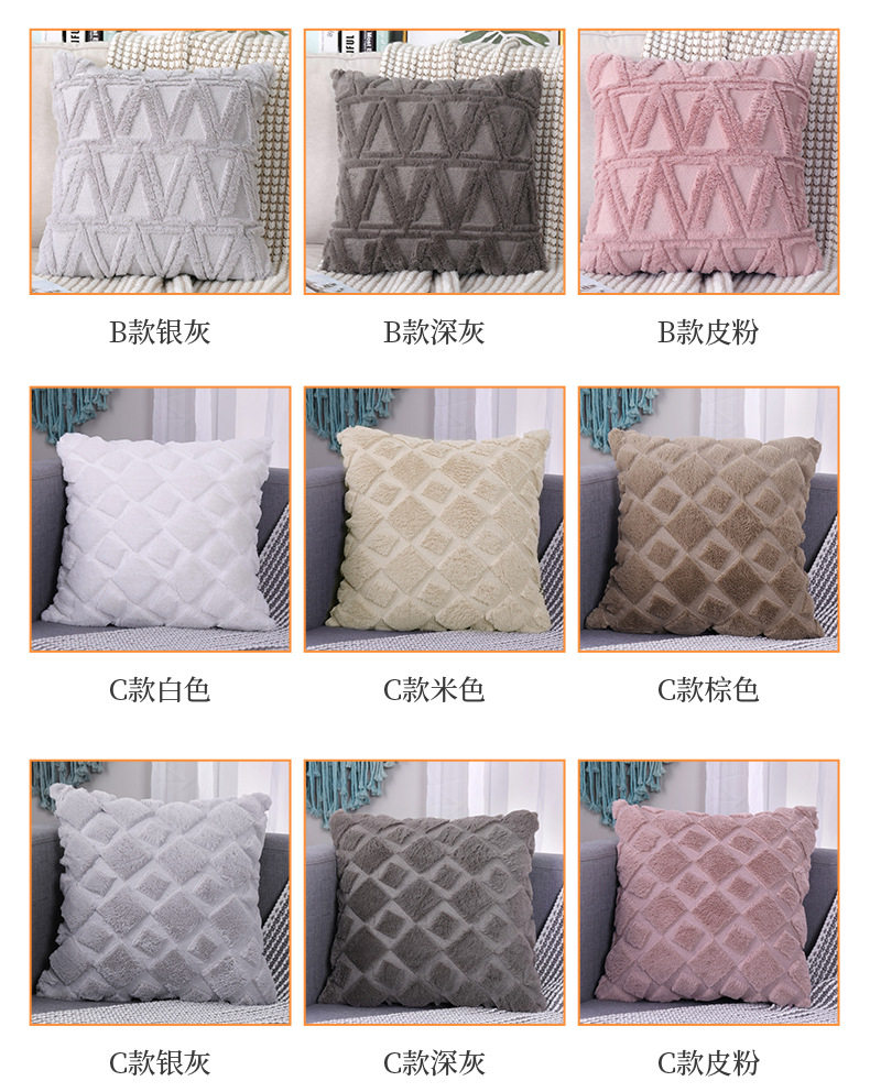 Pv Velvet Rhombus New Special Embroidered Geometric Plush Pillowcase Simple Pure Color Home Winter Sofa Pillowcase